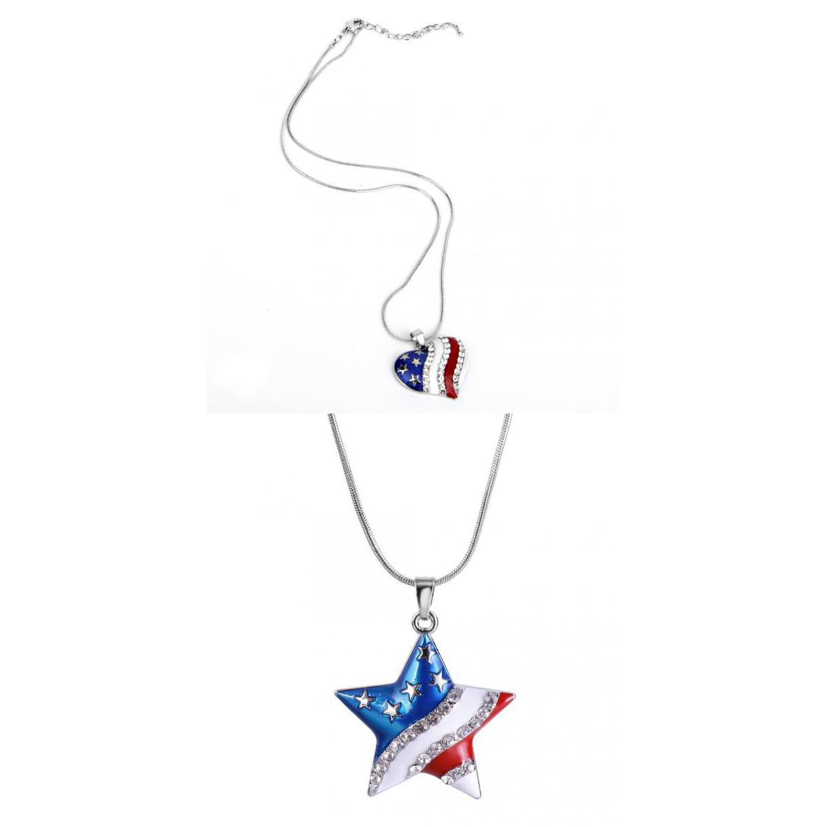 1 x USA flag necklace(Heart) +1 x USA flag necklace(Star)