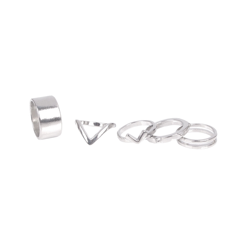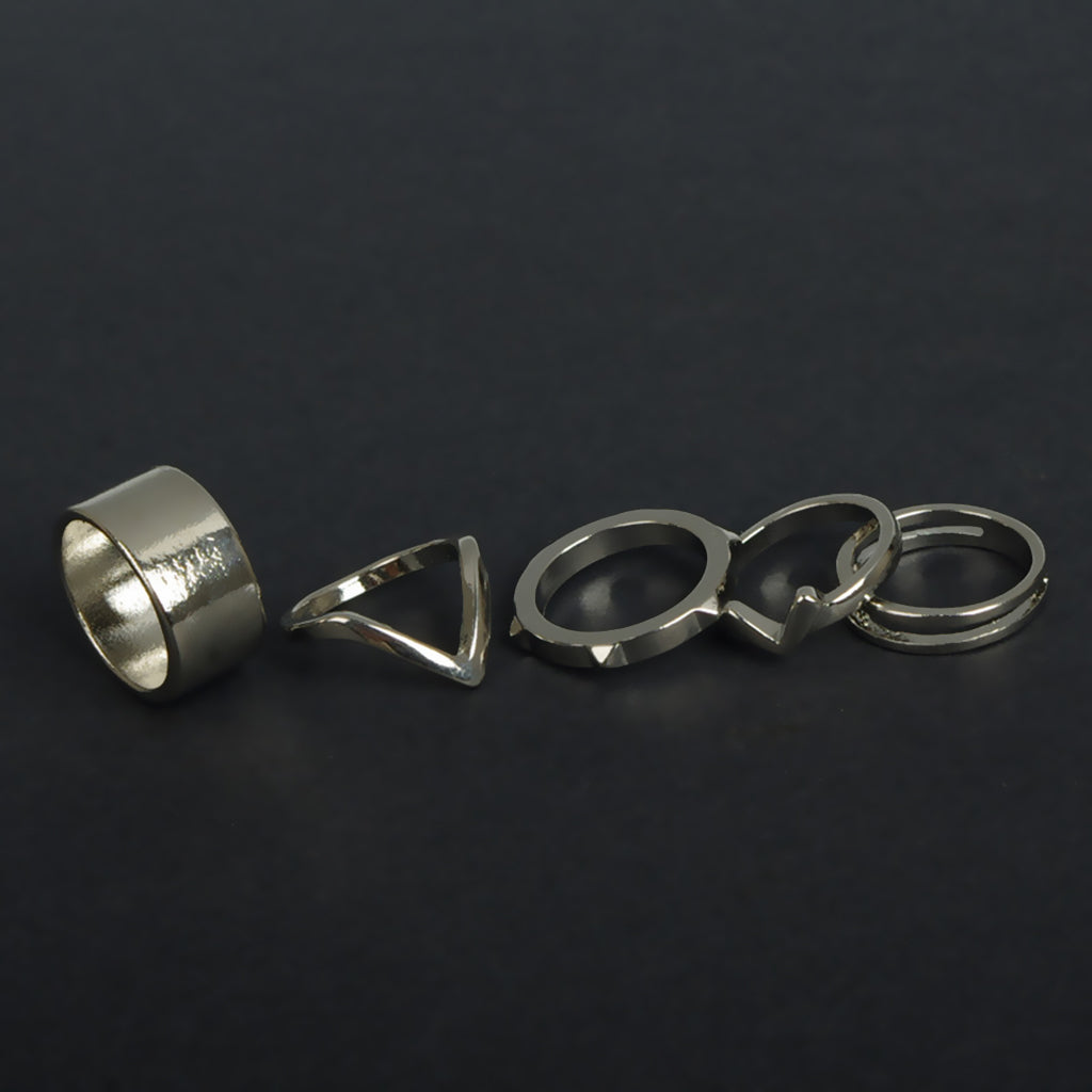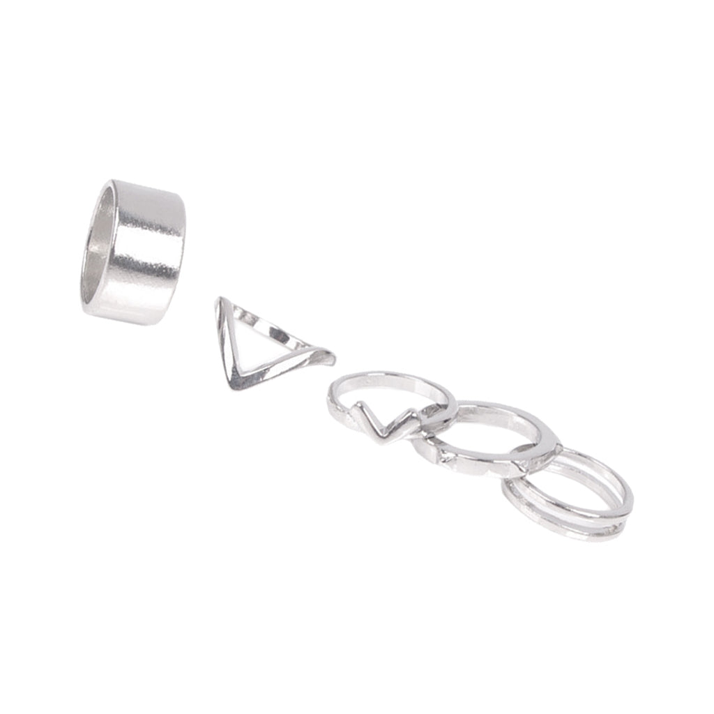 Set Of 5PCS Fashionable Women Girls Ladies Punk V Shape Finger Rings Jewelry Gift Silver