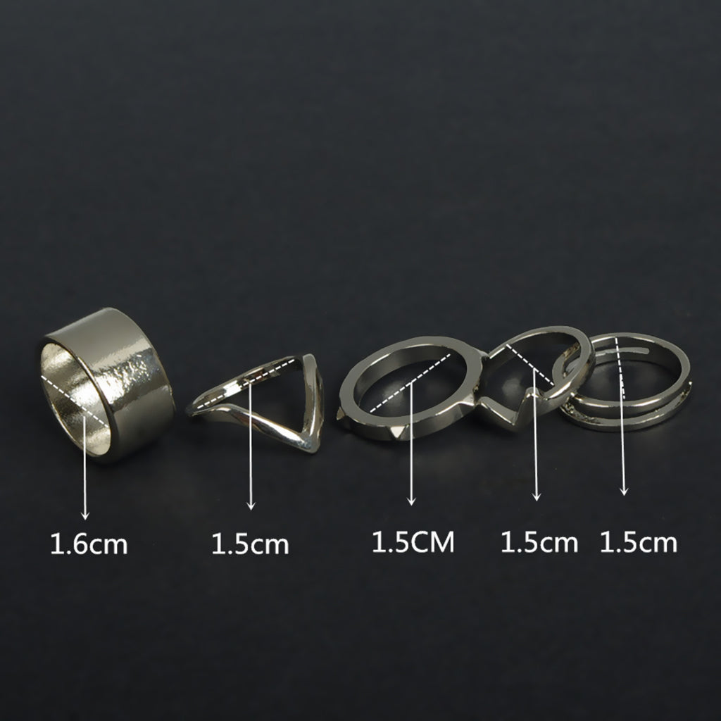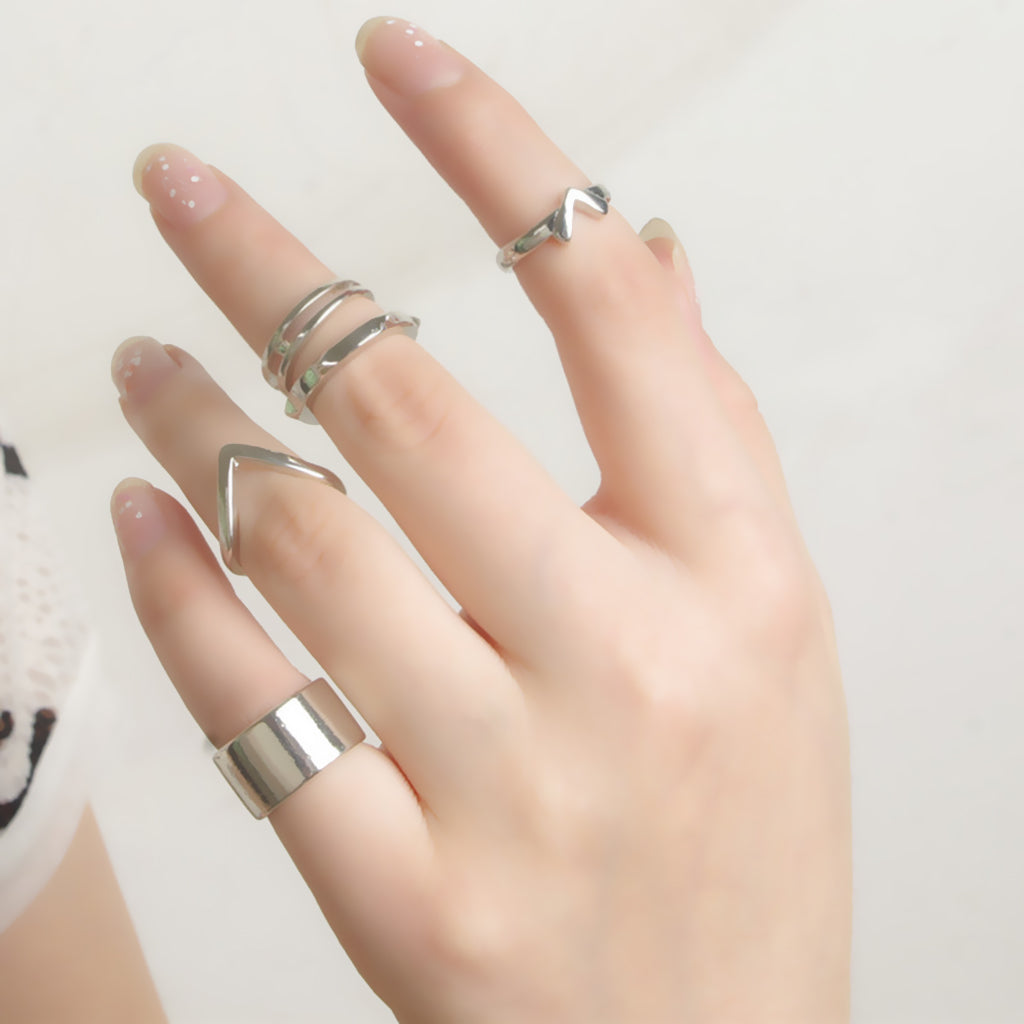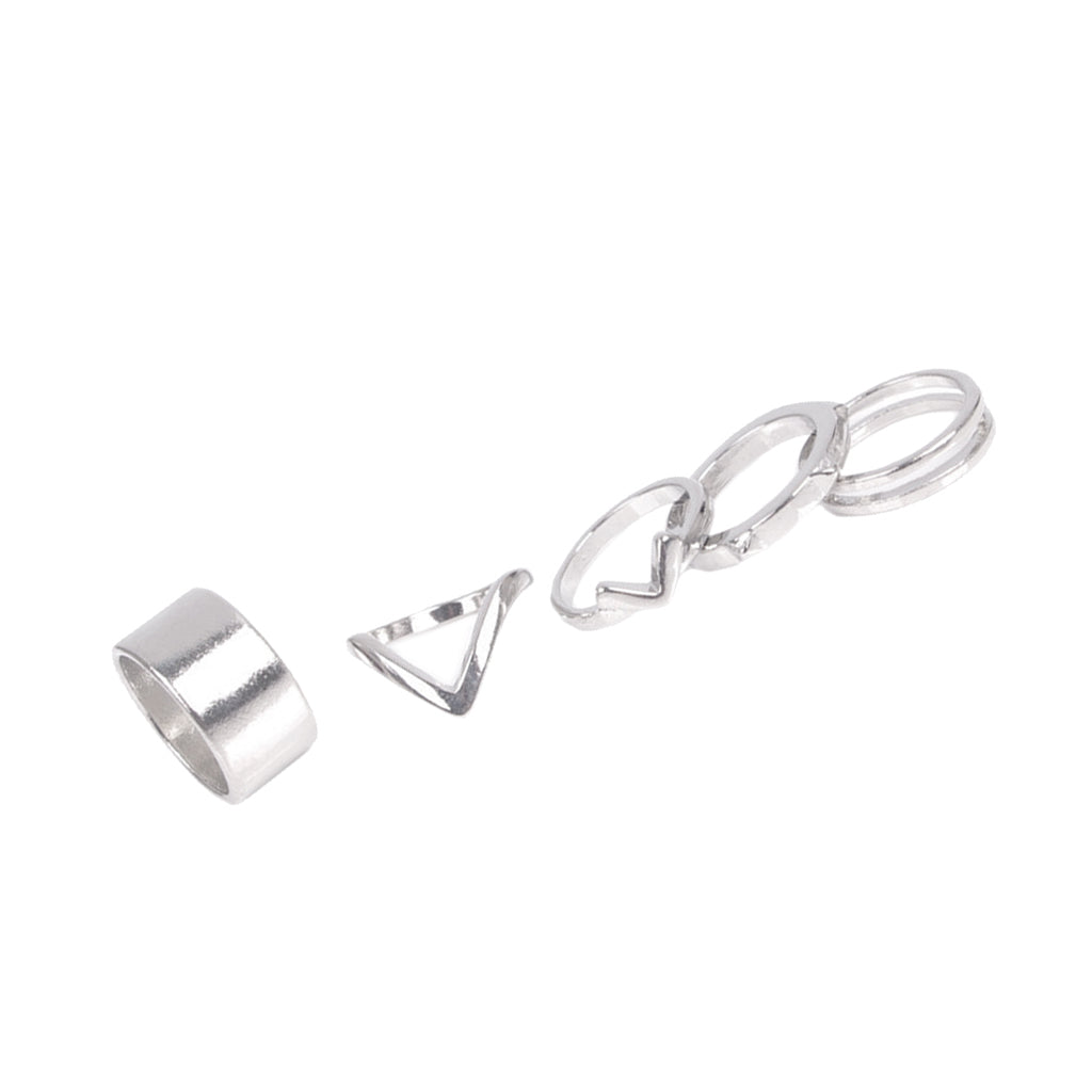 Set Of 5PCS Fashionable Women Girls Ladies Punk V Shape Finger Rings Jewelry Gift Silver