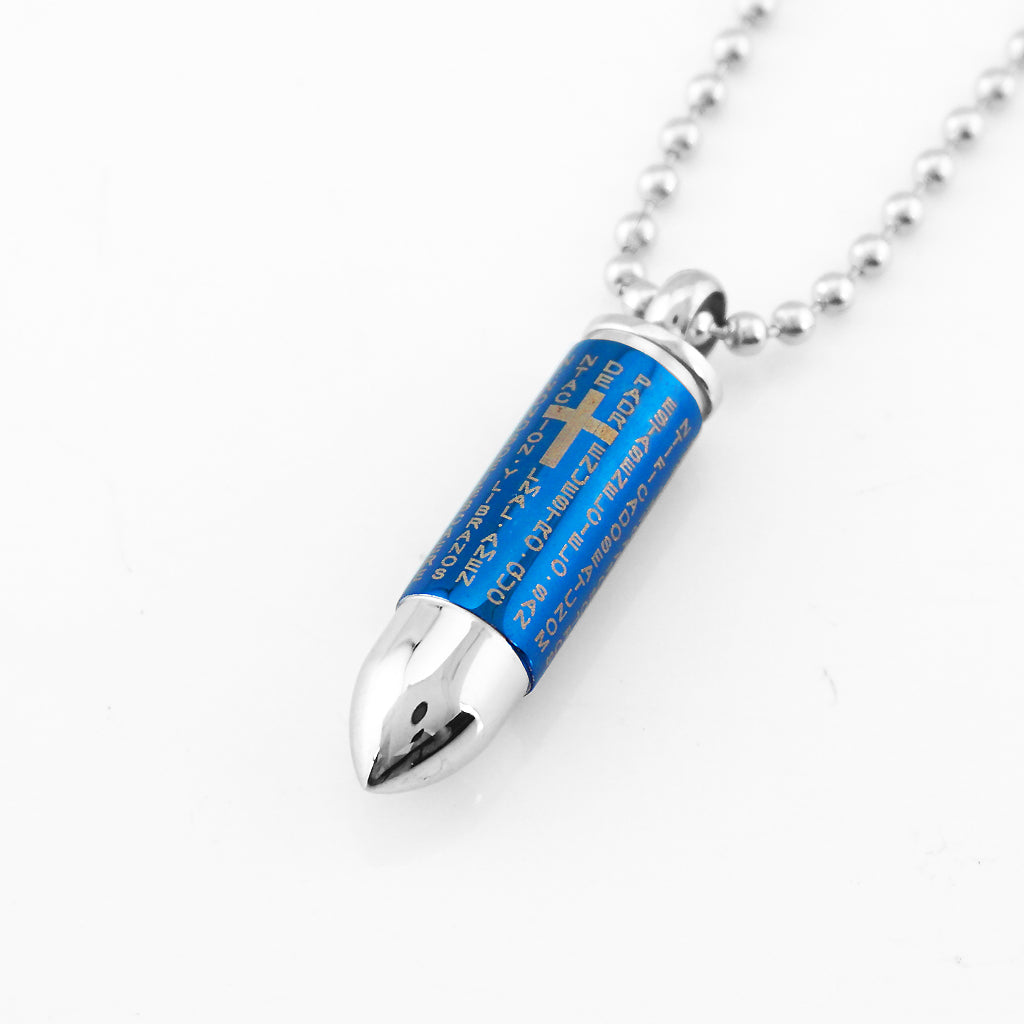 Silver Blue Openable Stainless Steel Cross Bible Urn Pendant Necklace - S
