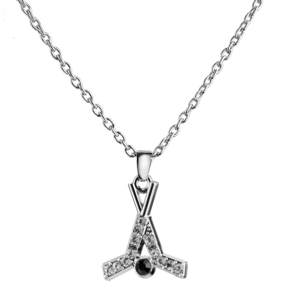 Silver crystal Rhinestone Baseball golf ball design Pendant Chain necklace