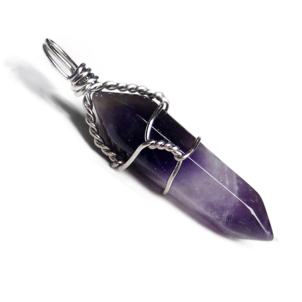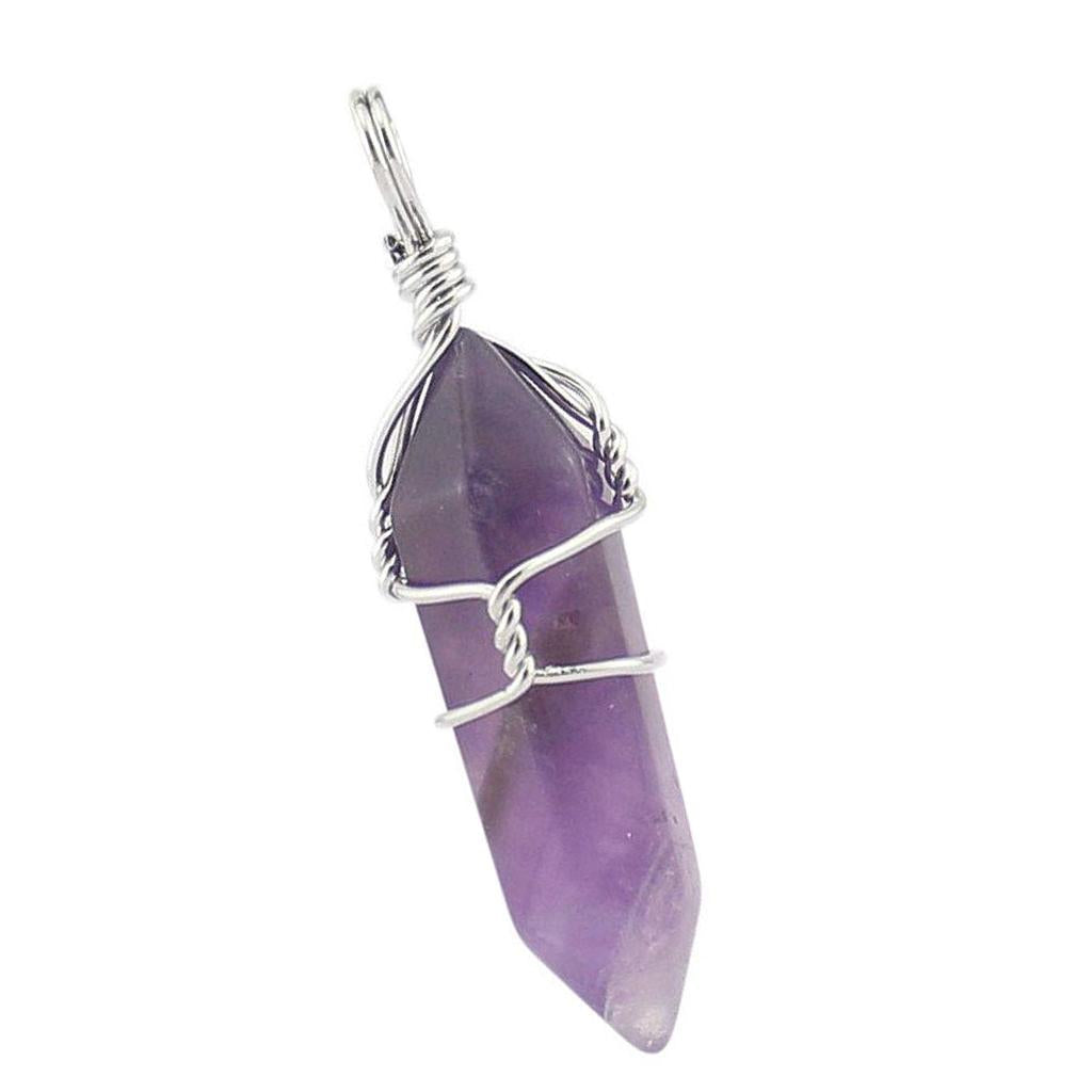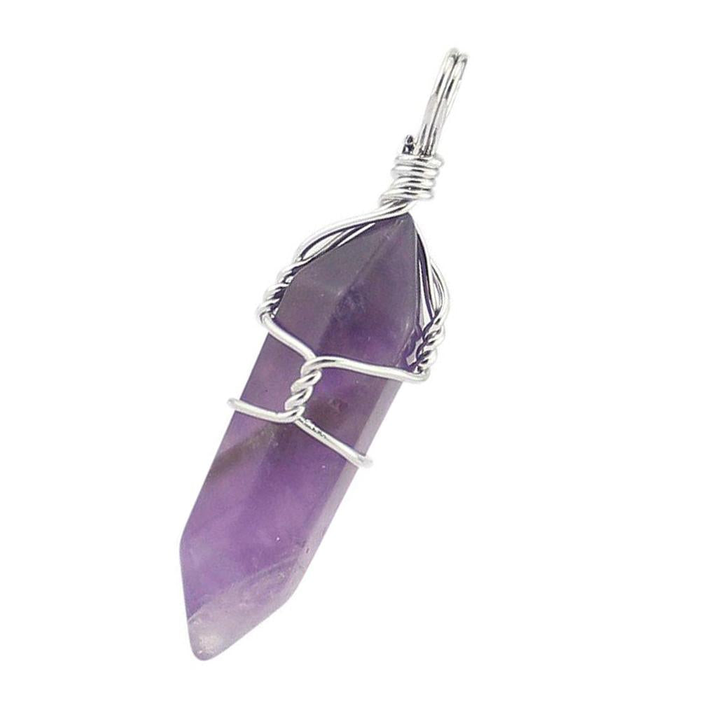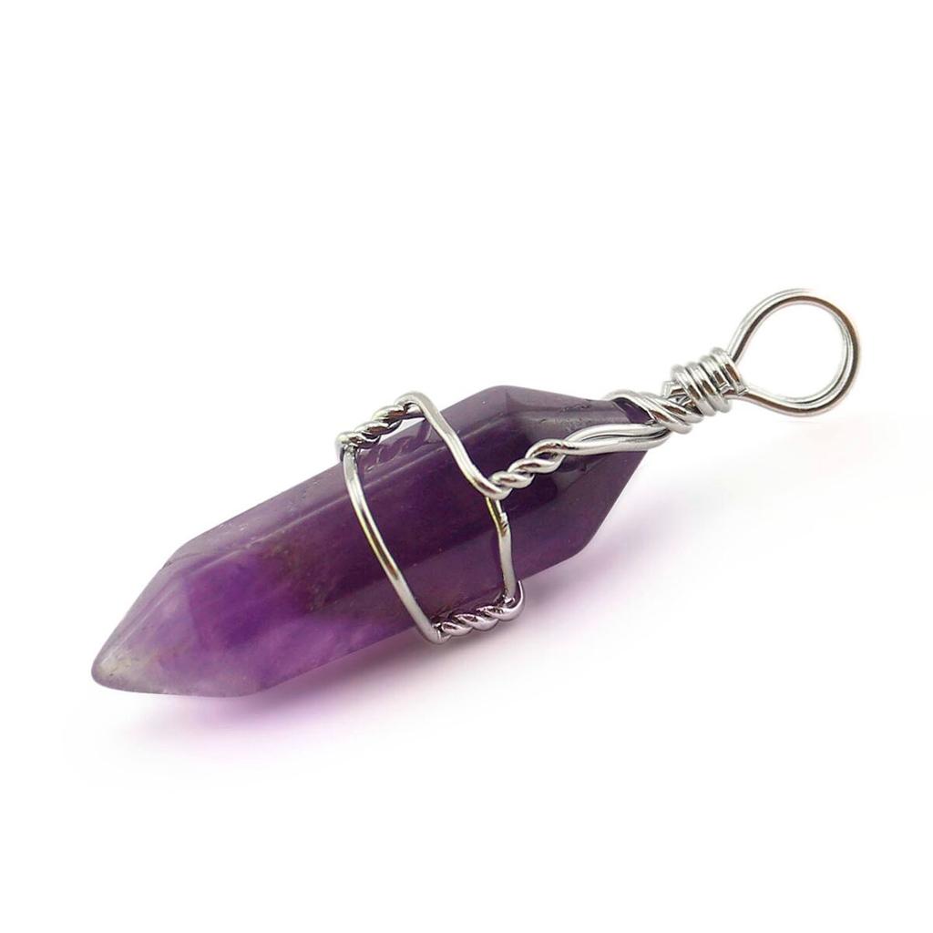 Silver Plated Crystal Hexagon Prism Pointed Gemstone Beads Pendant Purple