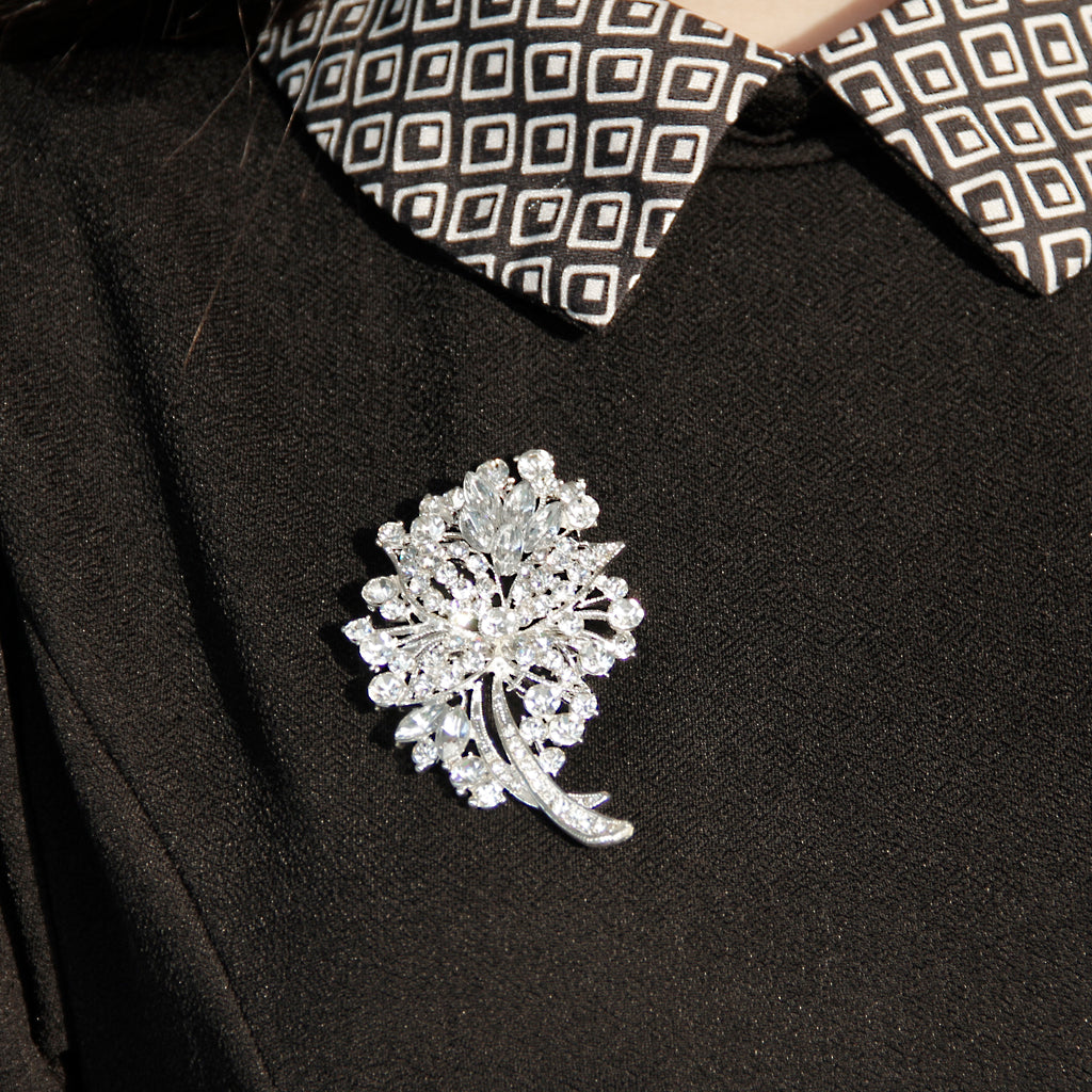 Sparkly Crystal Rhinestone Bridal Wedding Bouquet Flower Brooch Pin