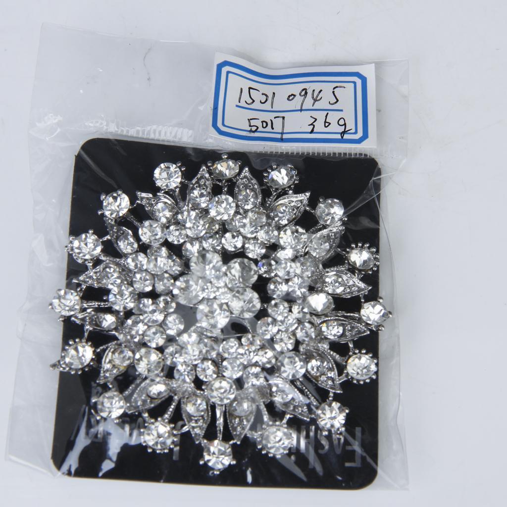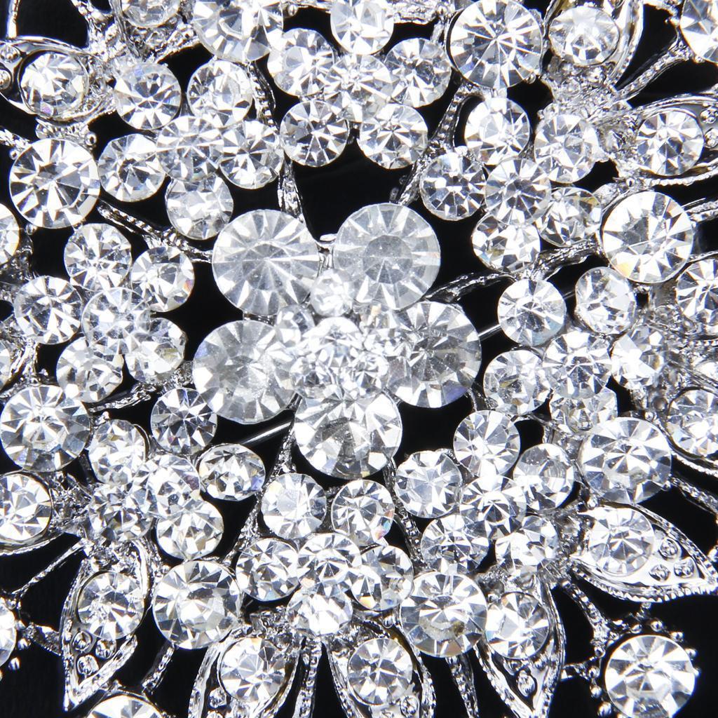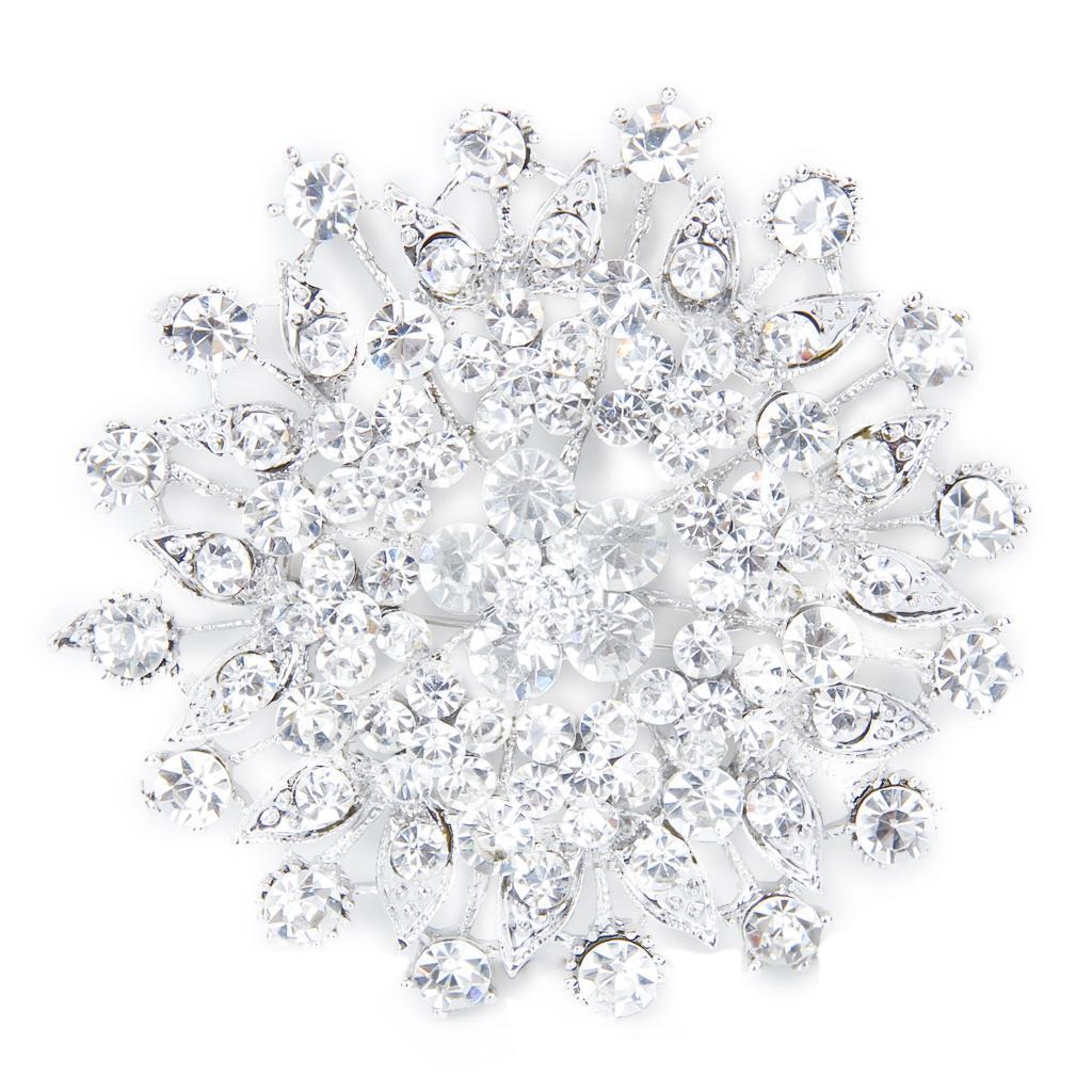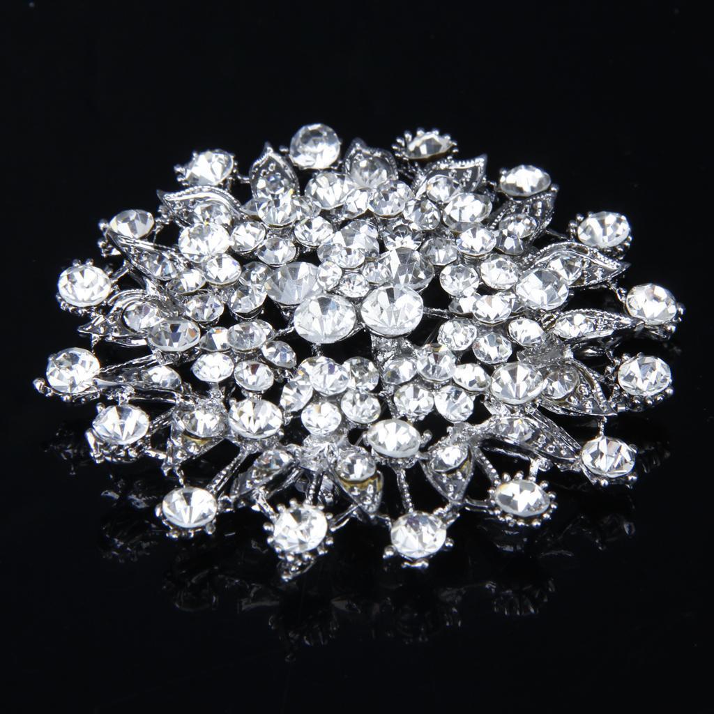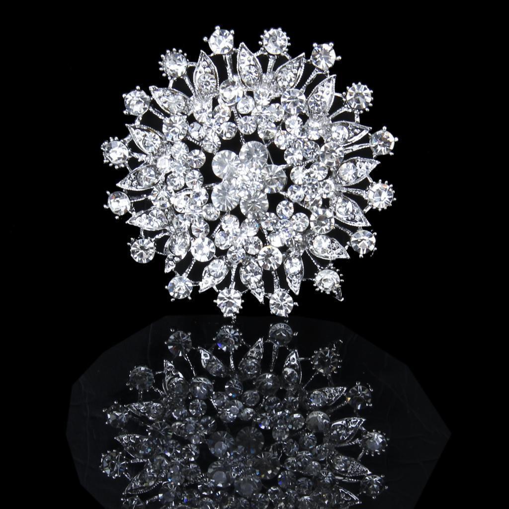 Sparkly Crystal Rhinestone Bridal Wedding Bouquet Silver Flower Brooch Pin