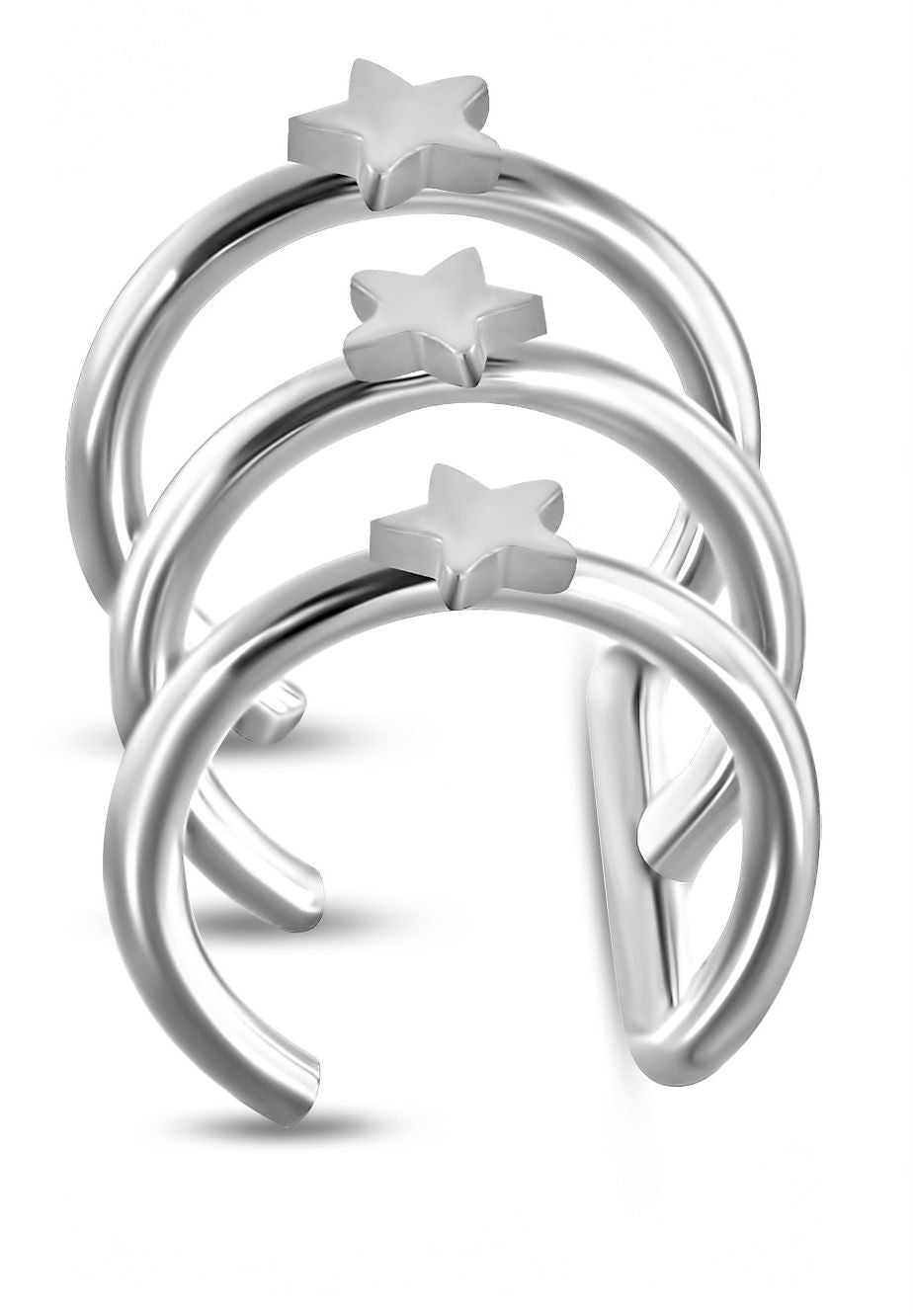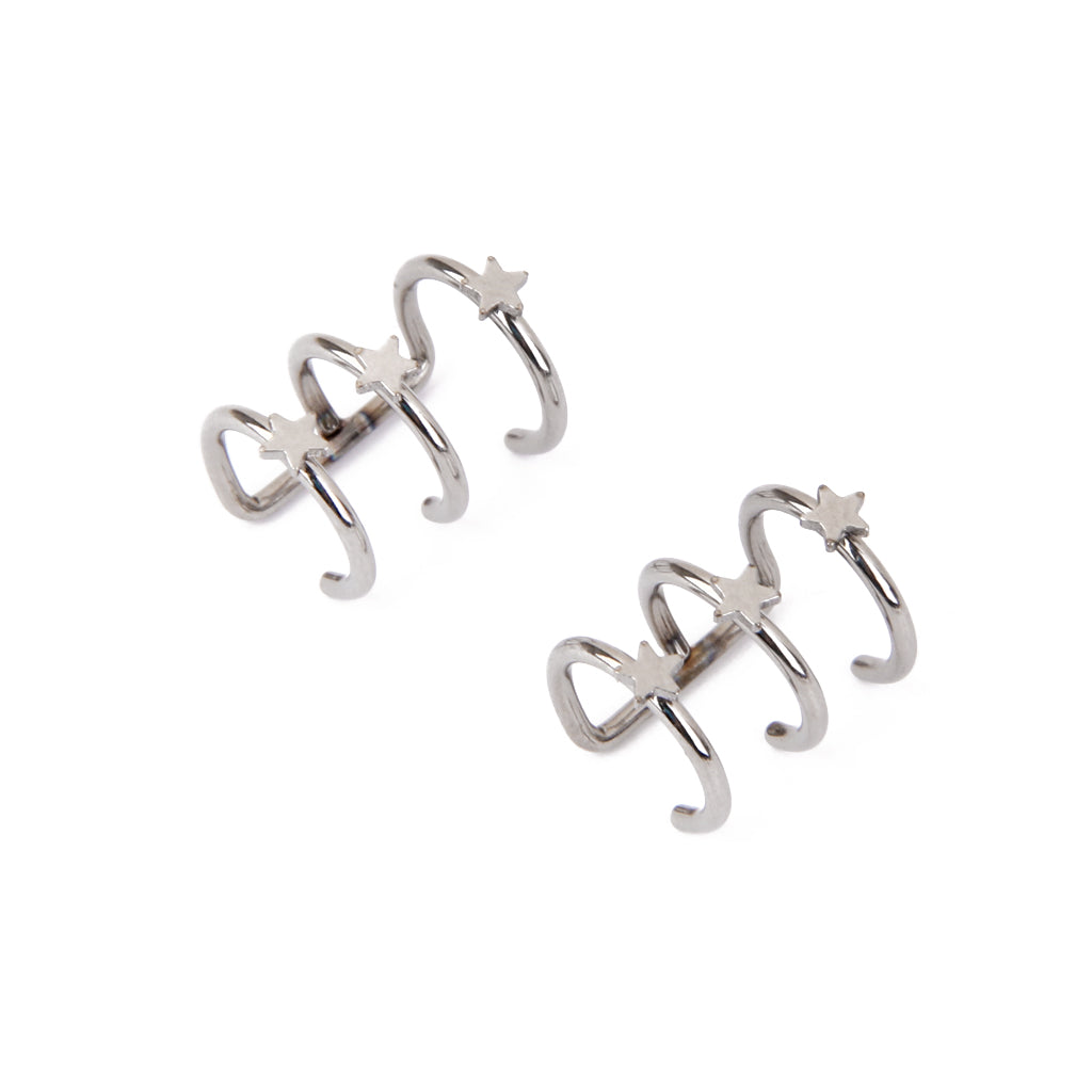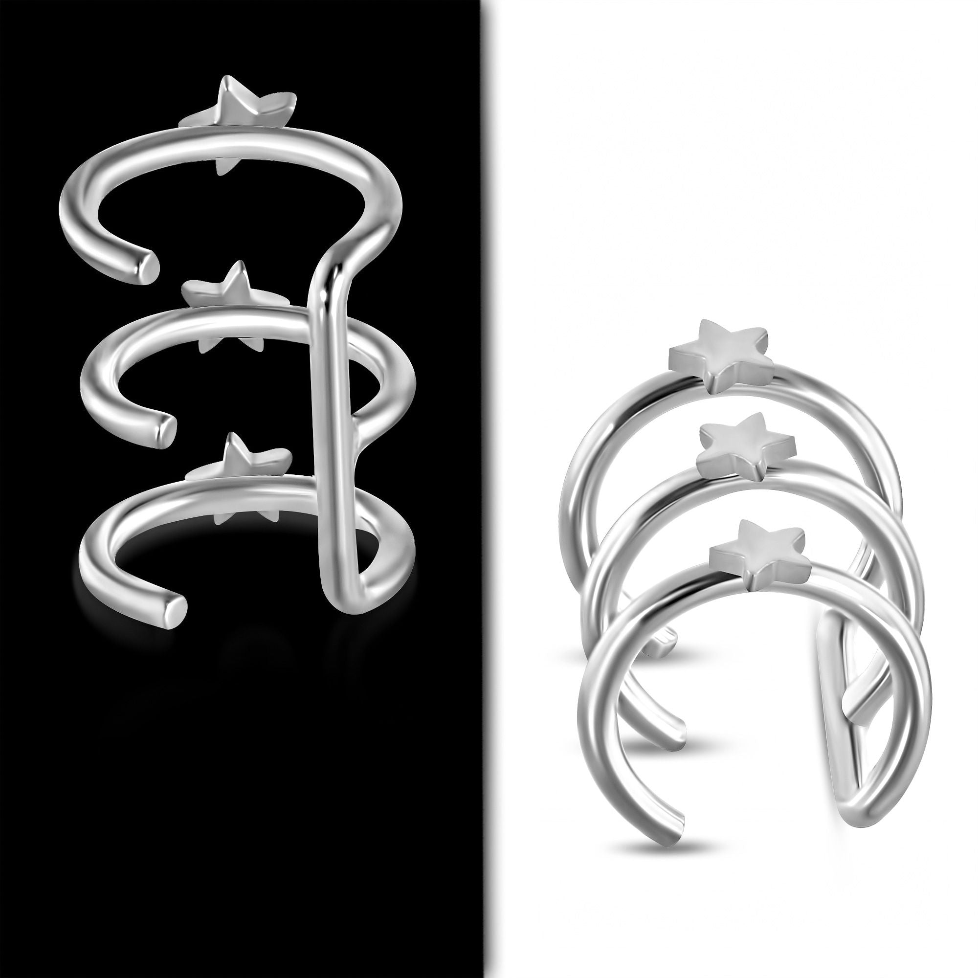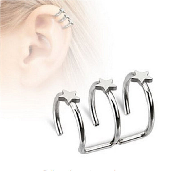 Stainless 3 Row Helix Cartilage Cuff Wrap Earring Clip on Ear Upper Ring
