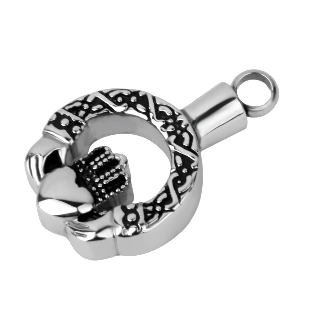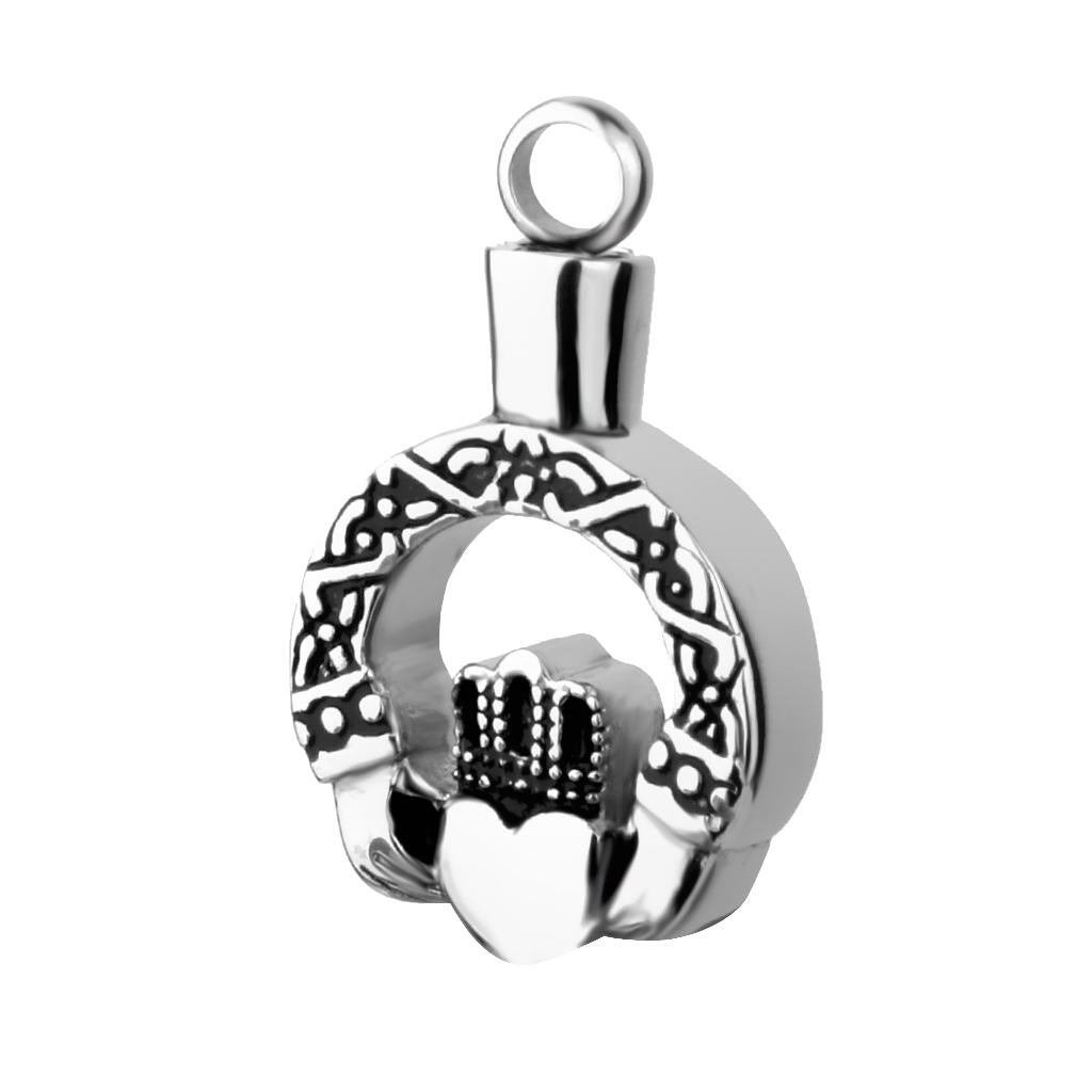 Stainless Steel Charm Claddagh Ring Cremation Urn Keepsake Memorial Pendant