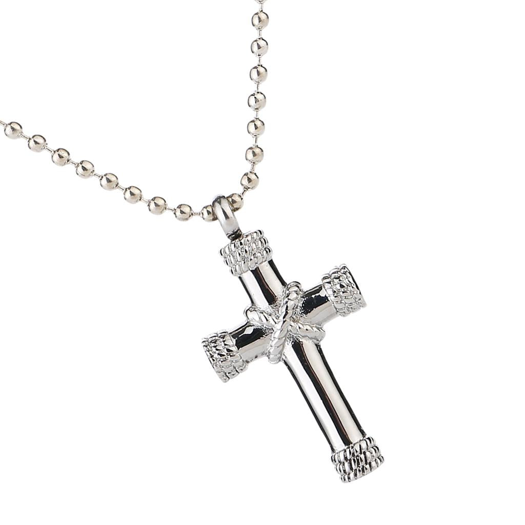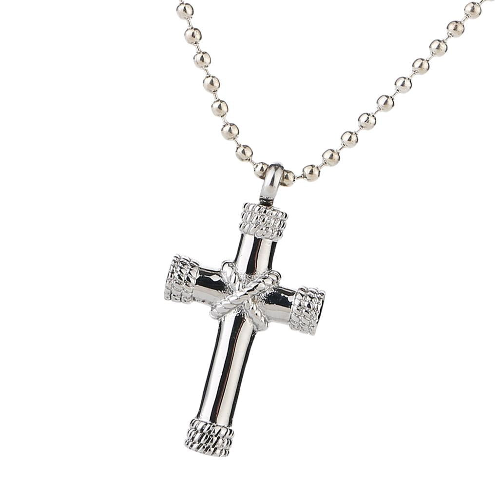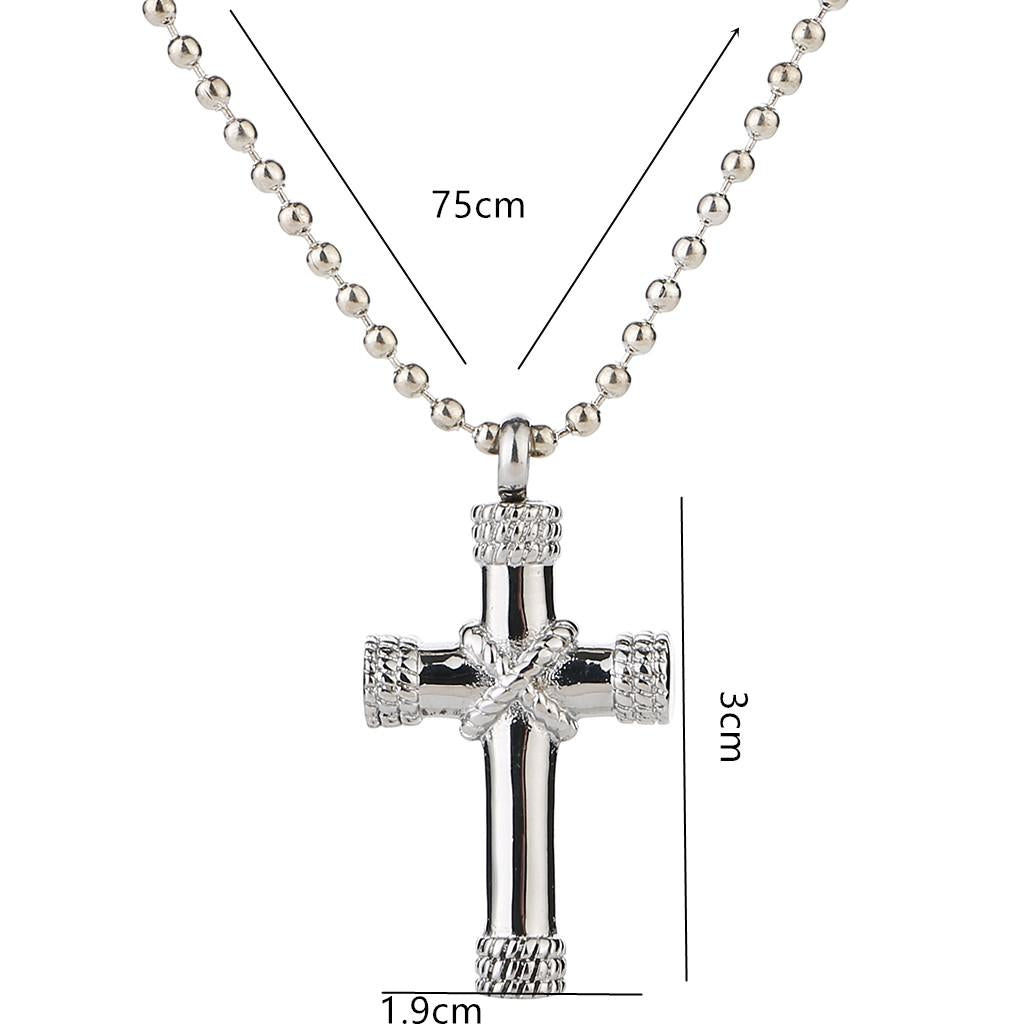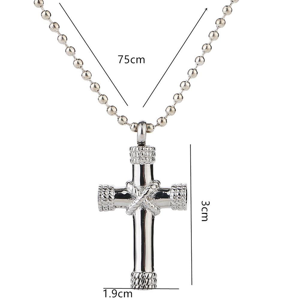 Stainless Steel Cross Shaped Perfume Bottle Essential Oil Necklace / Ashes Urn Pendant Necklace with Chain 75cm, A Perfect Gifts for Women Men