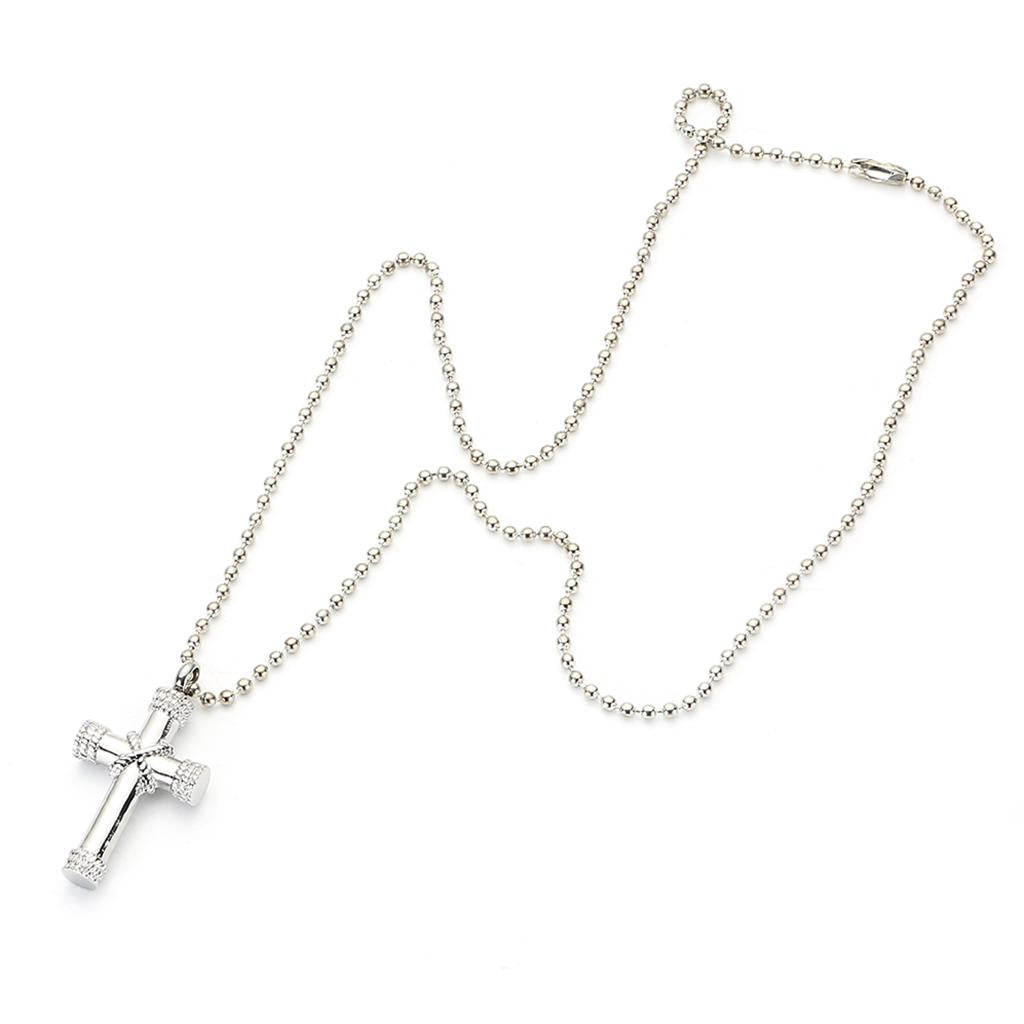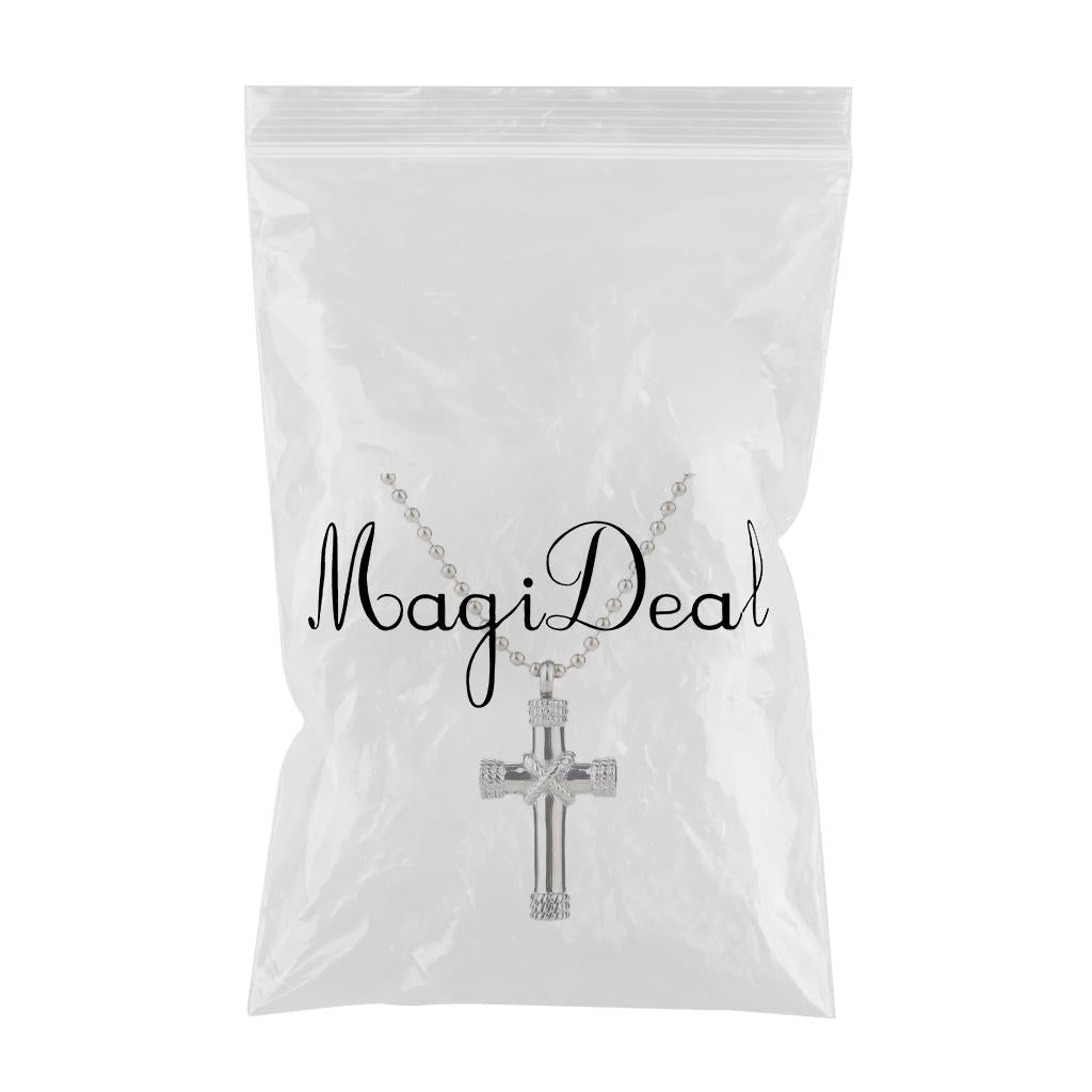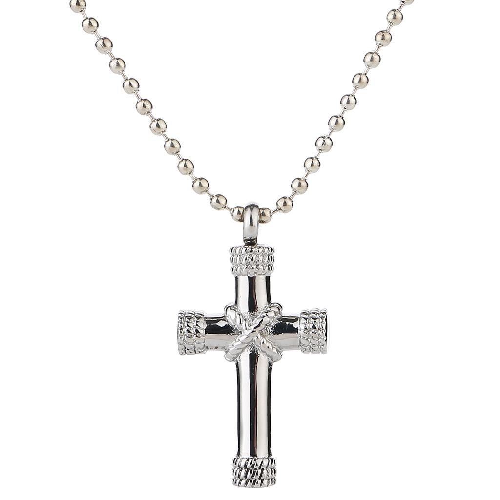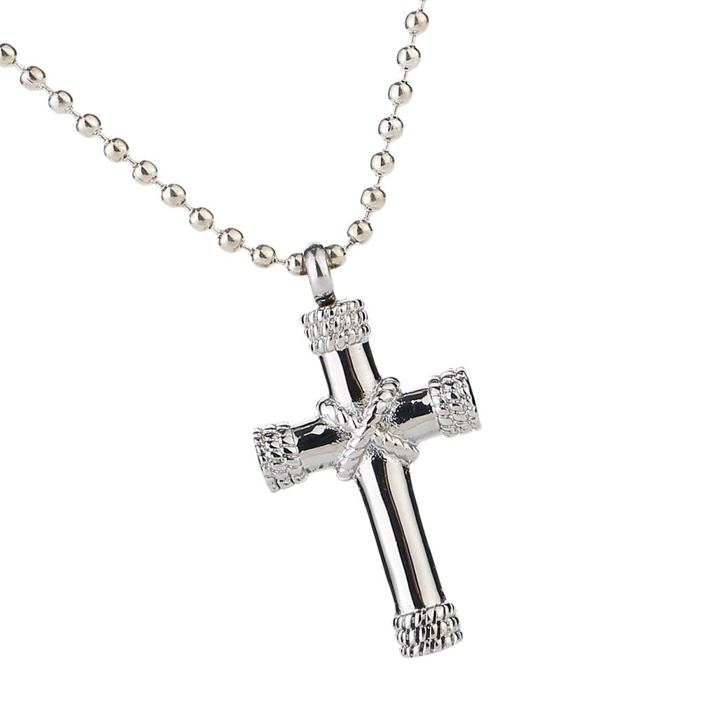 Stainless Steel Cross Shaped Perfume Bottle Essential Oil Necklace / Ashes Urn Pendant Necklace with Chain 75cm, A Perfect Gifts for Women Men