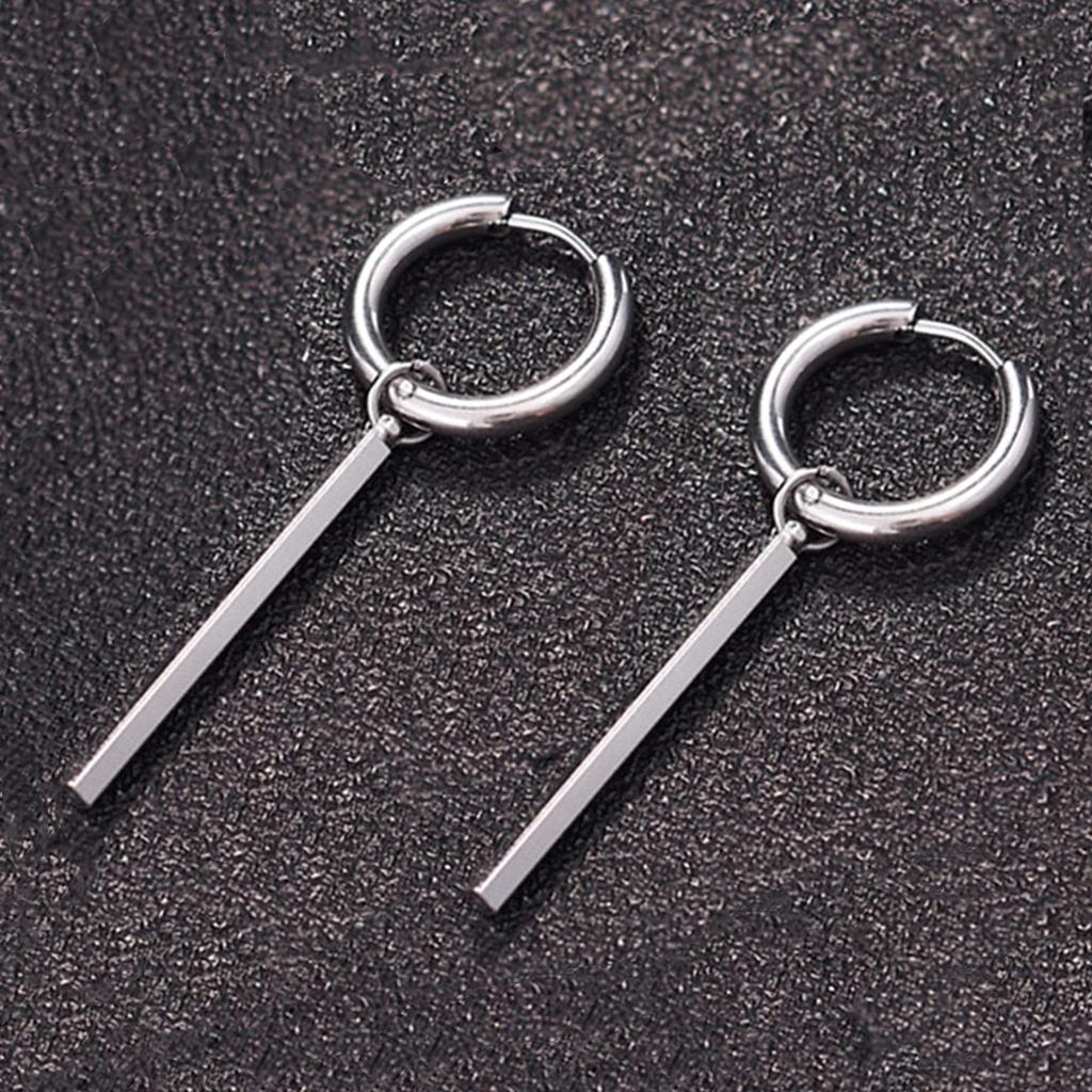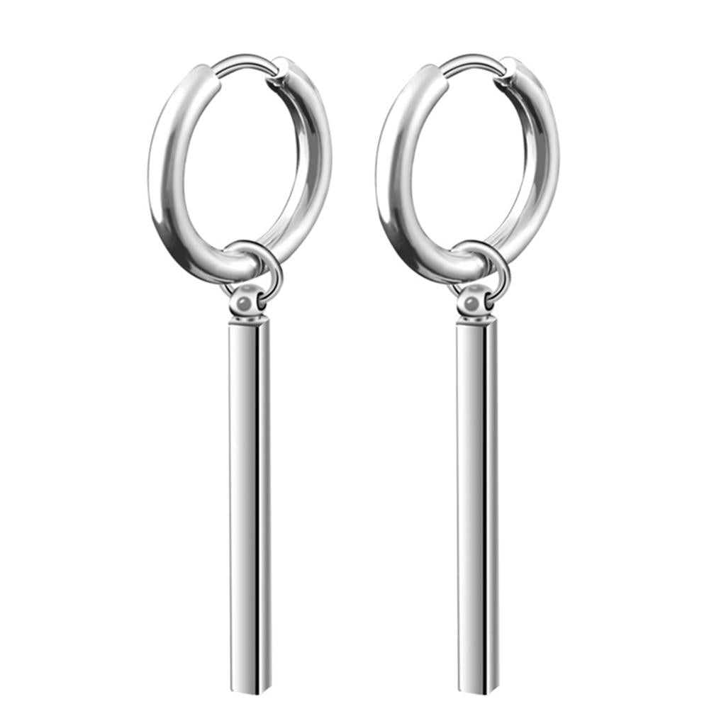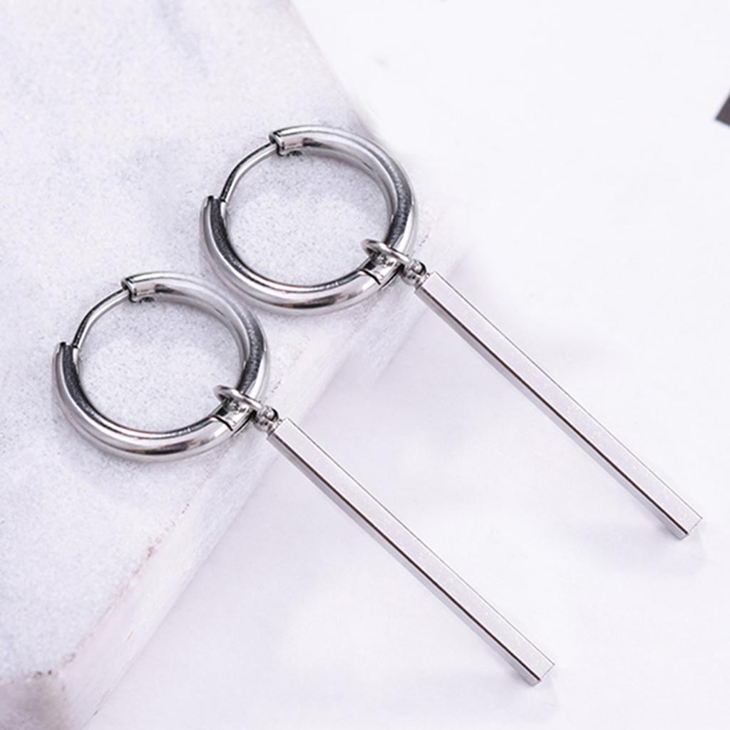 Stainless Steel Long Bar Earrings Ear Studs Ring Loop Drop Earring Piercing