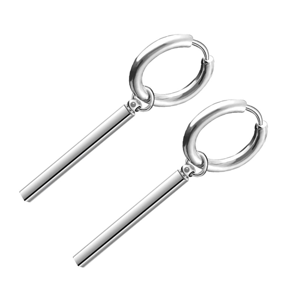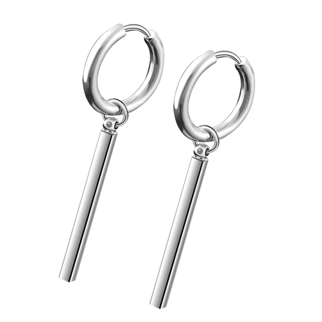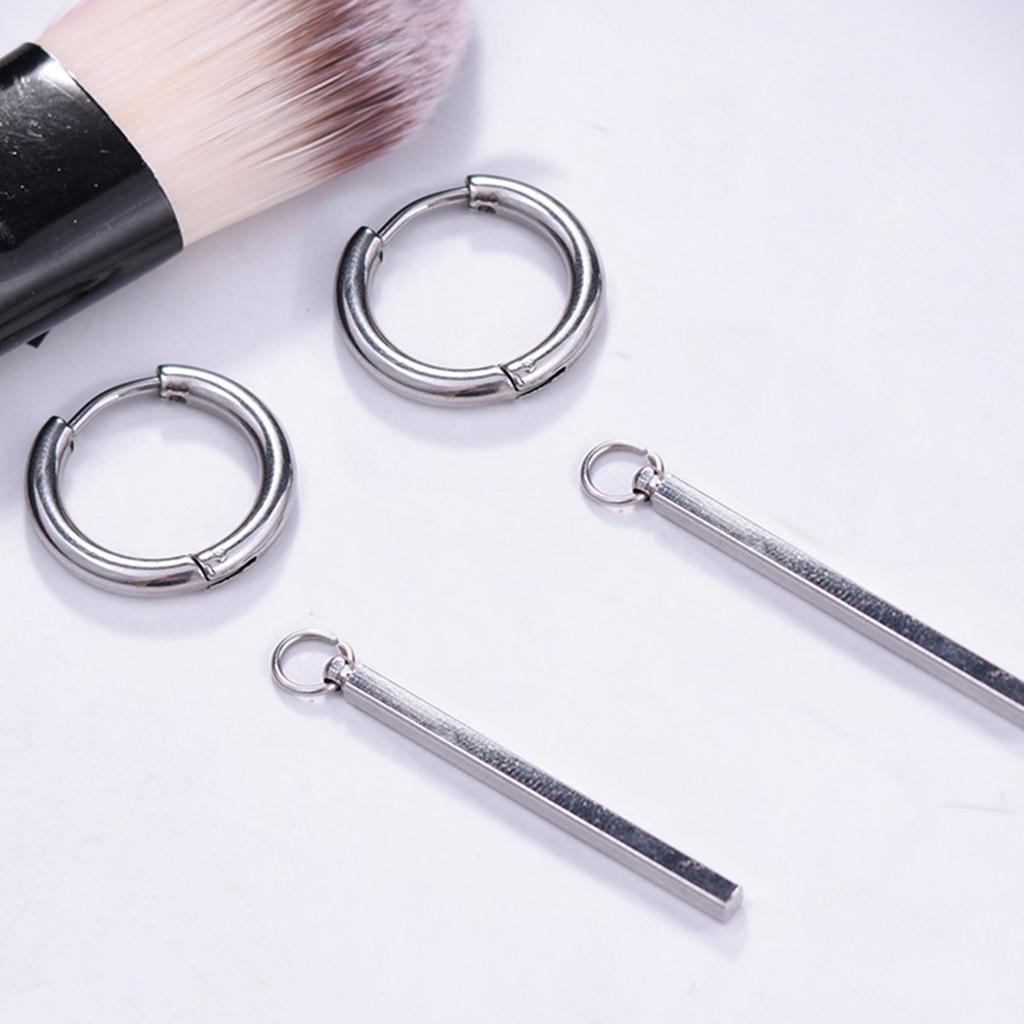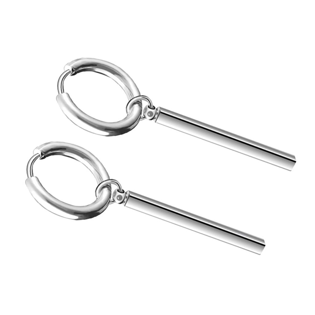 Stainless Steel Long Bar Earrings Ear Studs Ring Loop Drop Earring Piercing