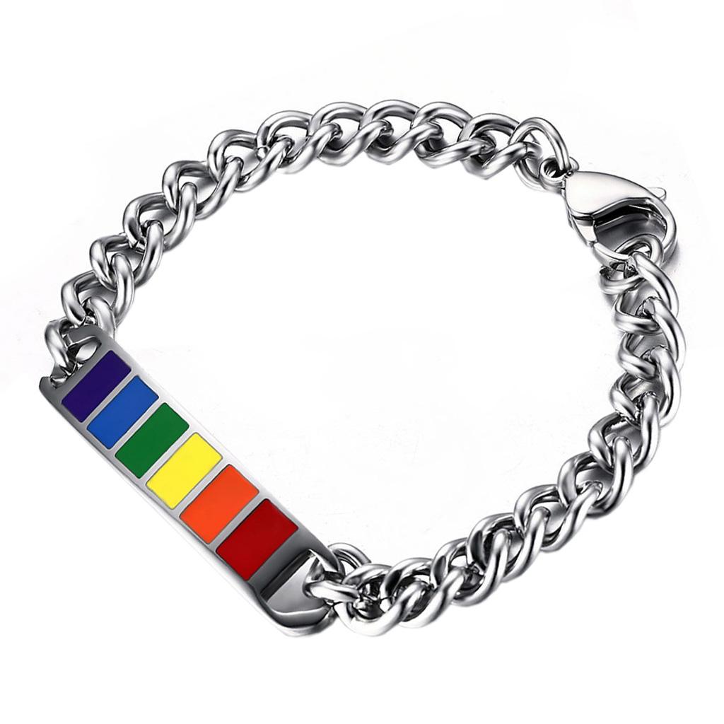 Stainless Steel Rainbow Gay Lesbian LGBT Pride Bracelet Transgender Jewelry Gift