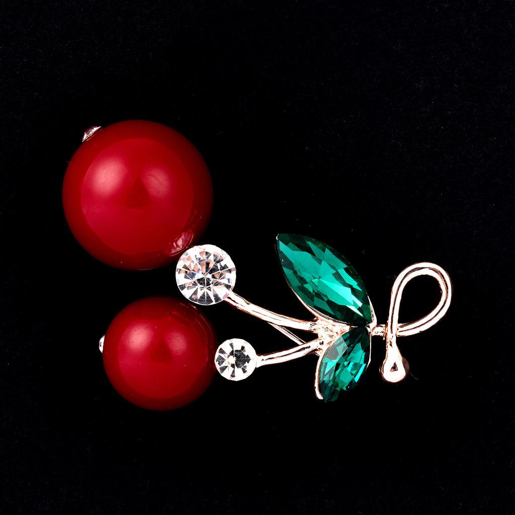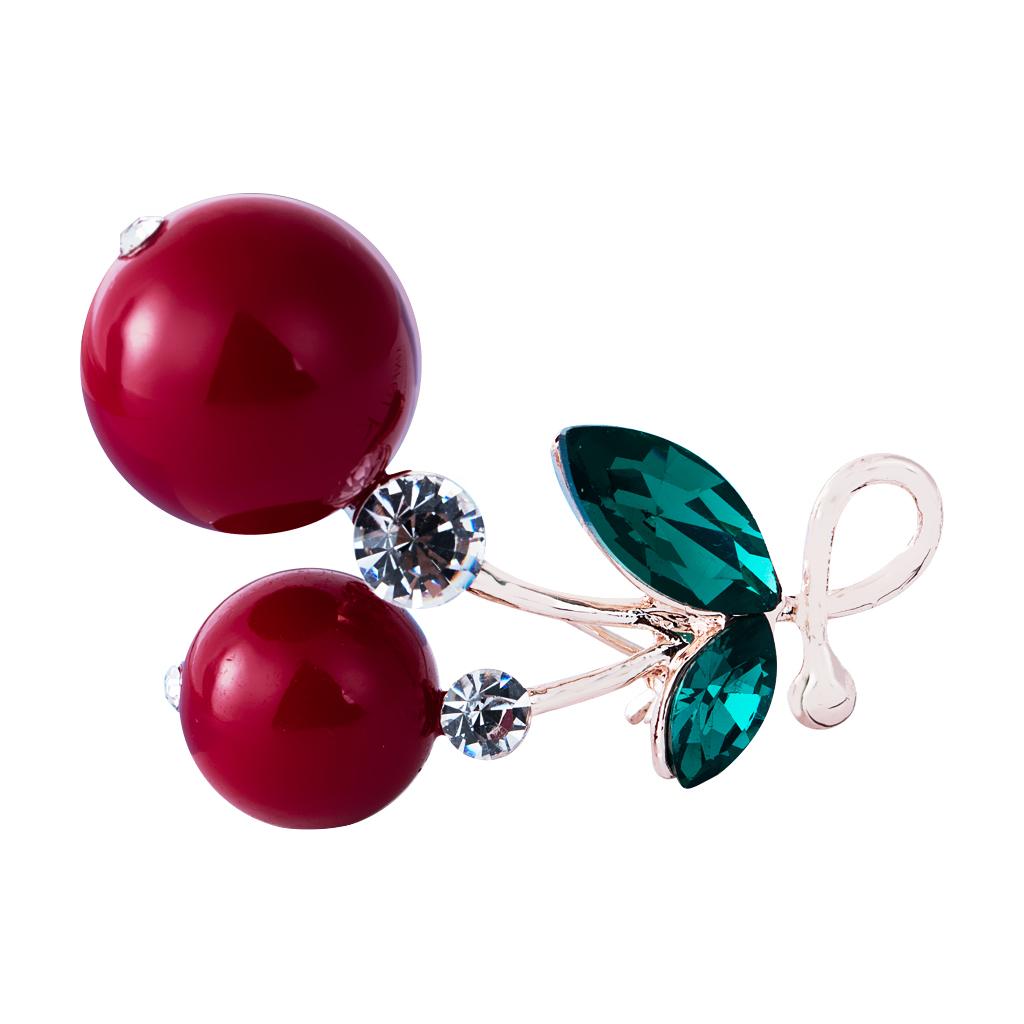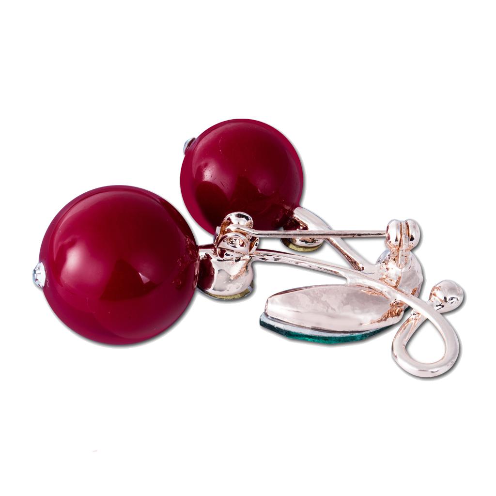Stylish cherry brooch pin with glitter Crystal and faux pearl design