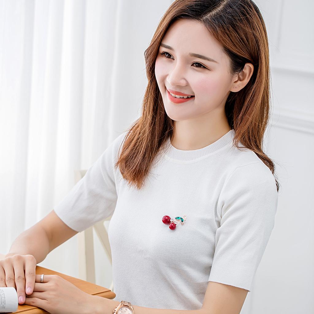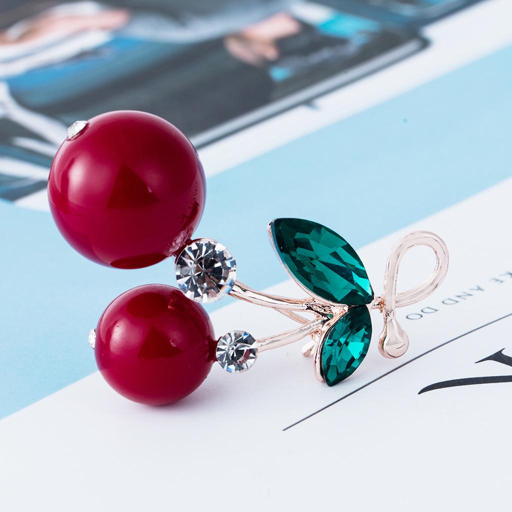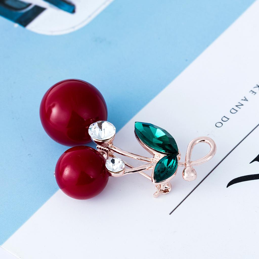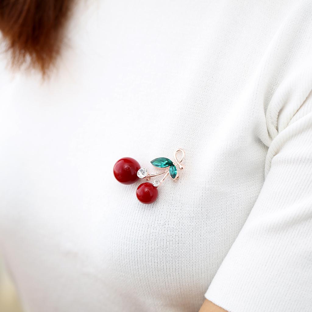 Stylish cherry brooch pin with glitter Crystal and faux pearl design