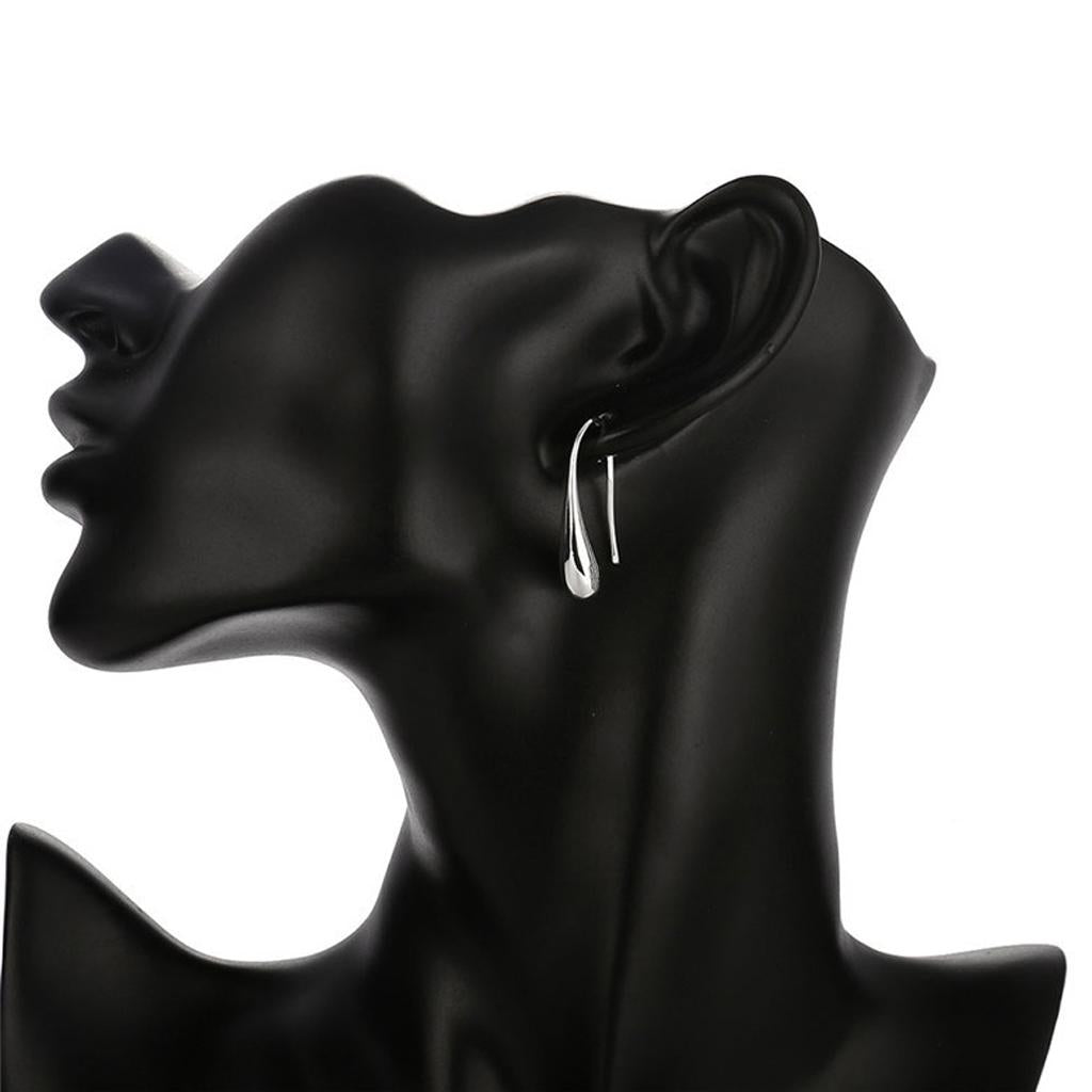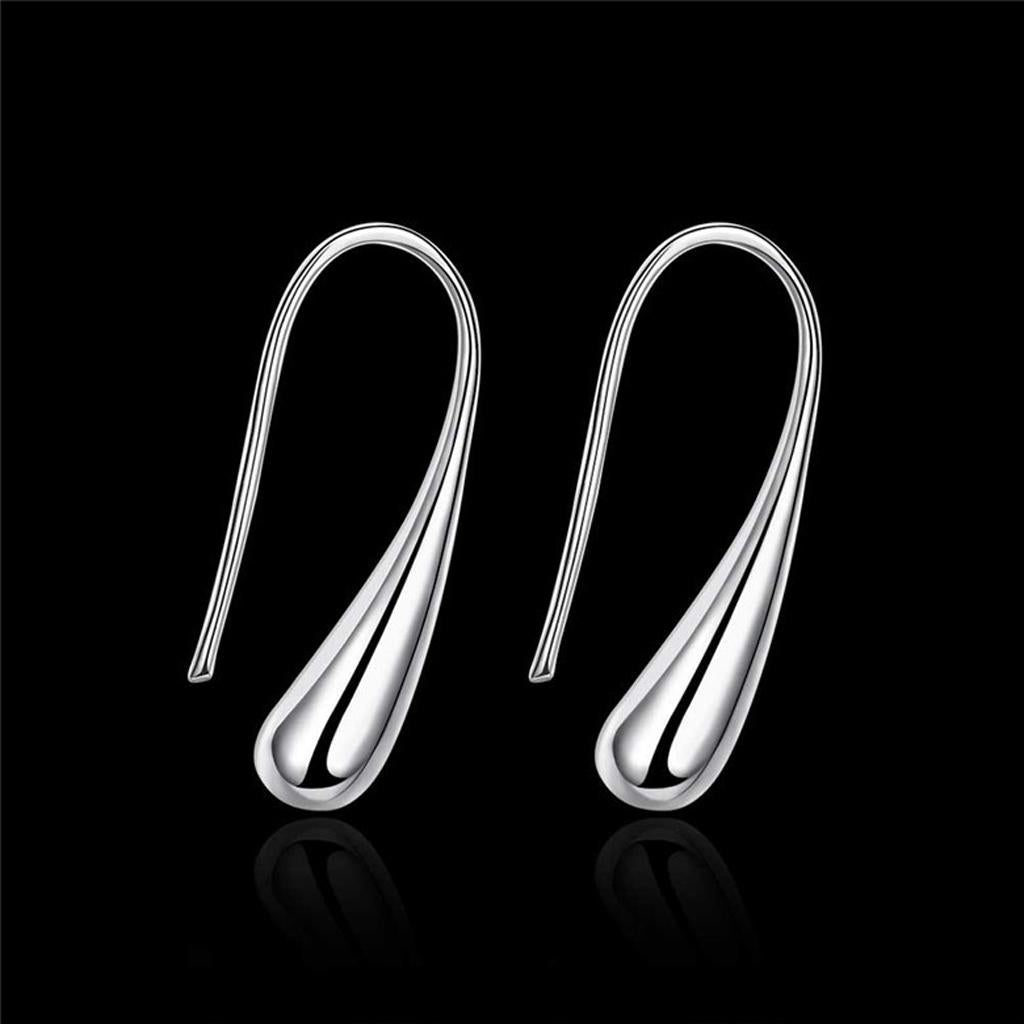 Sparkly women girl gift, Classic silver solid Teardrop charm Hook earring hoop Earrings