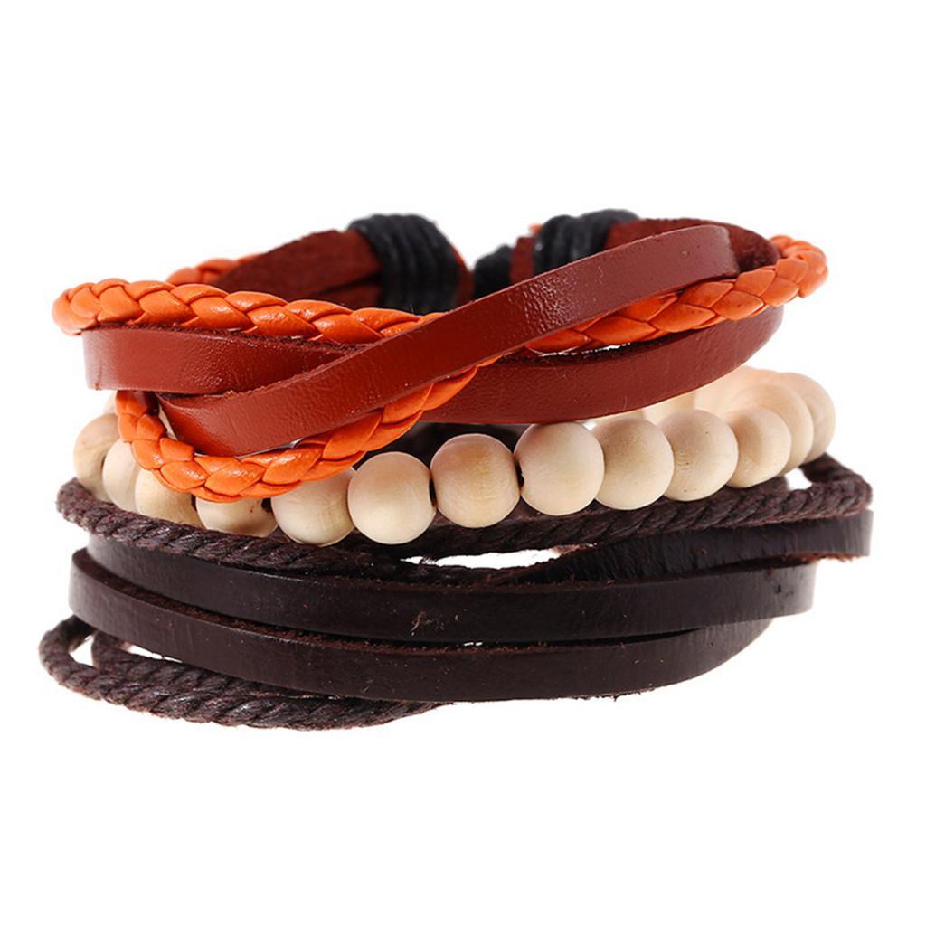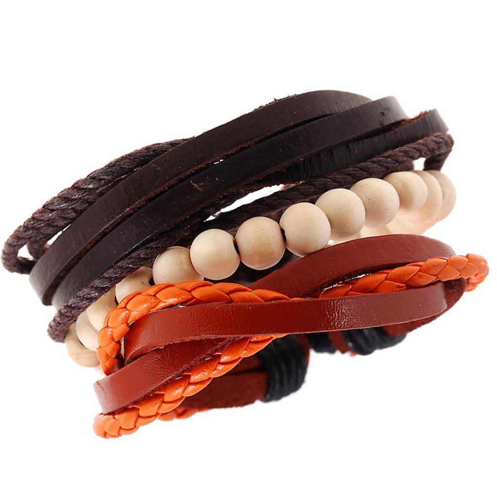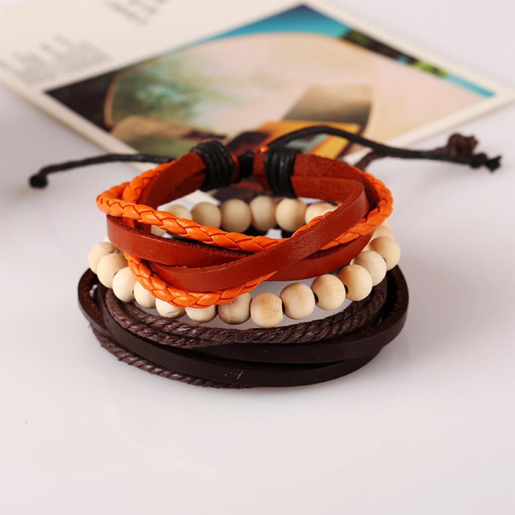 Unisex Fashion Wooden Beads Leather Multilayer Bracelet Adjustable Wristband