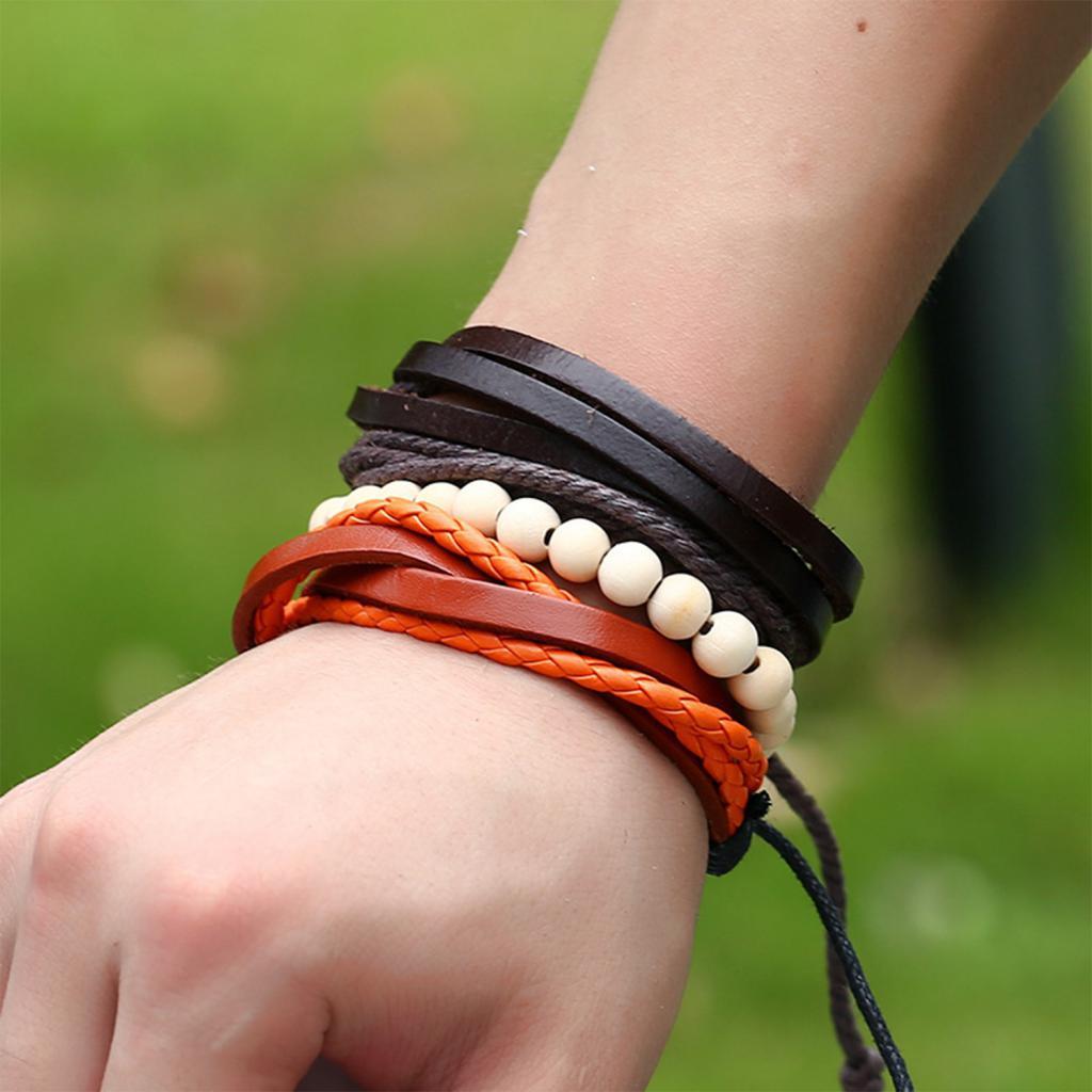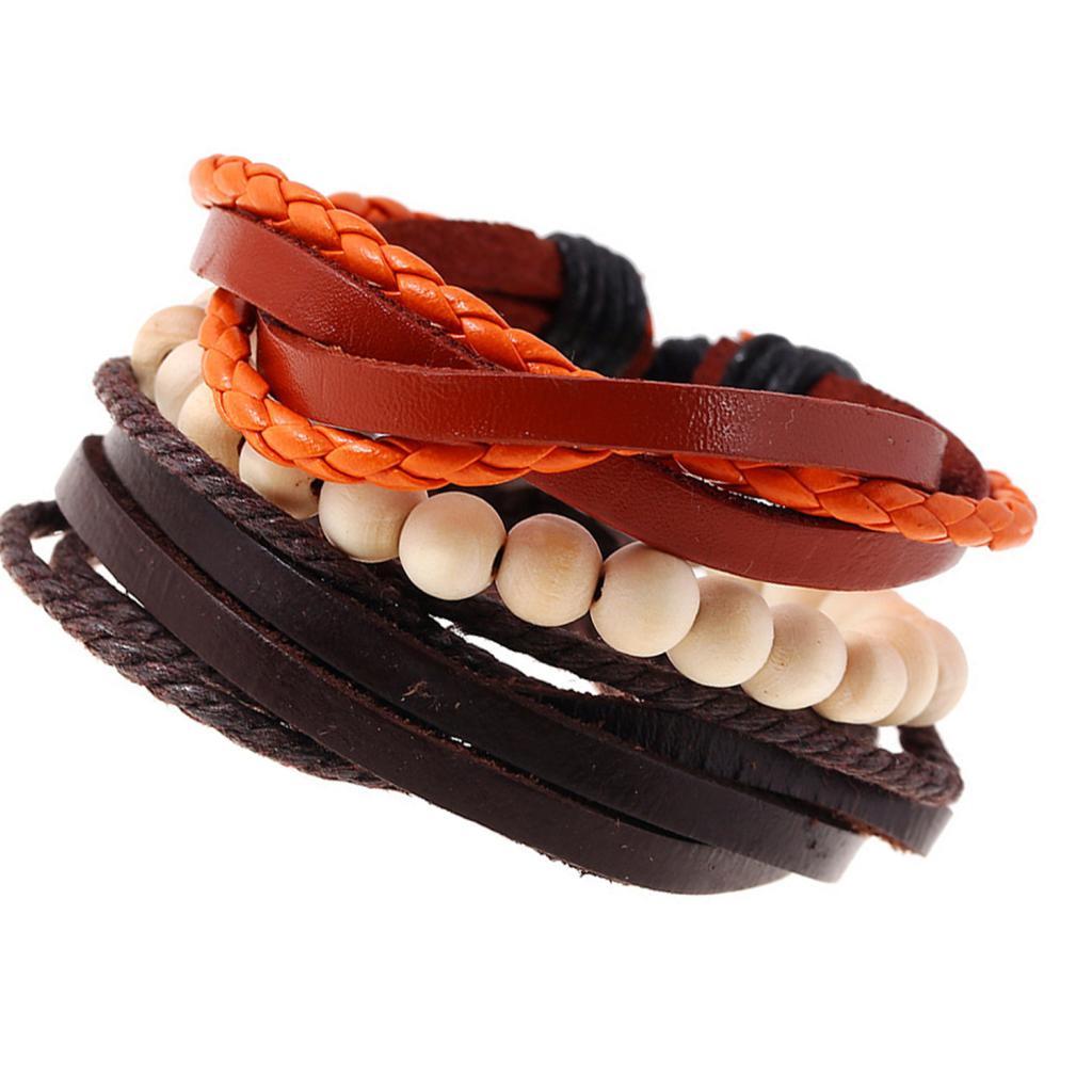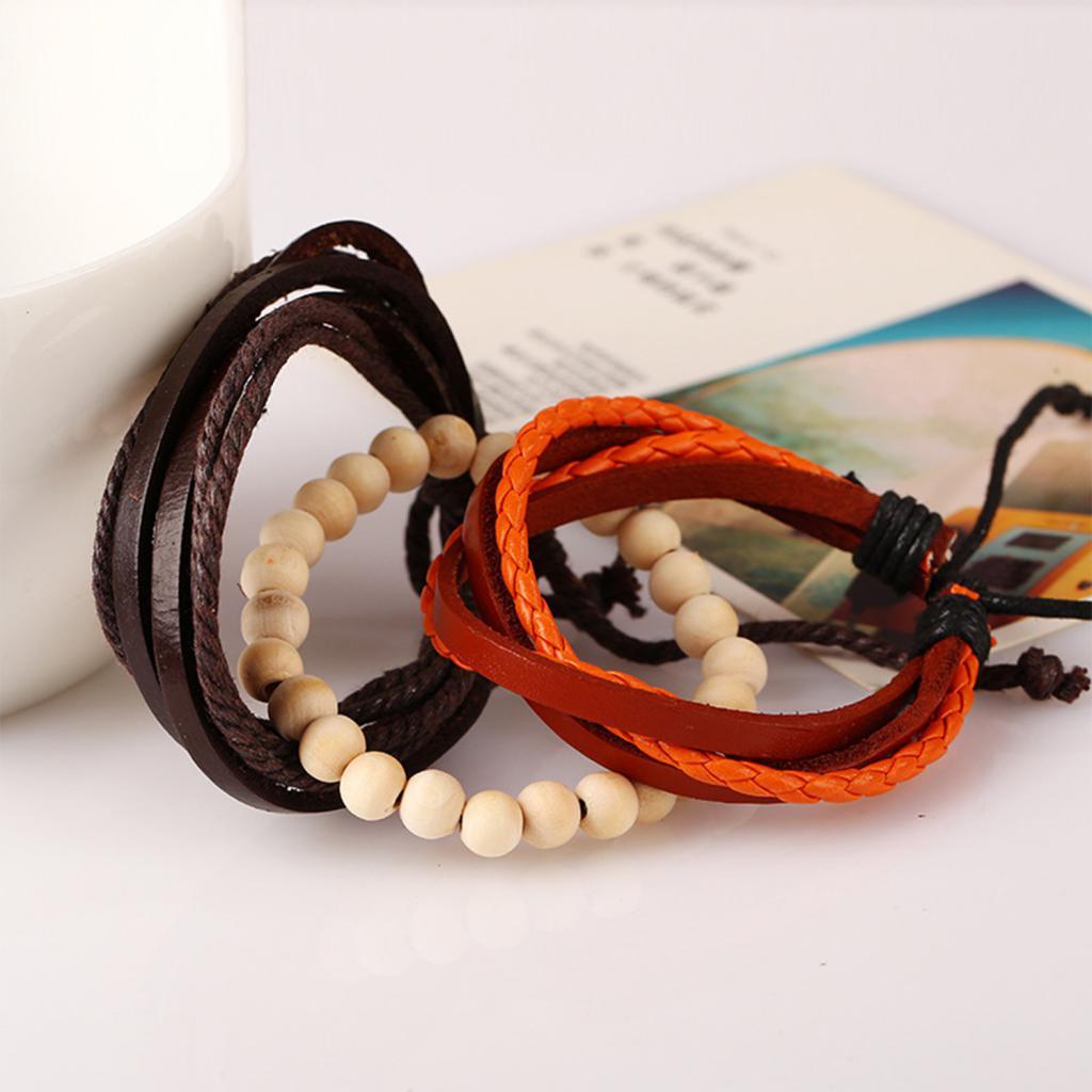 Handmade Soft Braided Leather Bracelets and Wooden Beaded Bracelets,comfortable to Wear, Longer Time to Use.