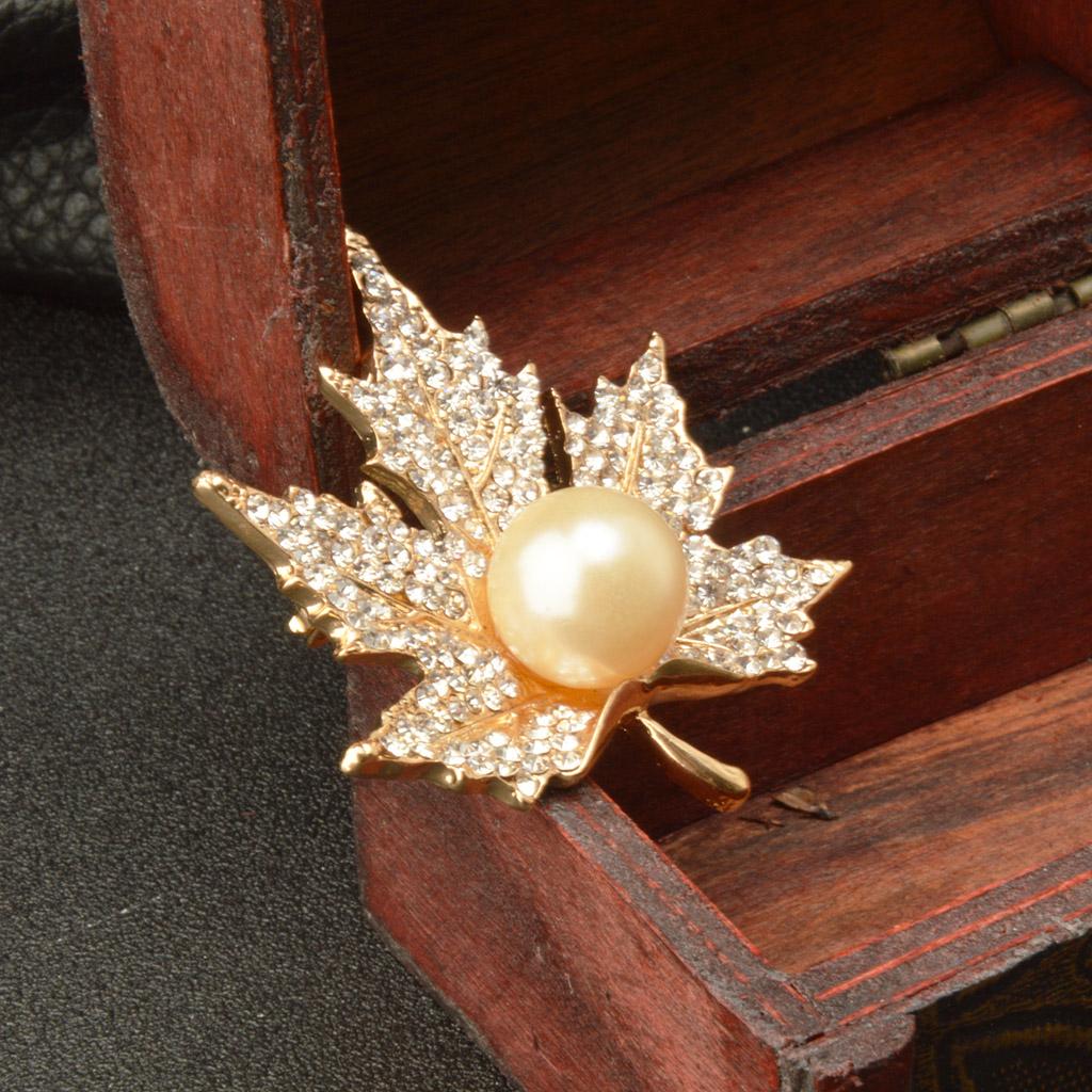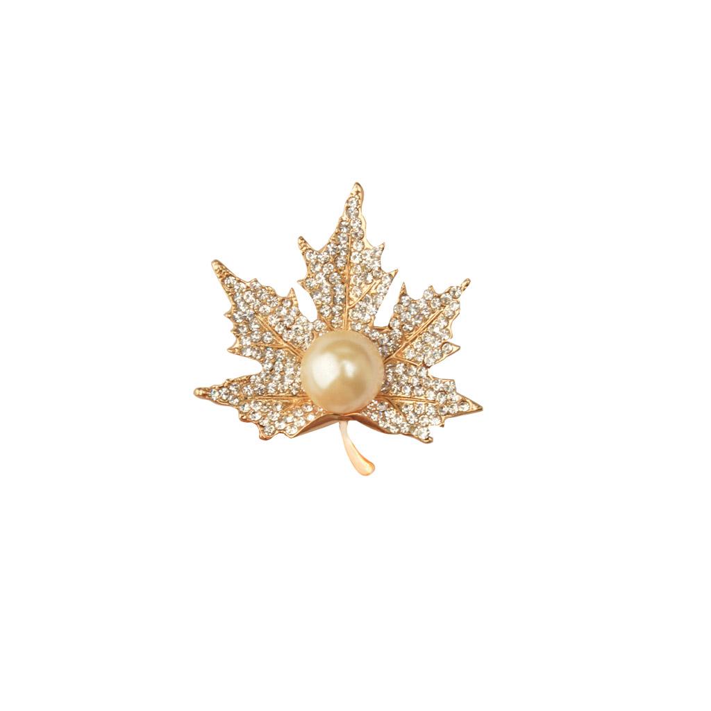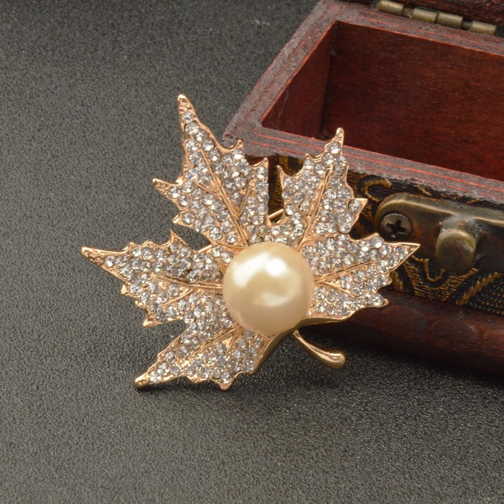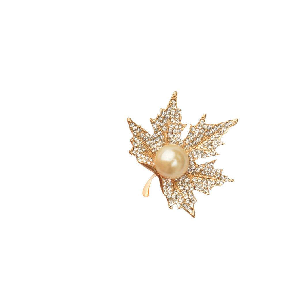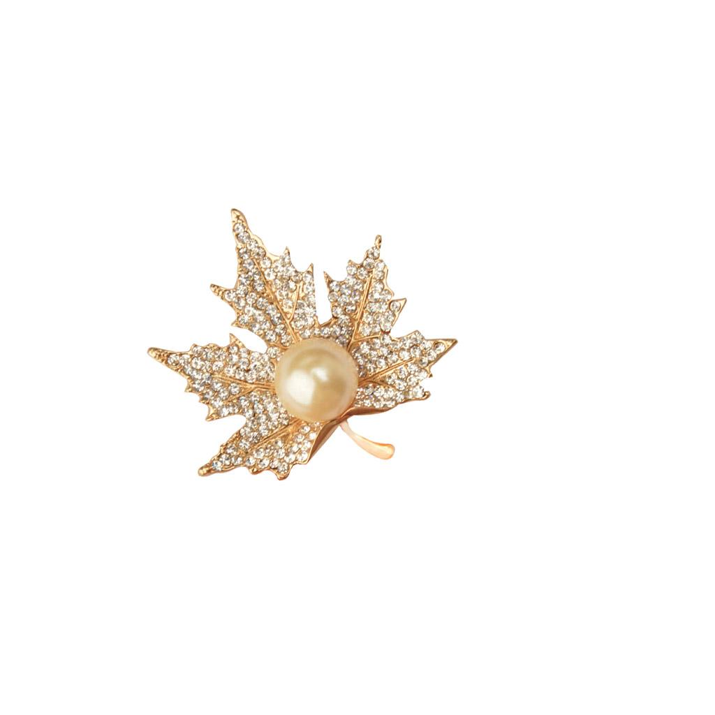 Unisex Gold Crystal Maple Leaves Clothing Suit Decor Brooch Pin Party Jewellry Gift