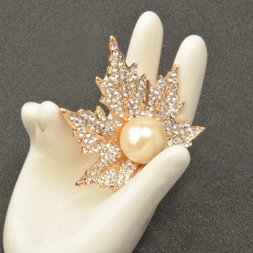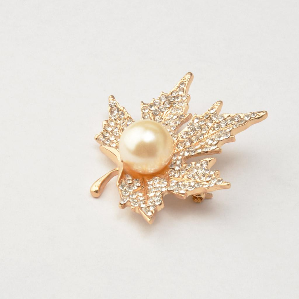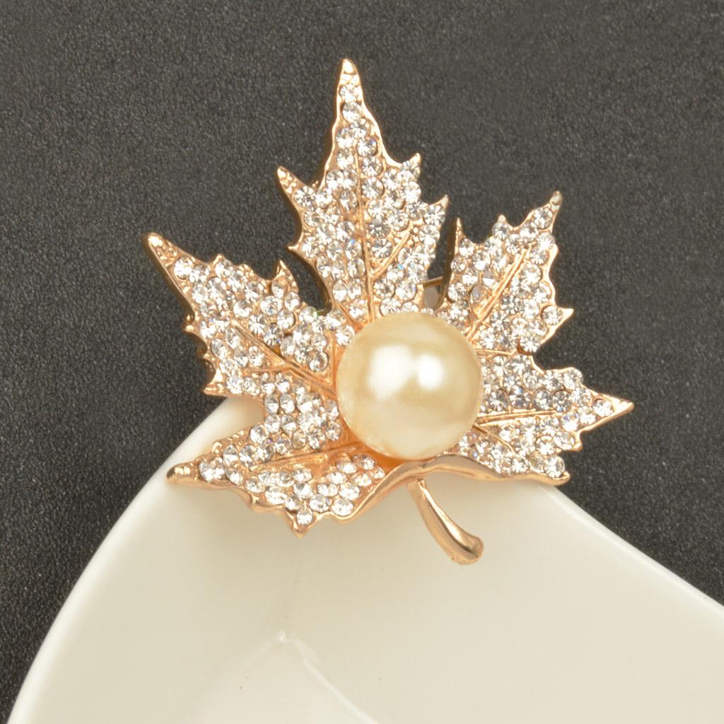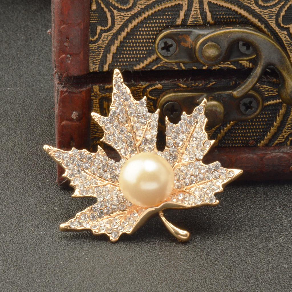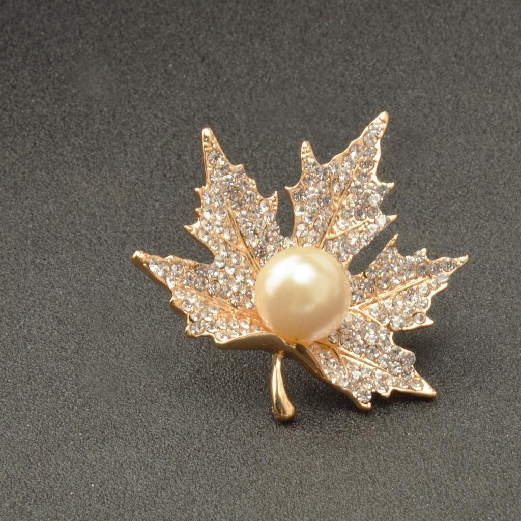 Unisex Gold Crystal Maple Leaves Clothing Suit Decor Brooch Pin Party Jewellry Gift