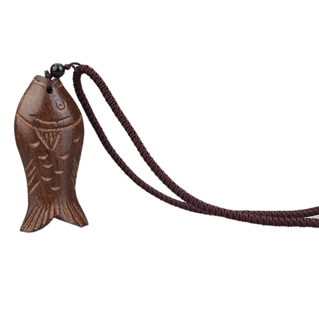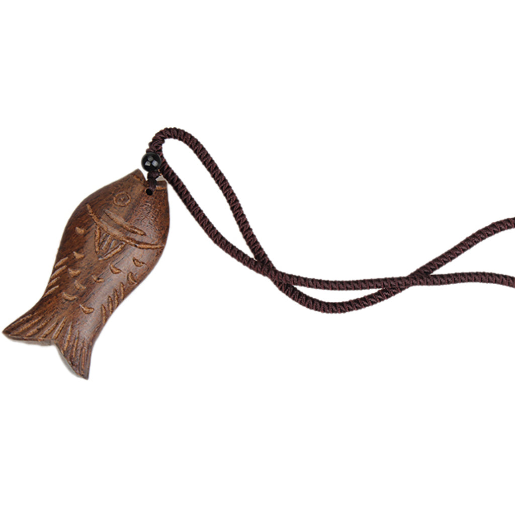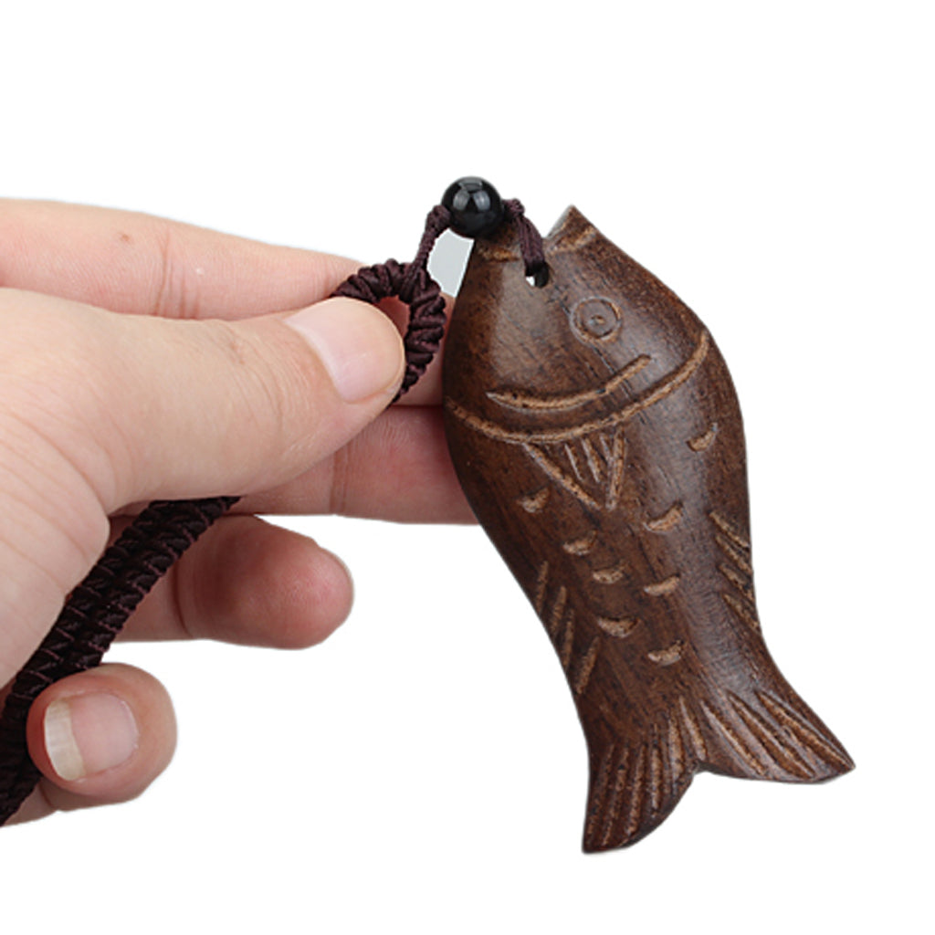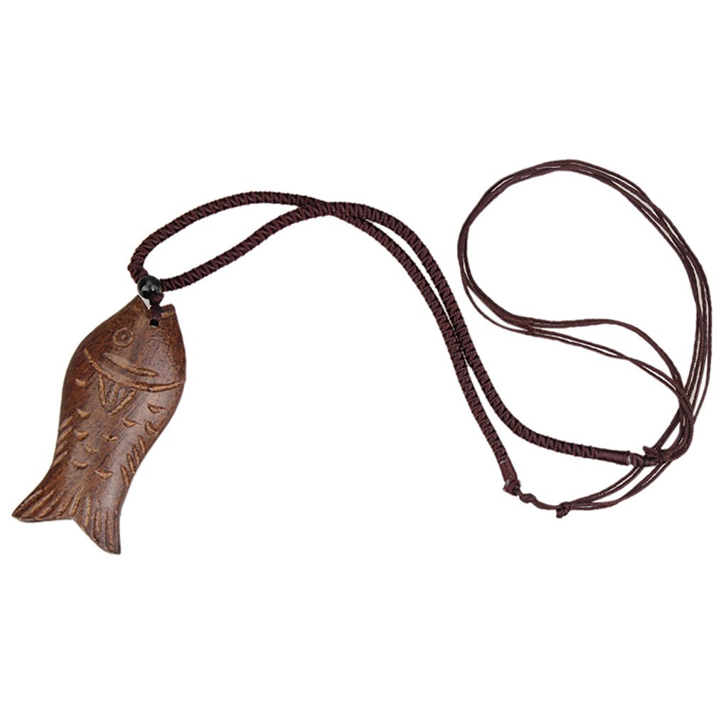 • Stylish wooden lucky fish shaped pendant with genuine oxhide necklace