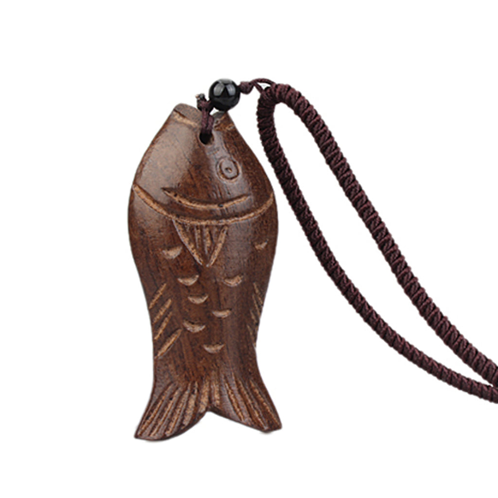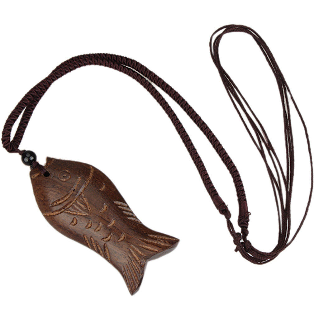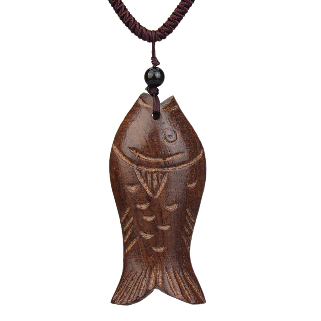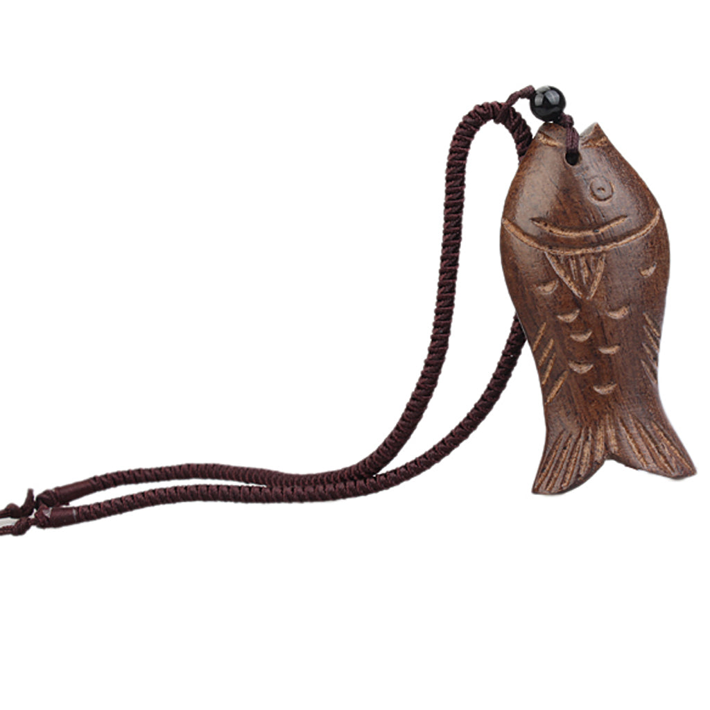 • Stylish wooden lucky fish shaped pendant with genuine oxhide necklace