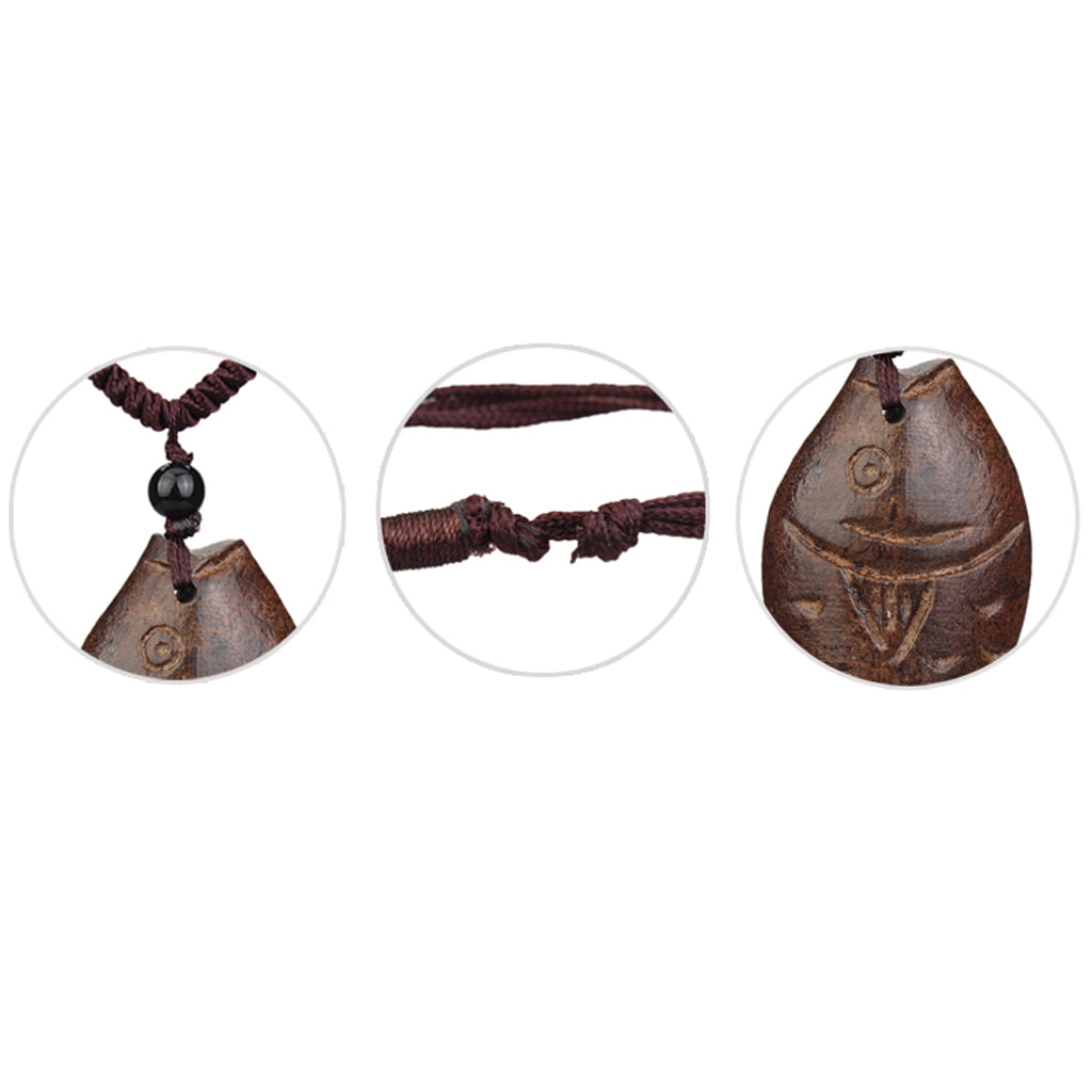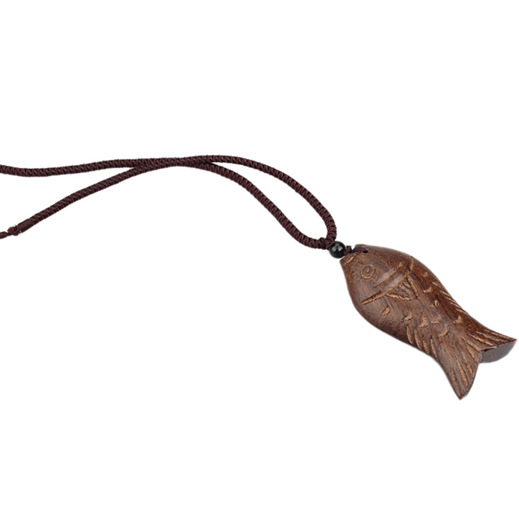 Vintage Faux Leather Chain Necklace Wood Lucky Fish Pendant Vinatge Brown