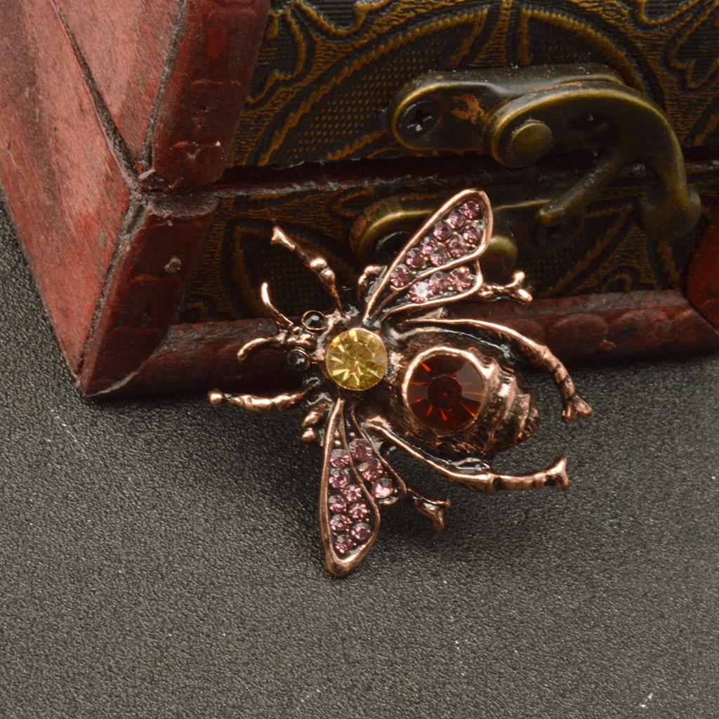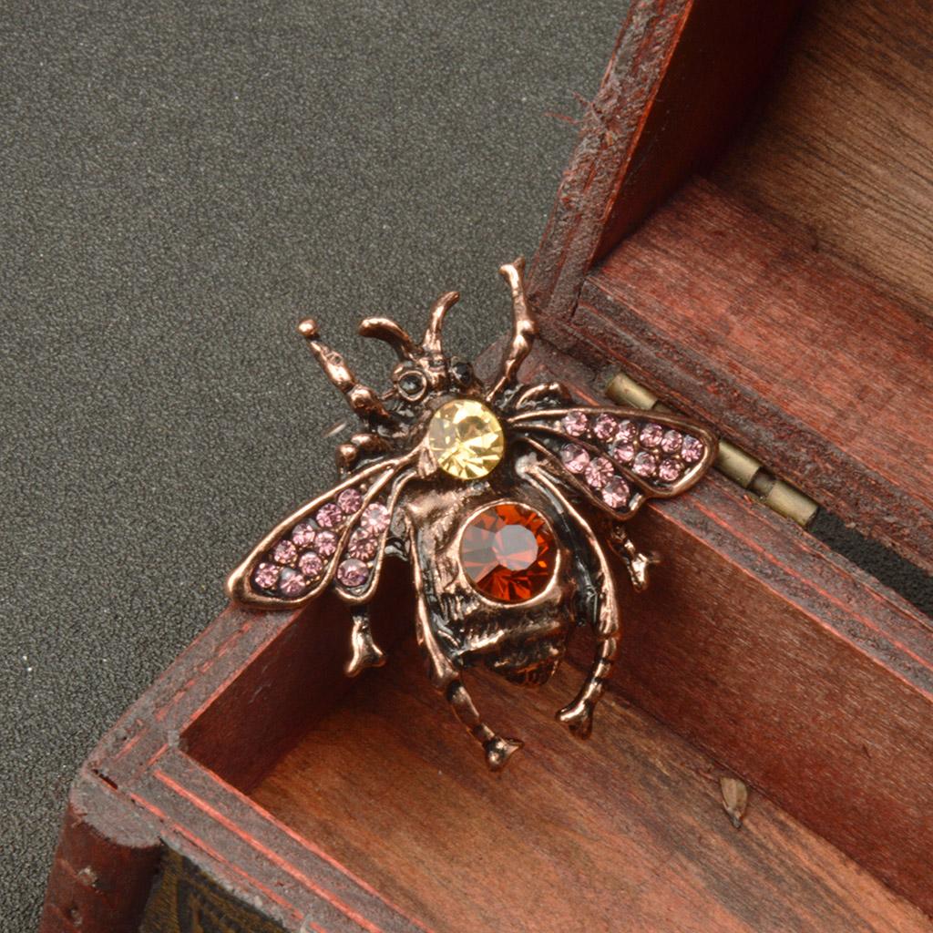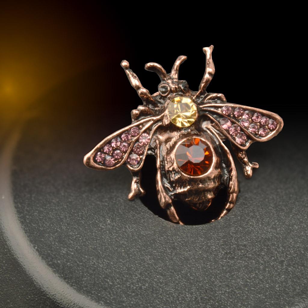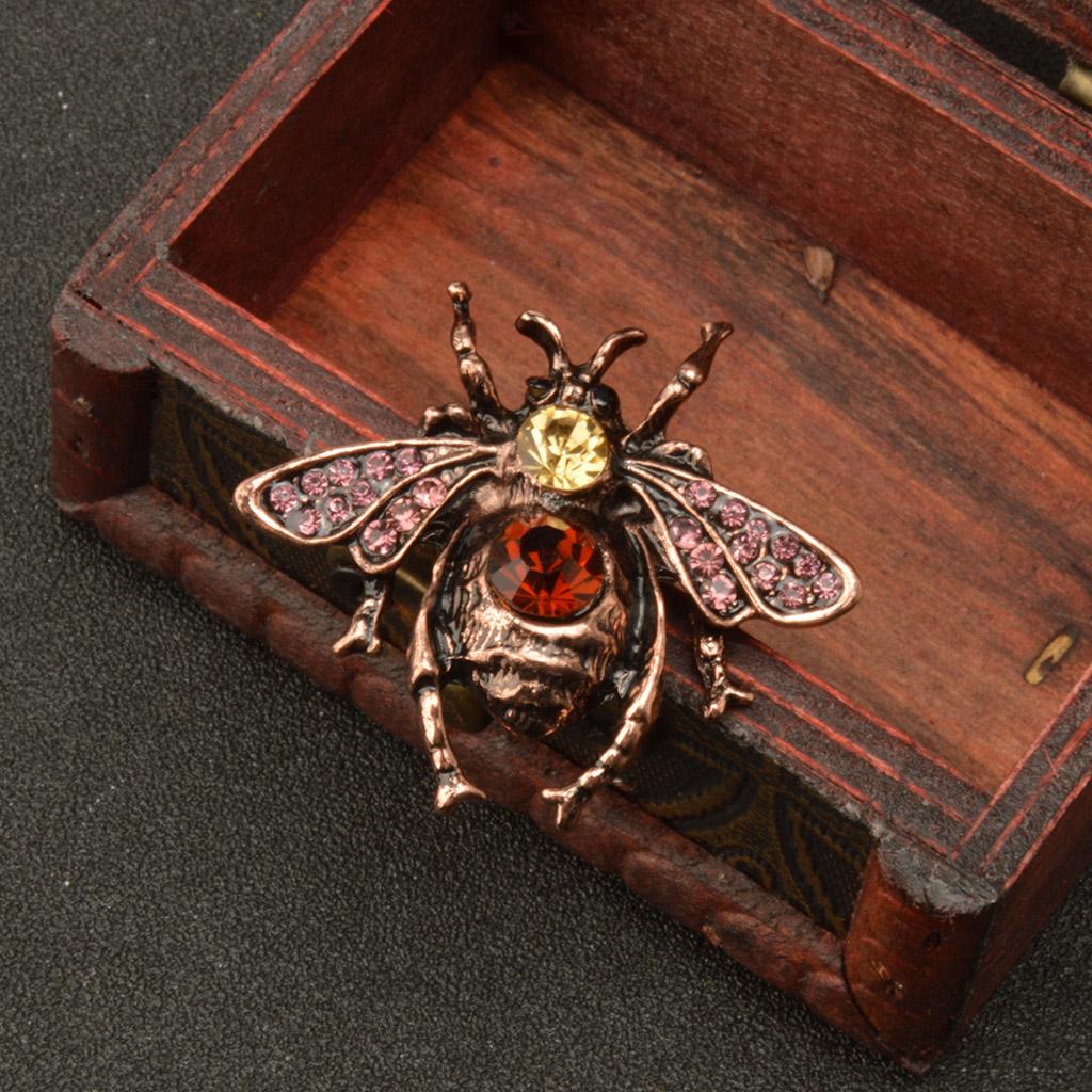 Vintage Red Bronze Plated Women Men Crystal Honey Bee Brooch Pin Jewelry