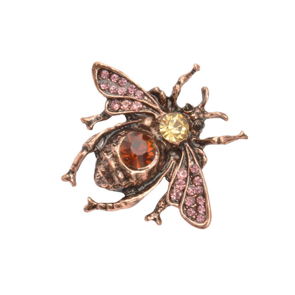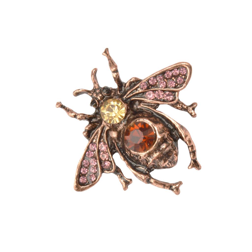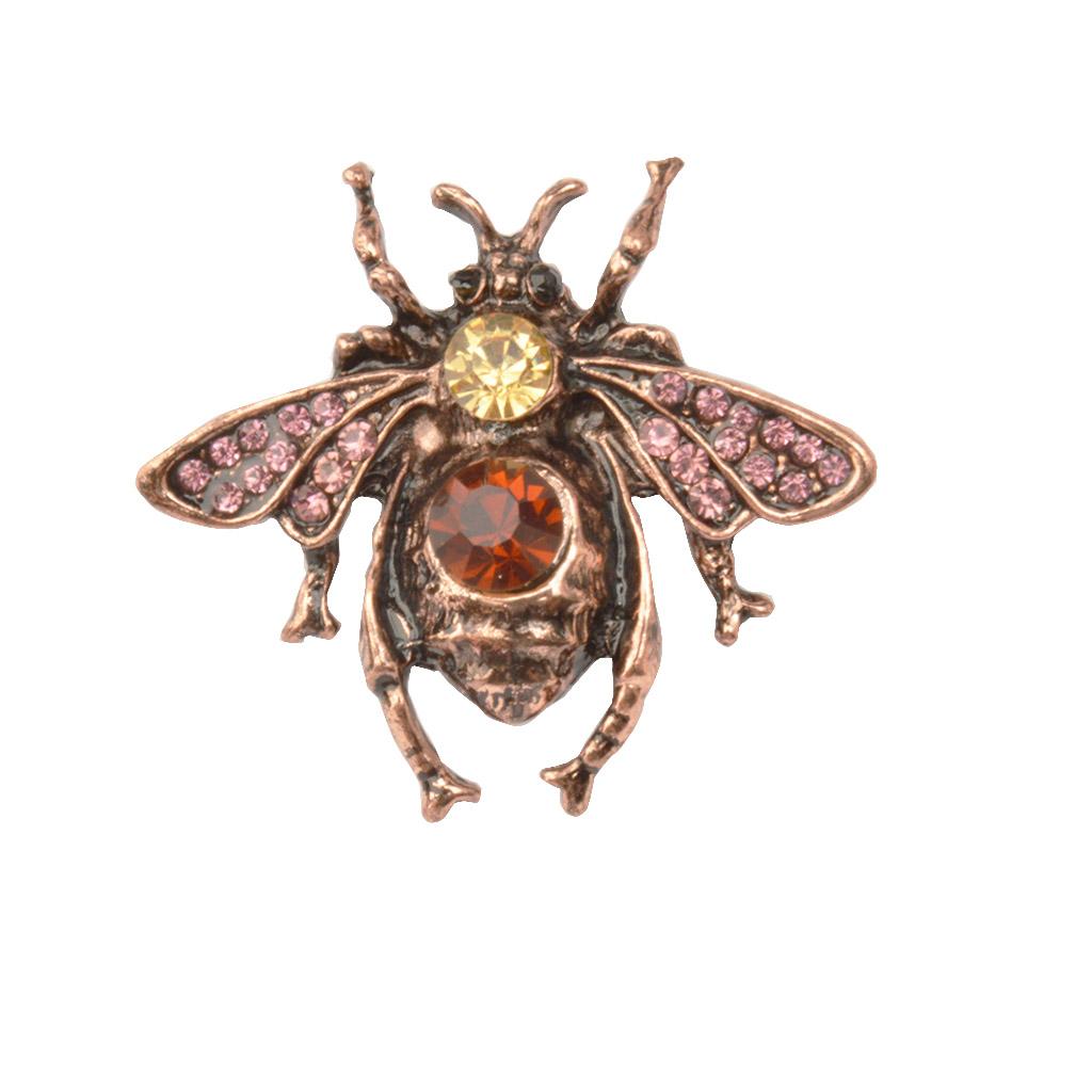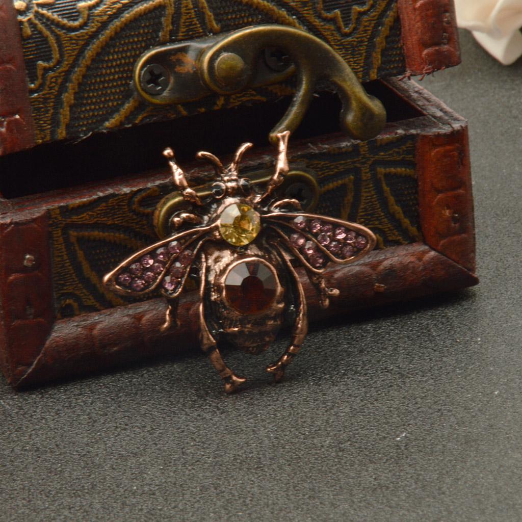 Vintage Red Bronze Plated Women Men Crystal Honey Bee Brooch Pin Jewelry
