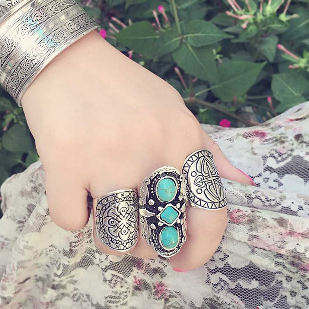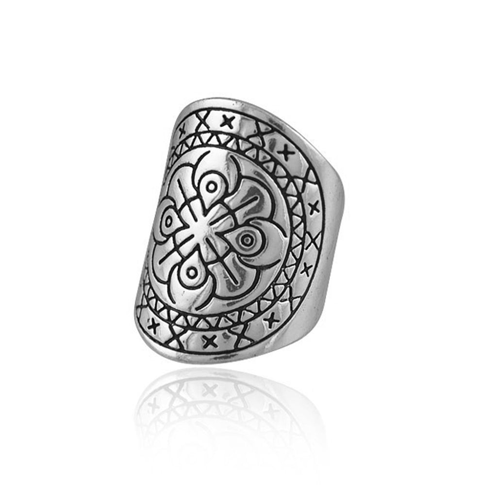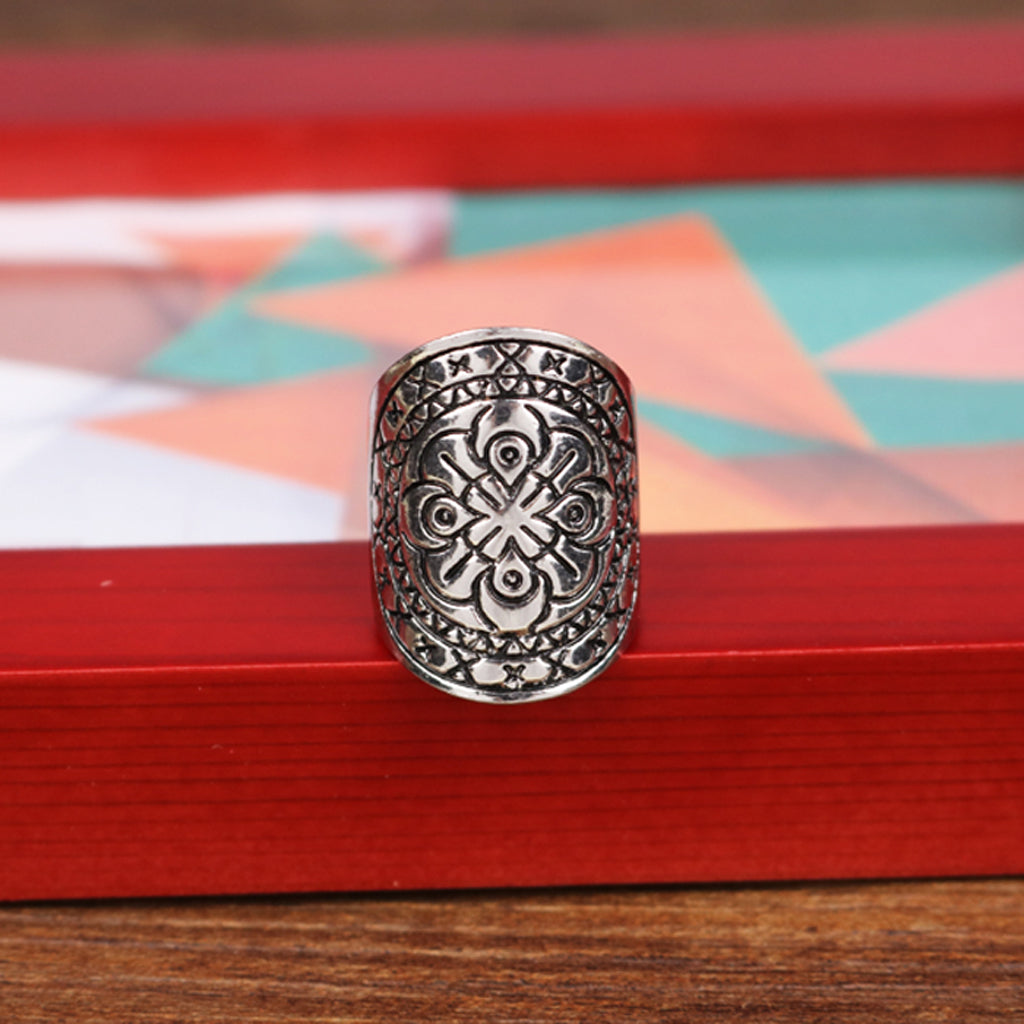 Vintage silver Carved Flower Bohemian Tribal ethnic Finger Ring Jewelry