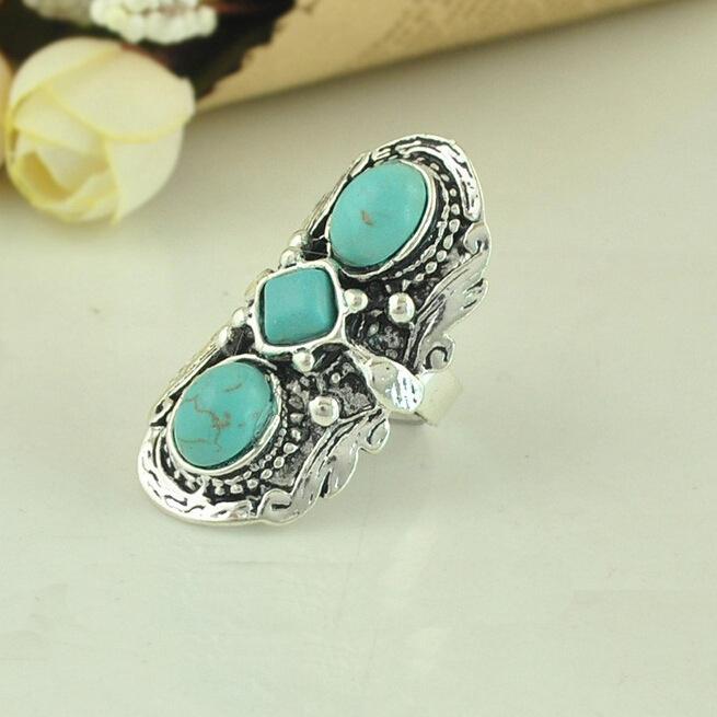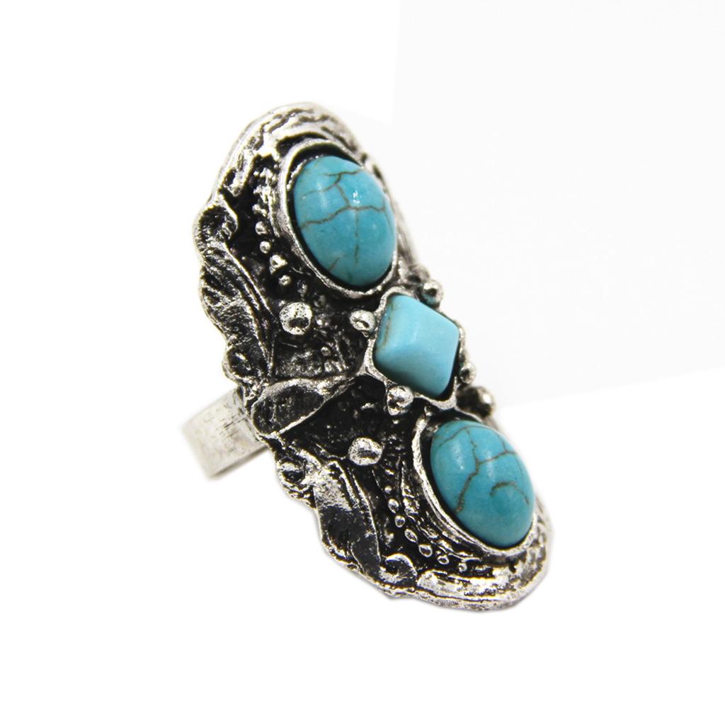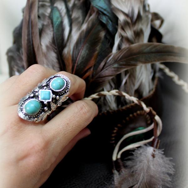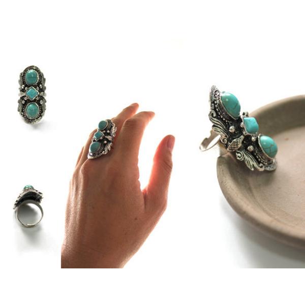 Vintage Tibetan Turquoise Finger Ring Carved Hippy Gypsy Adjustable Ring