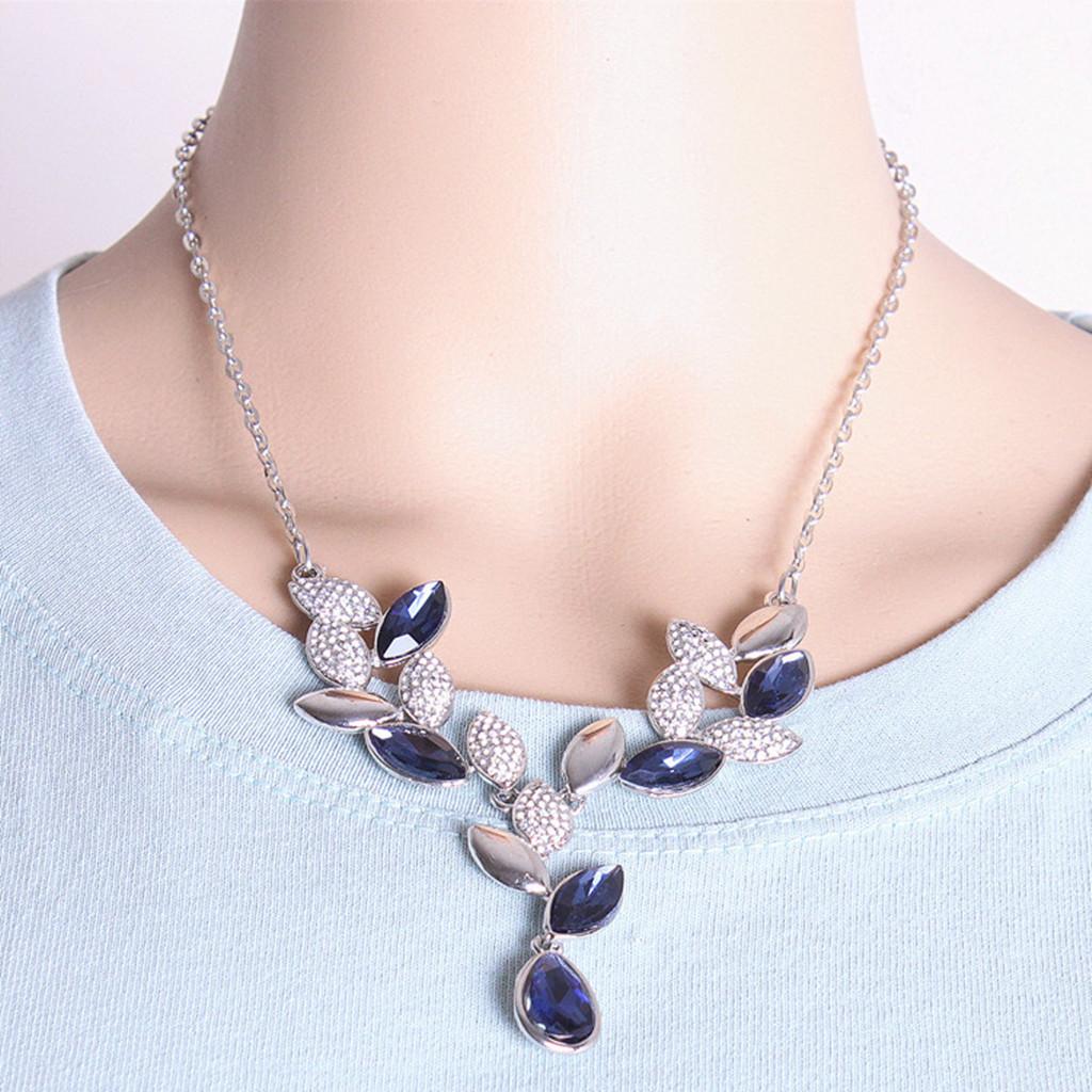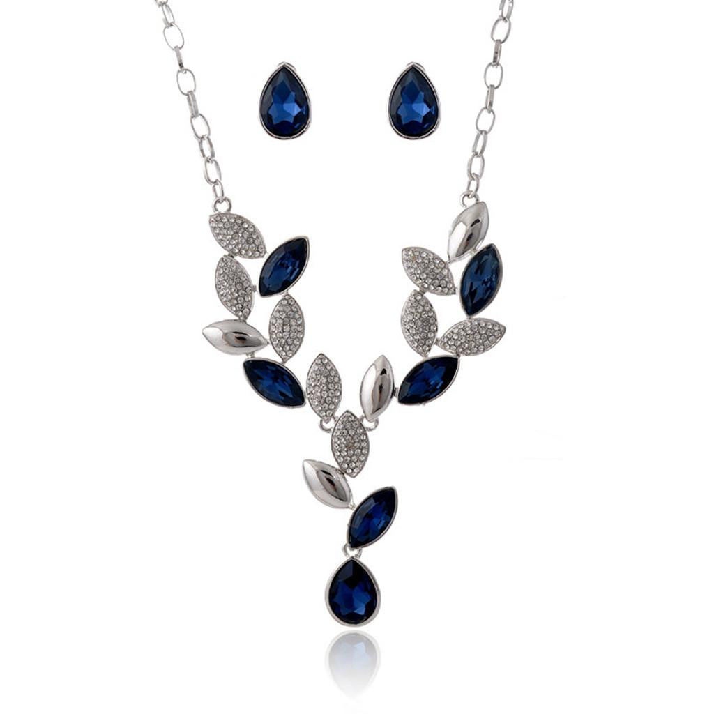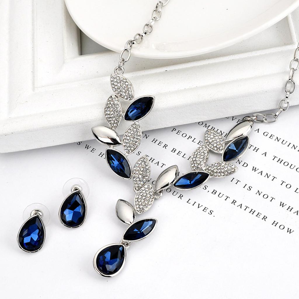 Wedding Accessory Banquet Leaf Crystal Earrings Necklace Bridal Jewelry Sets