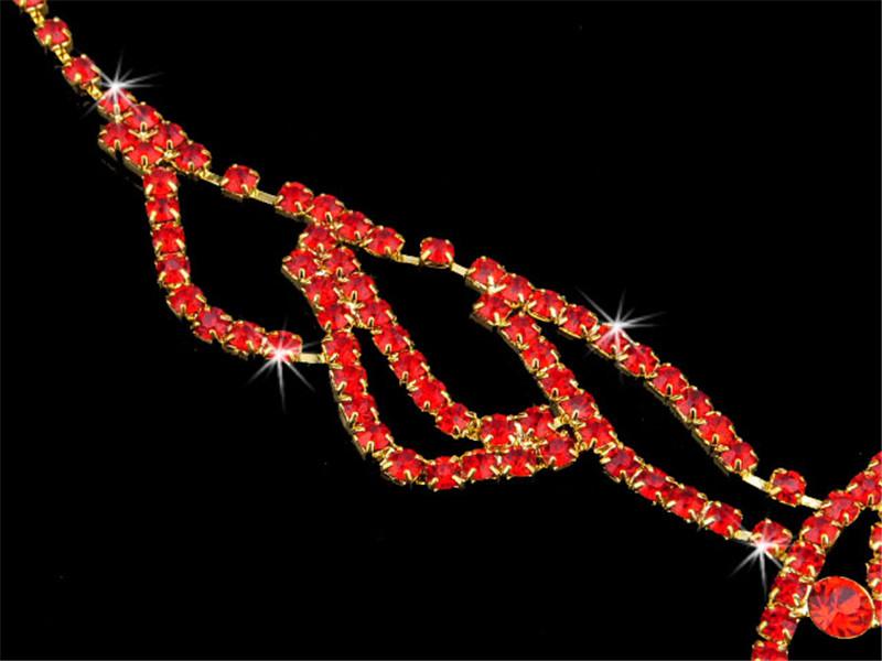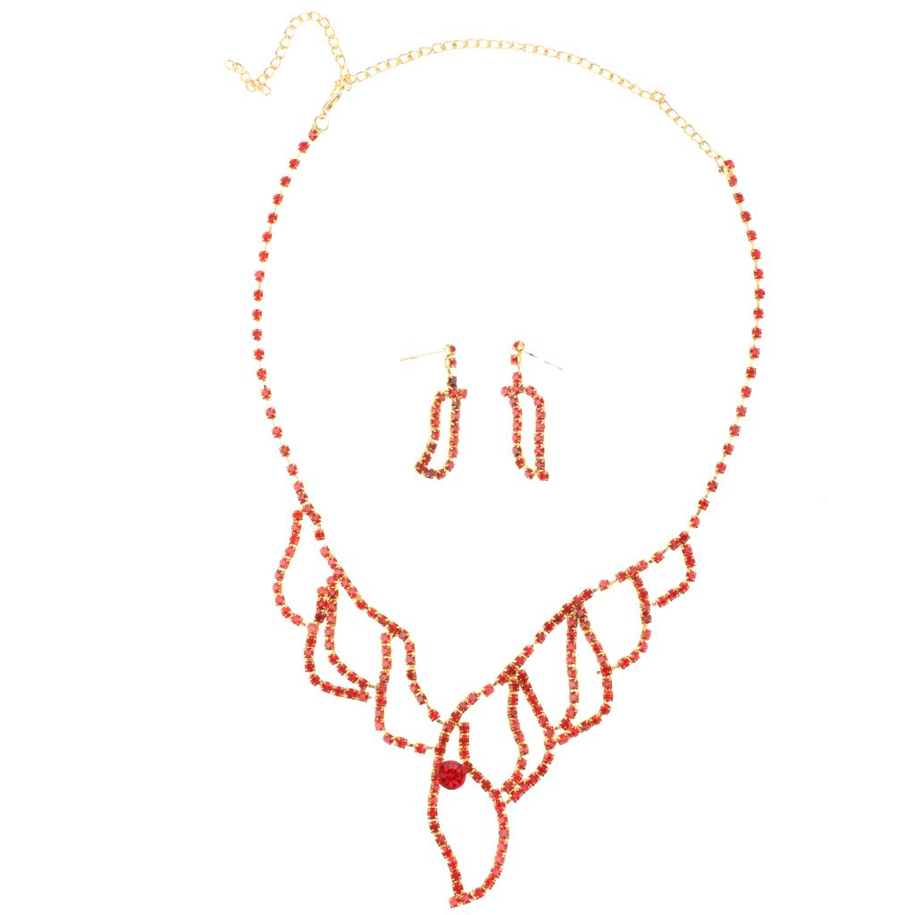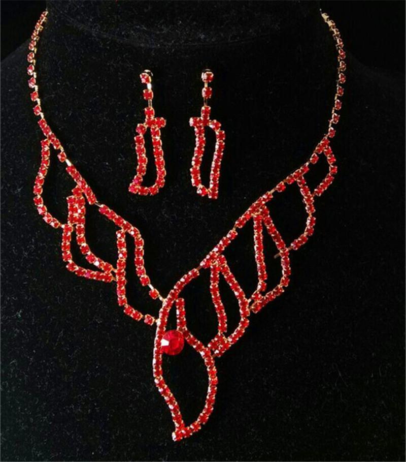Wedding Bridal Jewelry Red Rhinestone Crystal Necklace And Earrings Set