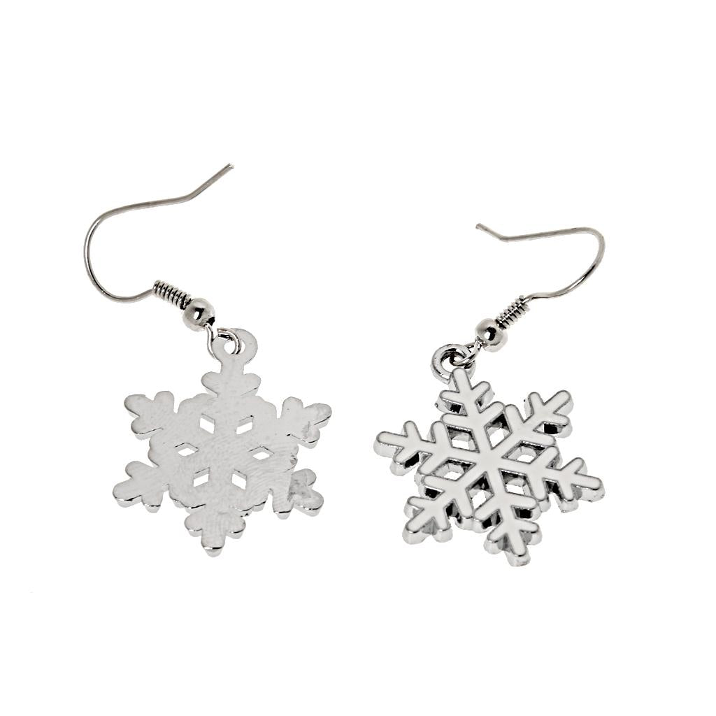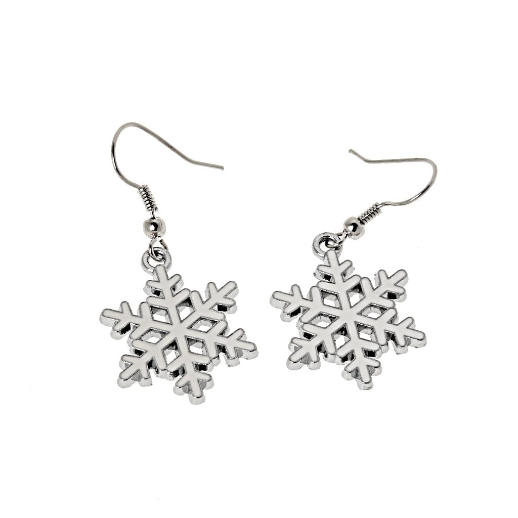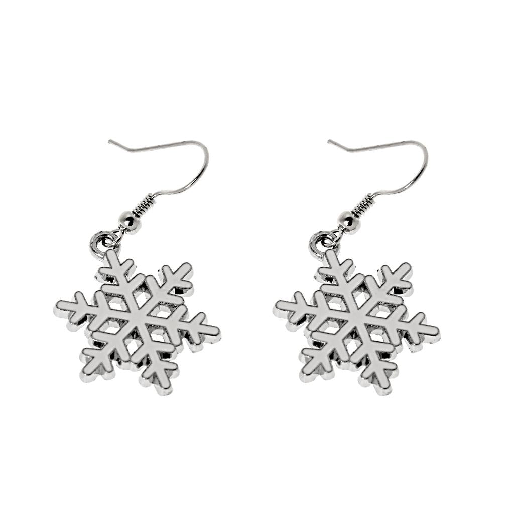 Women Girls Ladies Fashionable Charming Elegant Snowflake Christmas Earrings Ear Hooks Xmas Birthday Party Gift Silver