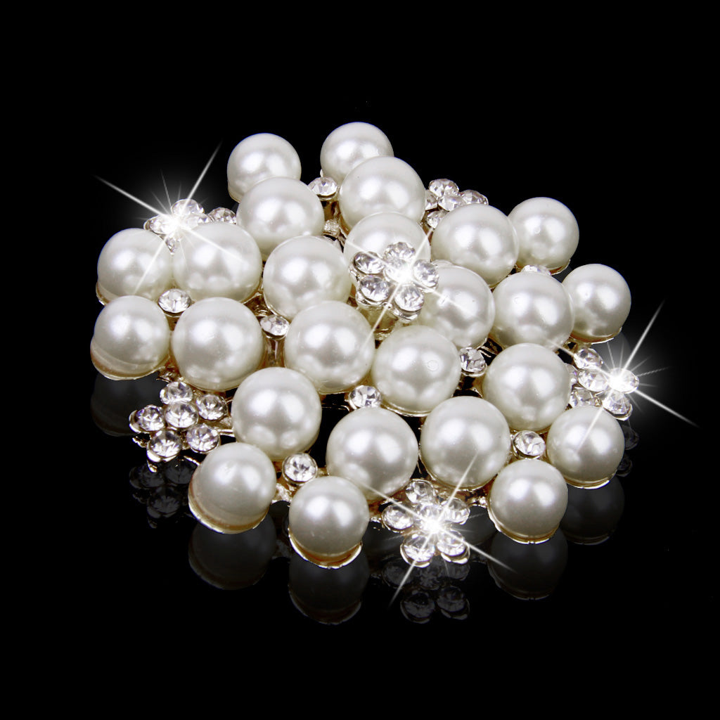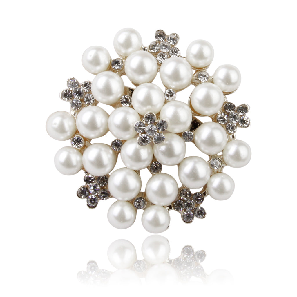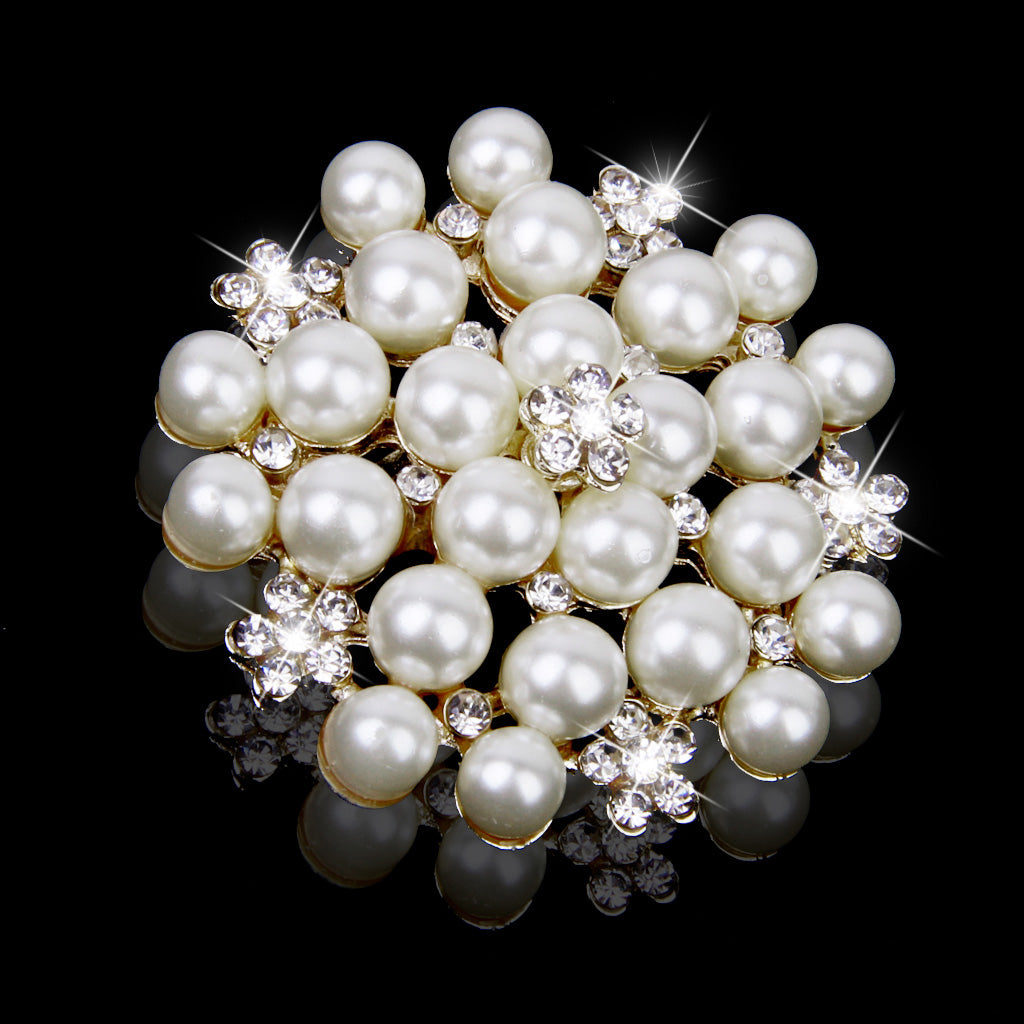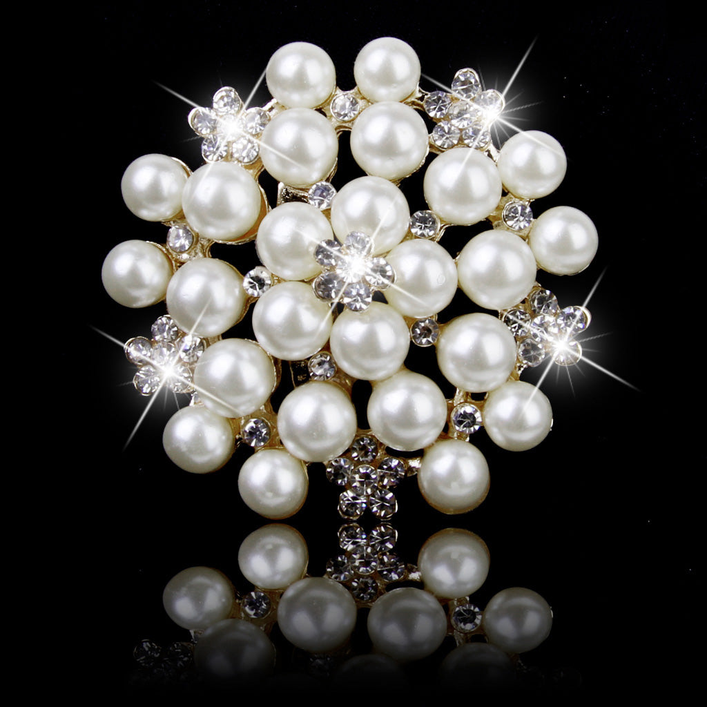 Women Girls Ladies Fashionable Crystal Faux Pearl Brooch Pin Wedding Bridal Supplies