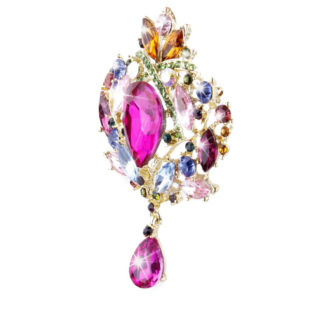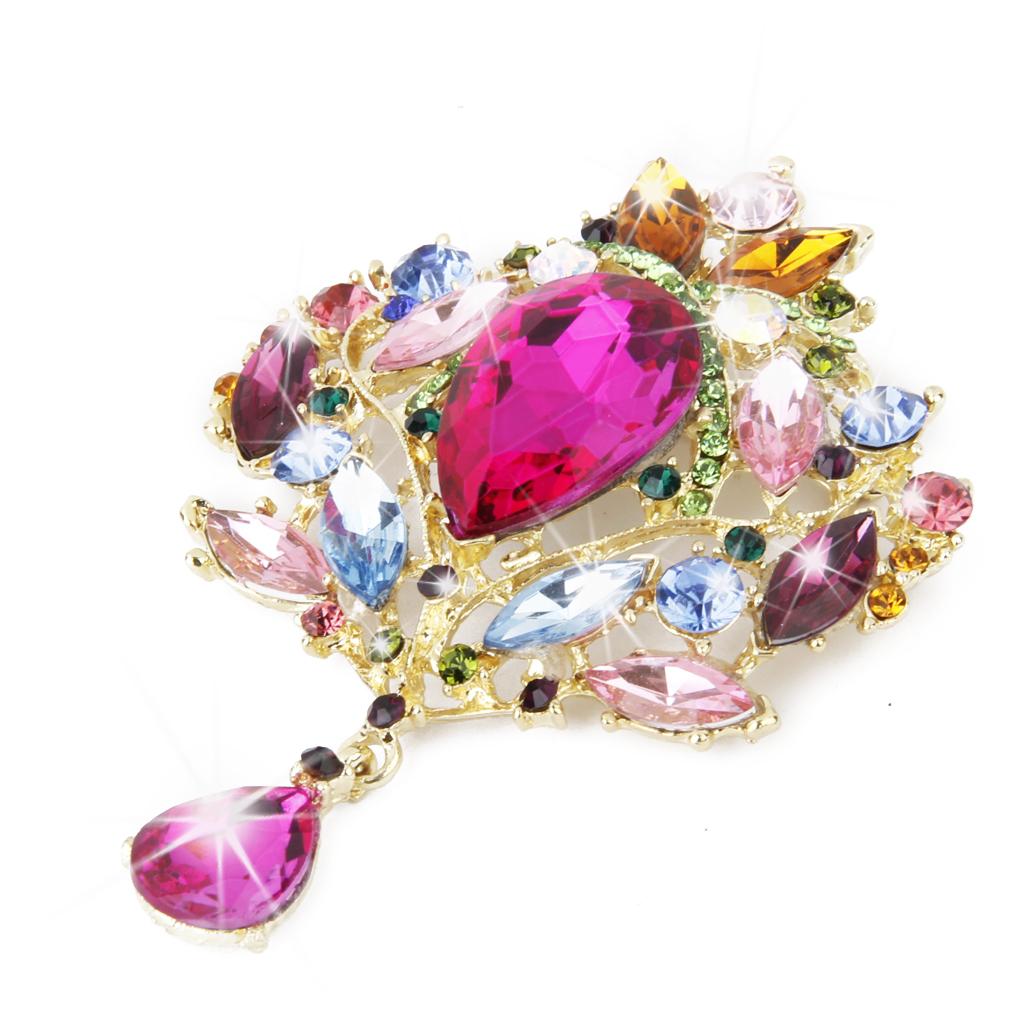 Women Girls Ladies Fashionable Sparkly Crystal Rhinestone Brooch Pin Wedding Party Supplies Multi-Color