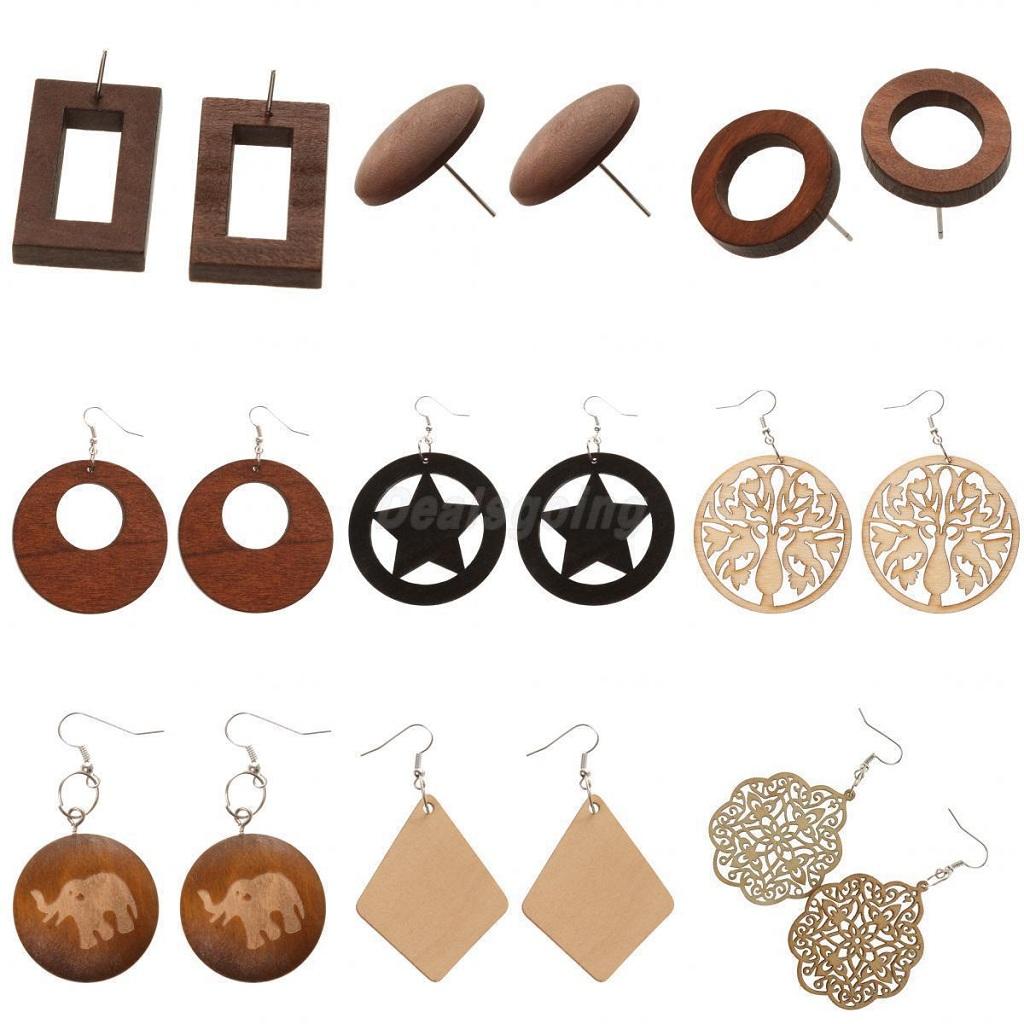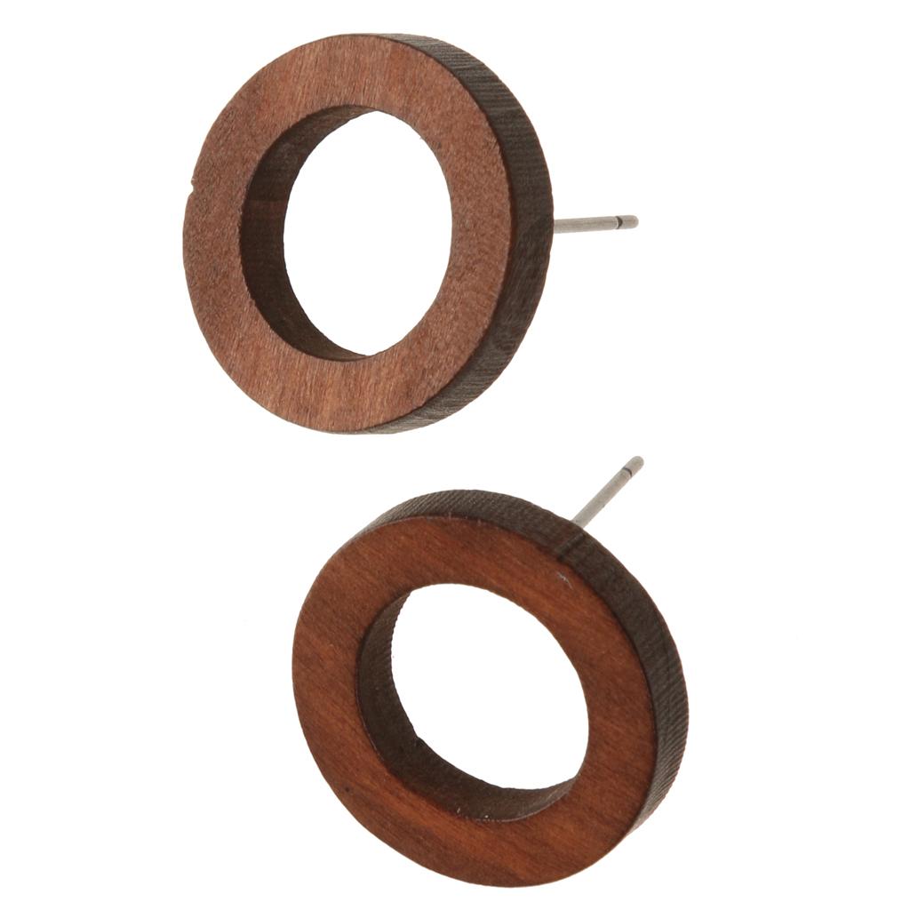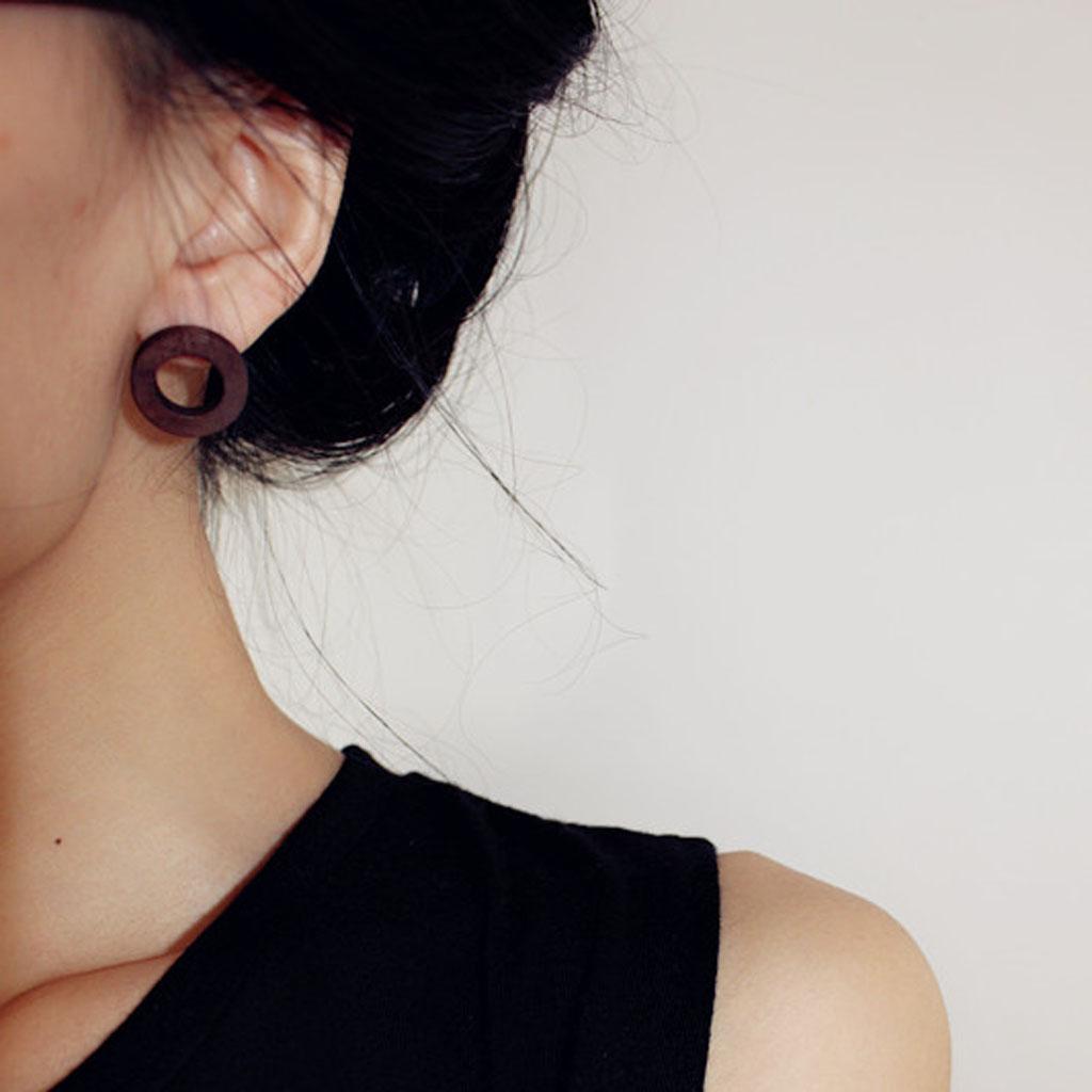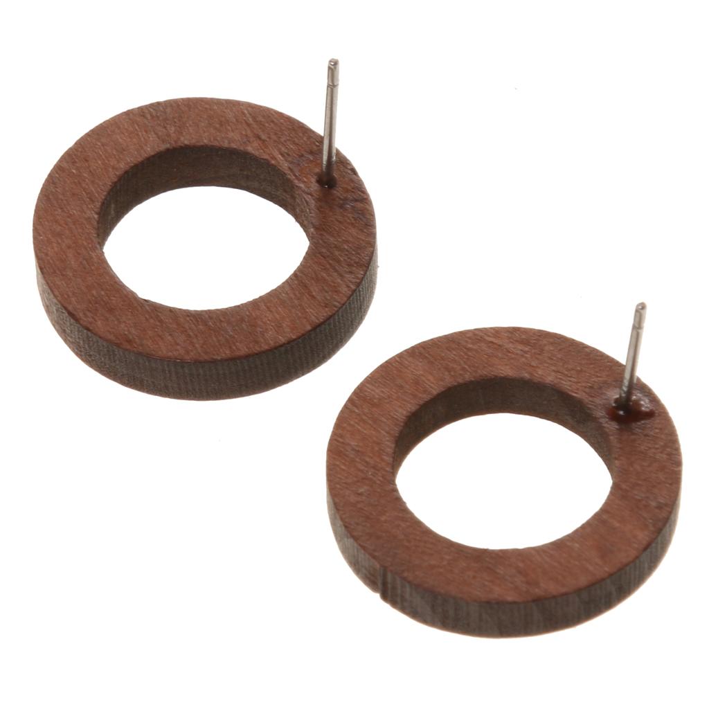 Women Jewelry Earings Brown Vintage Round Hollow Wood Stud Earrings