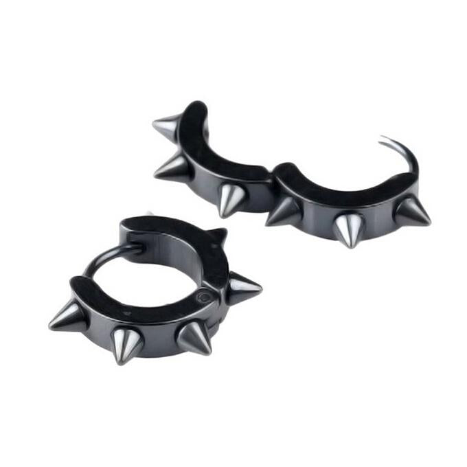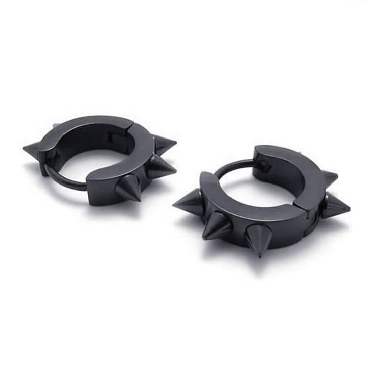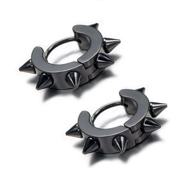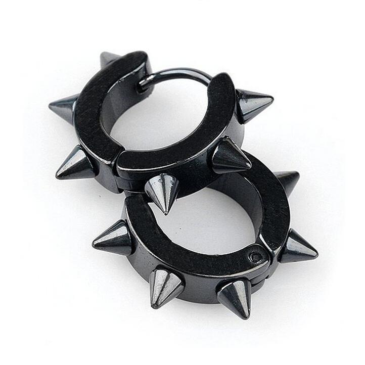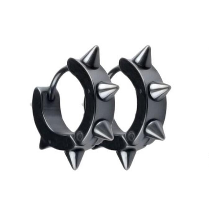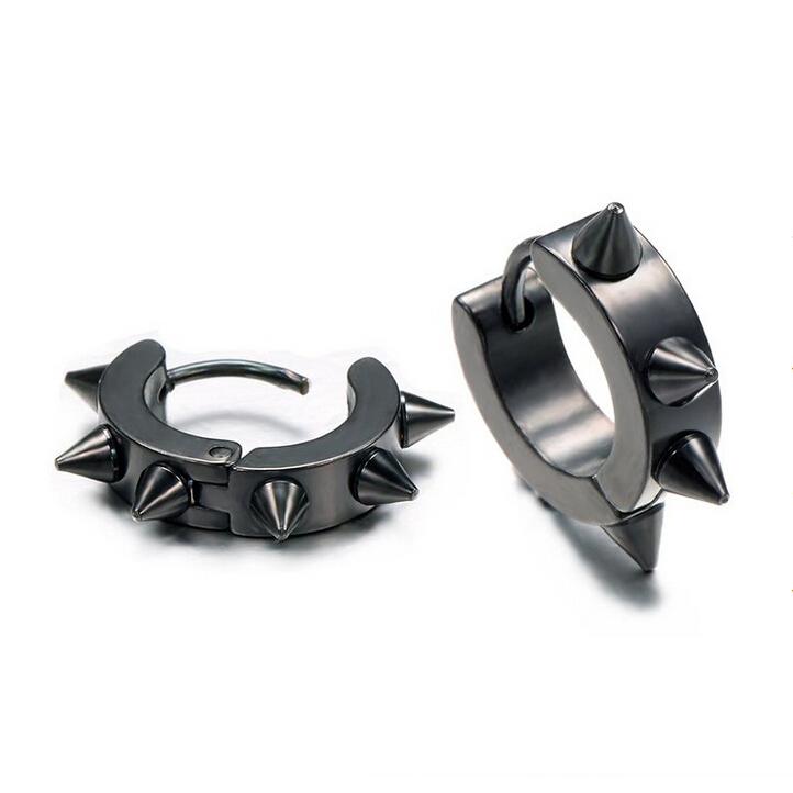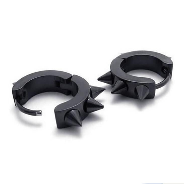 Women Men Fashionable Stainless Steel Punk Cool Hip Hop Stud Cuff Clip On Earring Jewelry Black 0.39 inch
