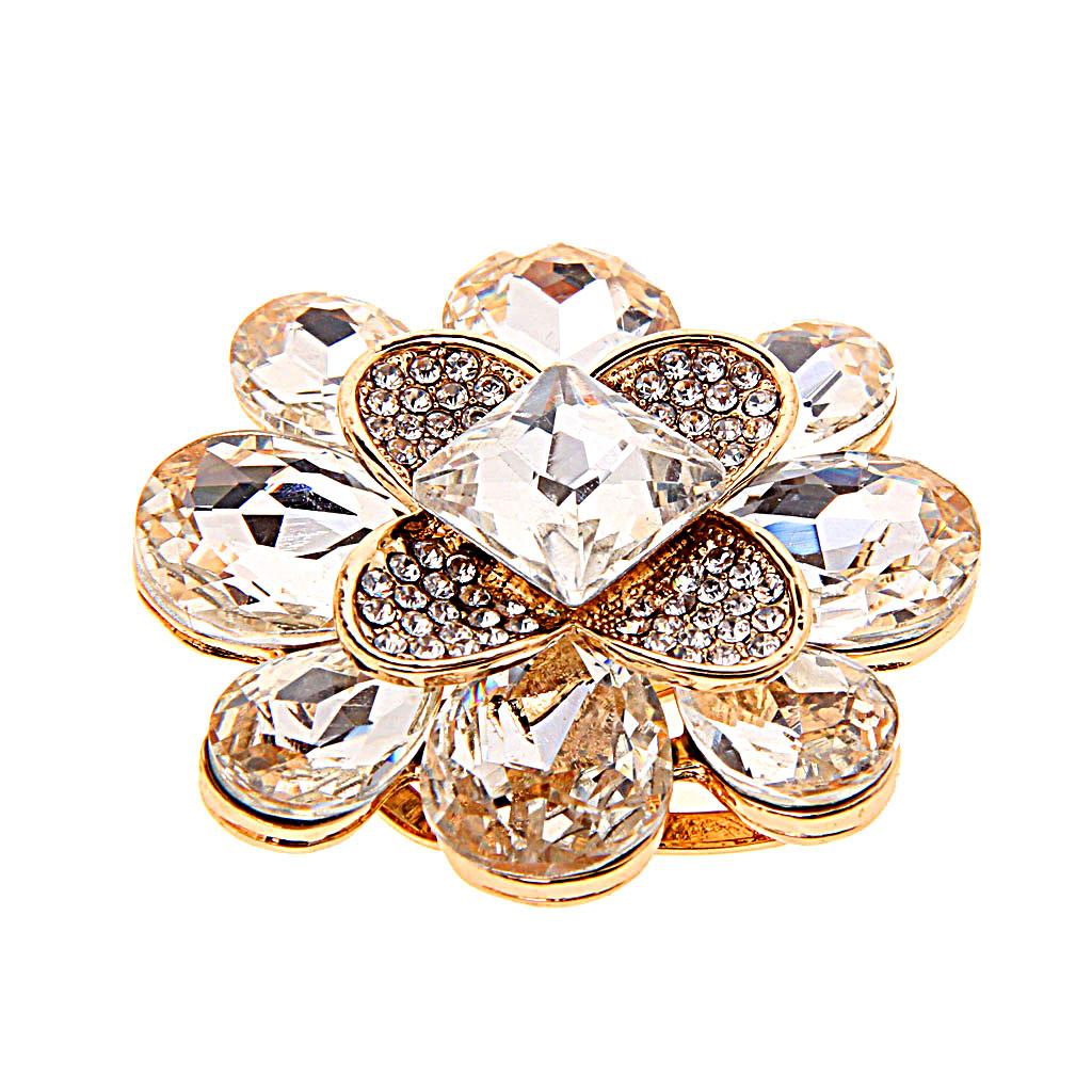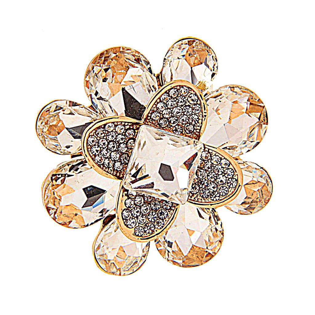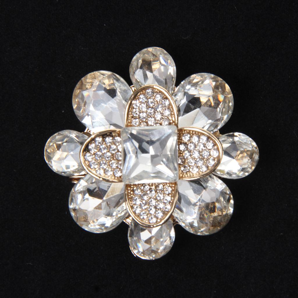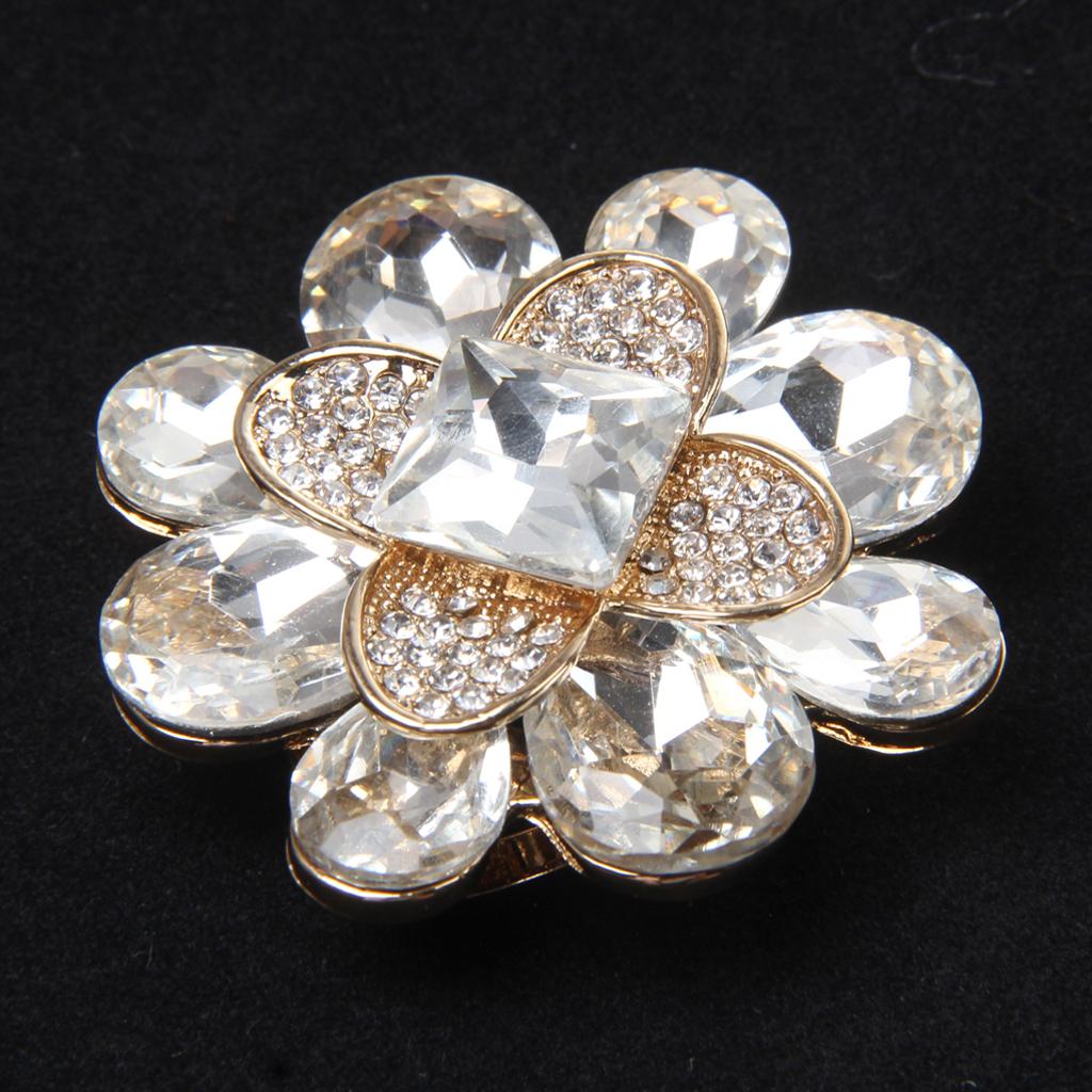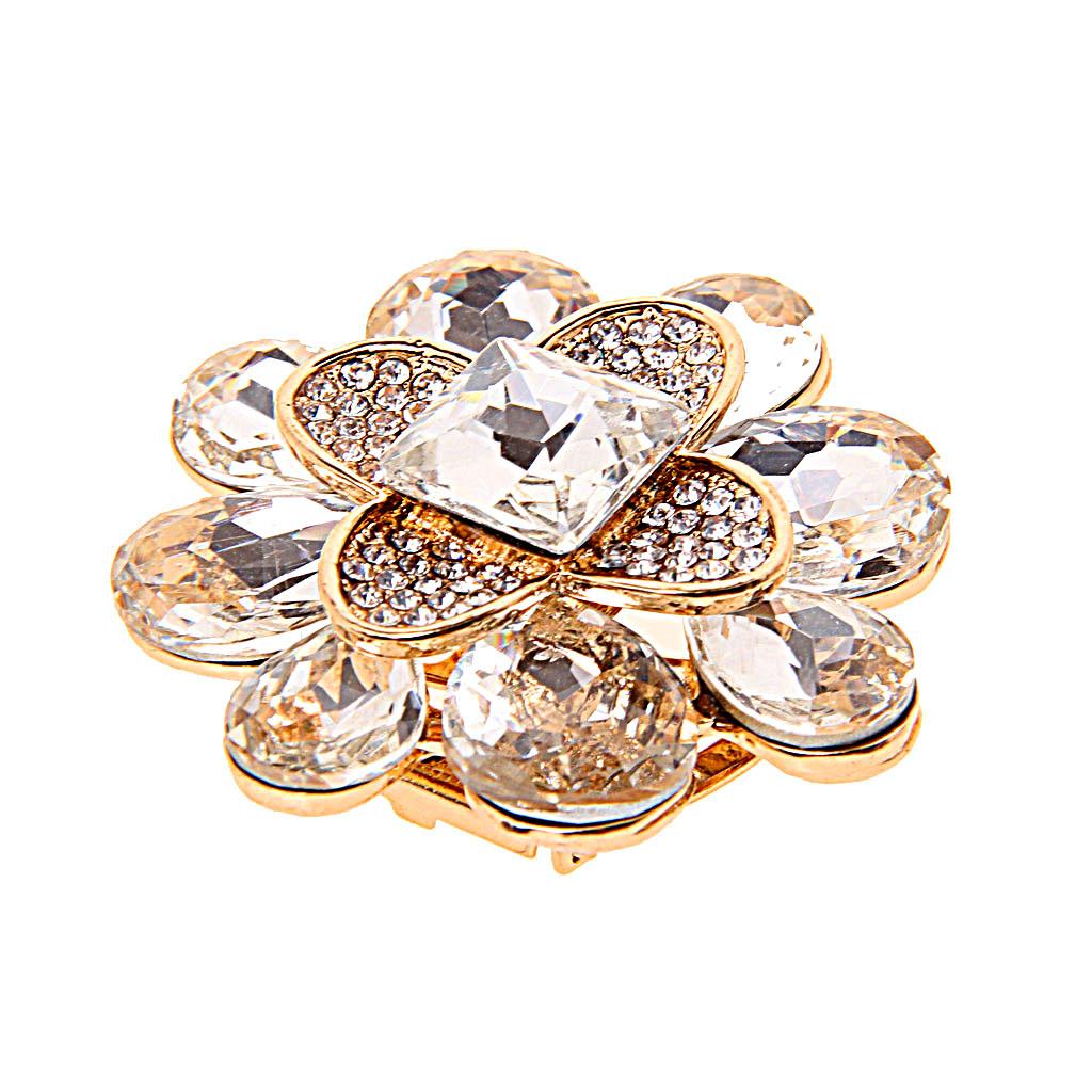 Women Party Fashion Gold Alloy Crystal Petals Clothing Accessory Flower Brooch