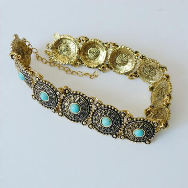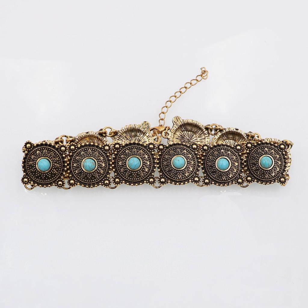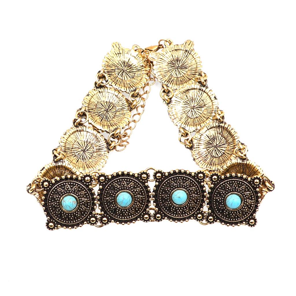 Women Xmas Jewelry Vintage Gold Bohemia Style Ethnic Round Chain Necklace