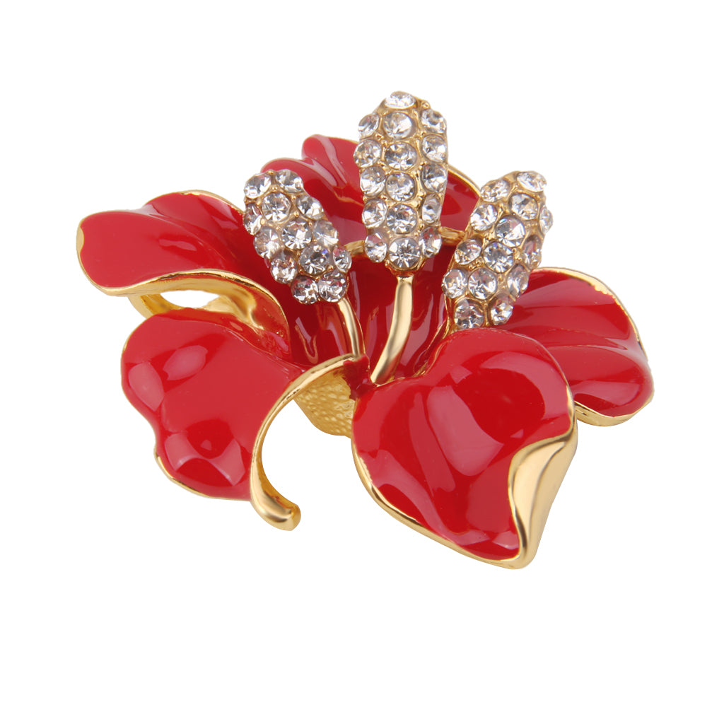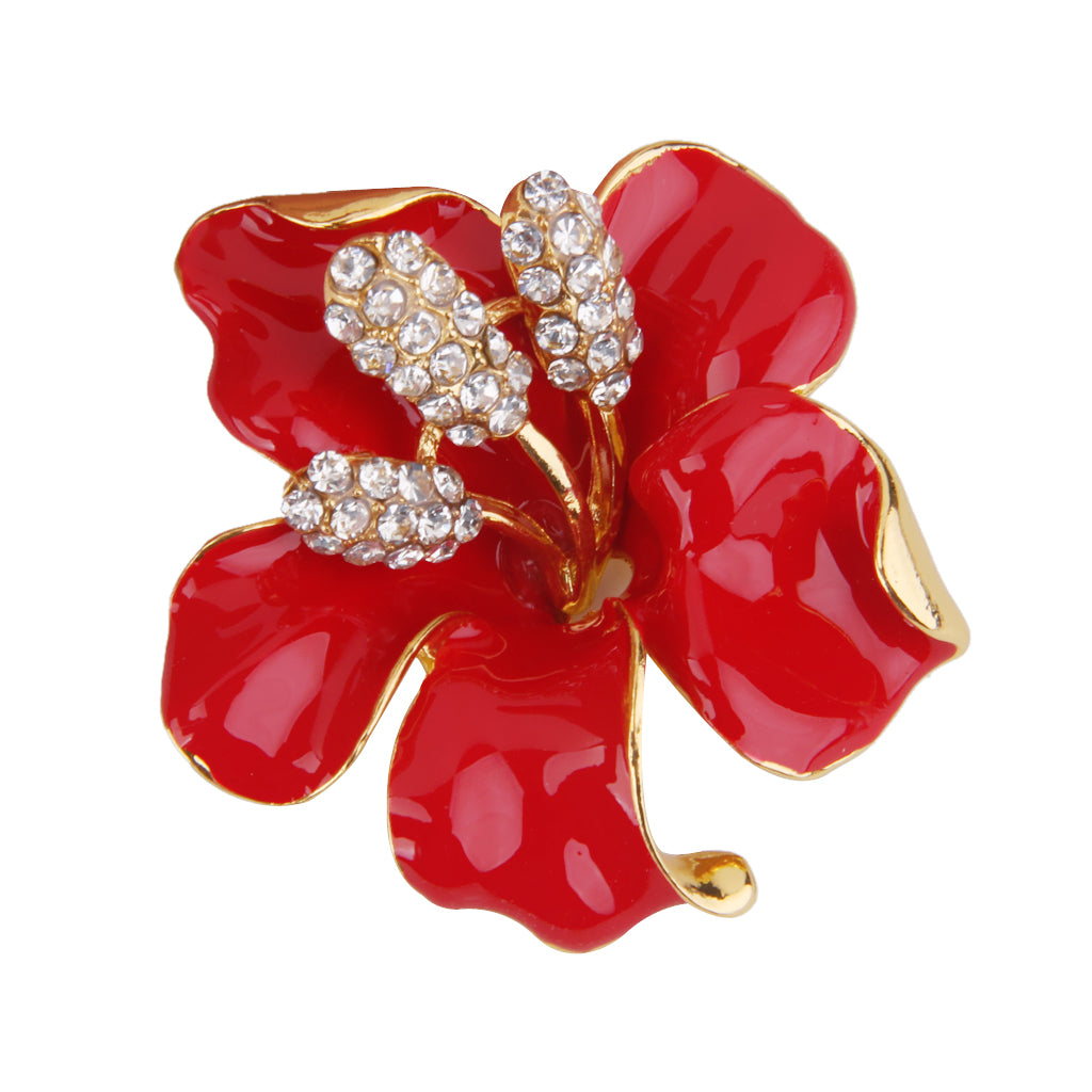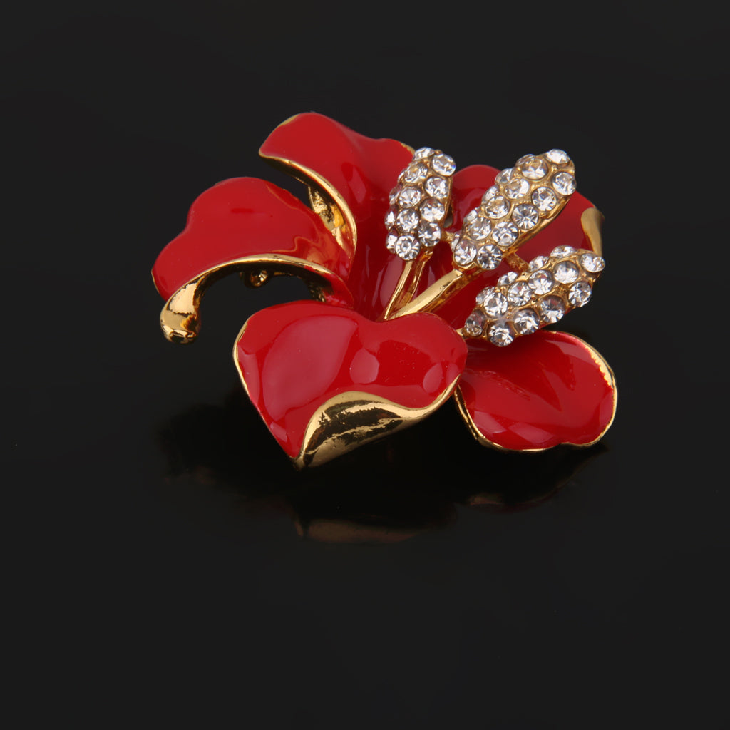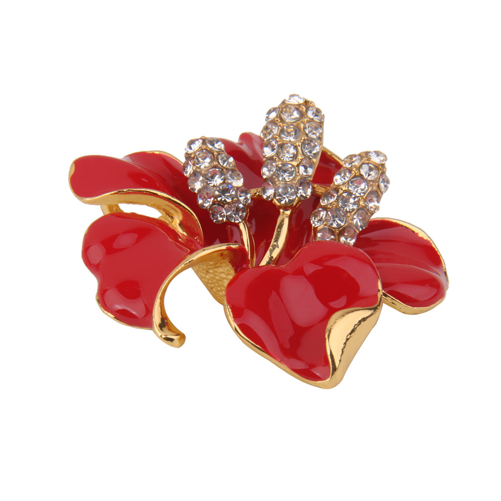 Women's Rhinestone Alloy Red Flower Brooch Pin Scarf Clip Jewelry