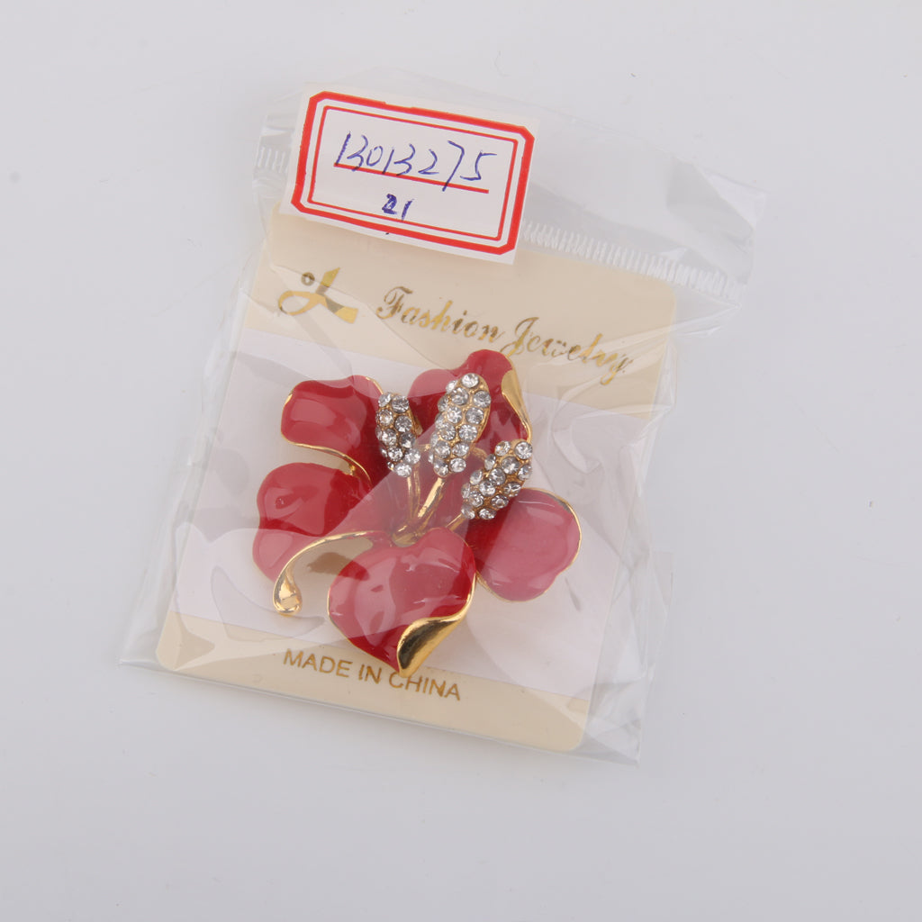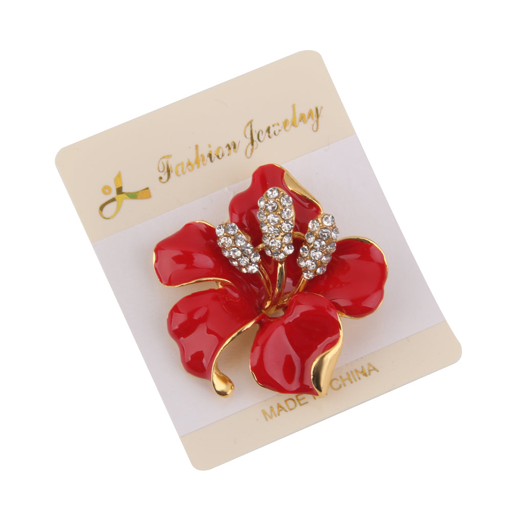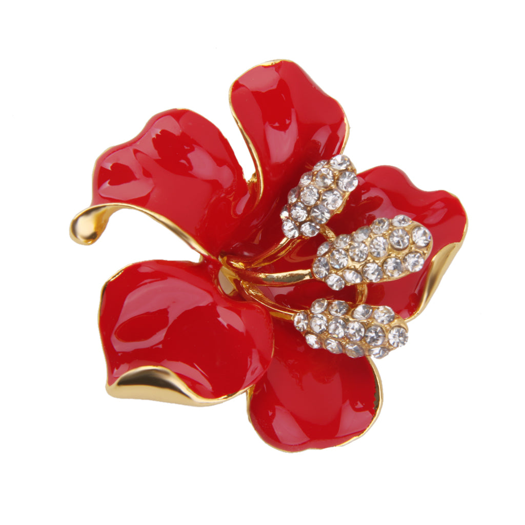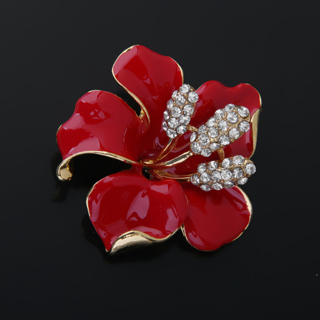 Women's Rhinestone Alloy Red Flower Brooch Pin Scarf Clip Jewelry