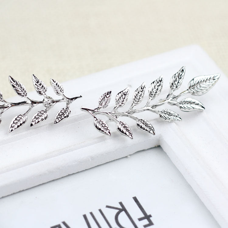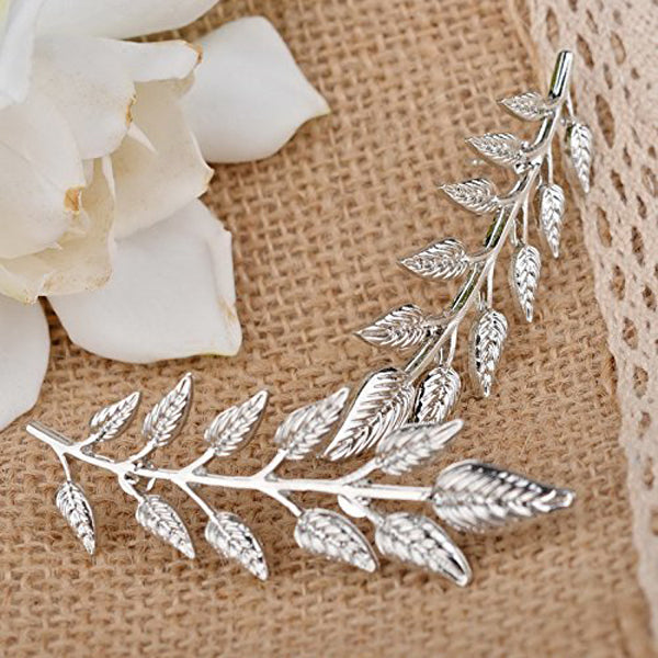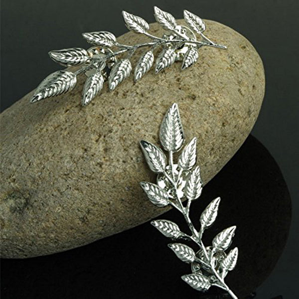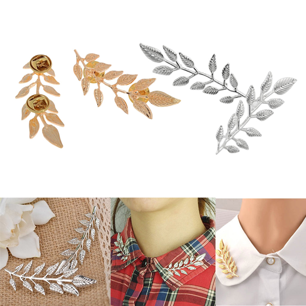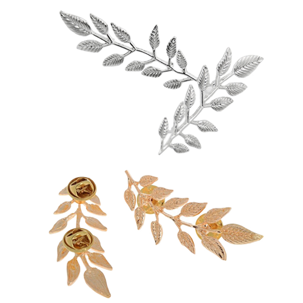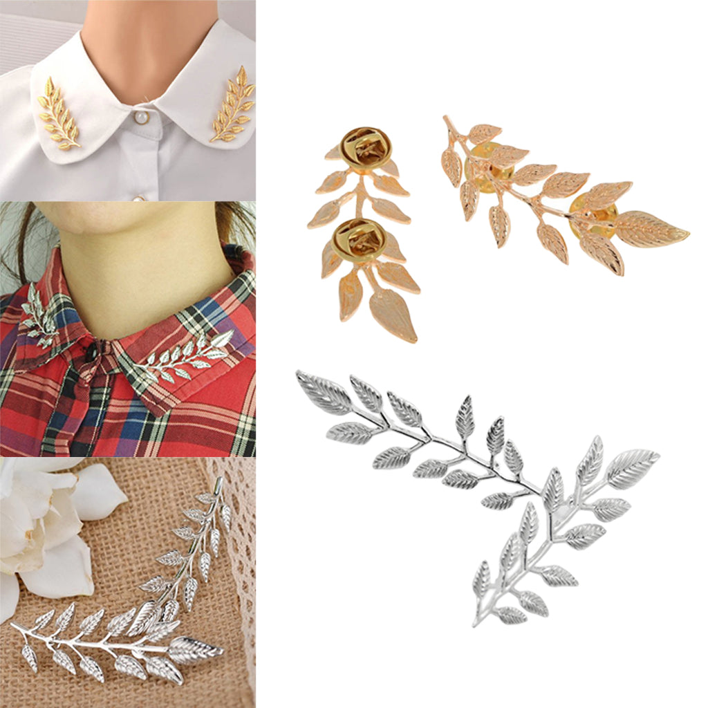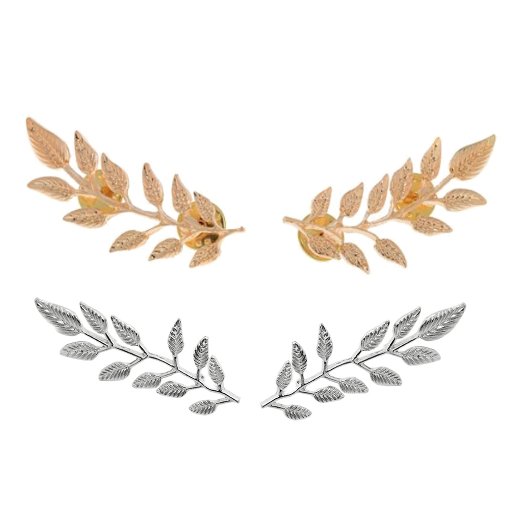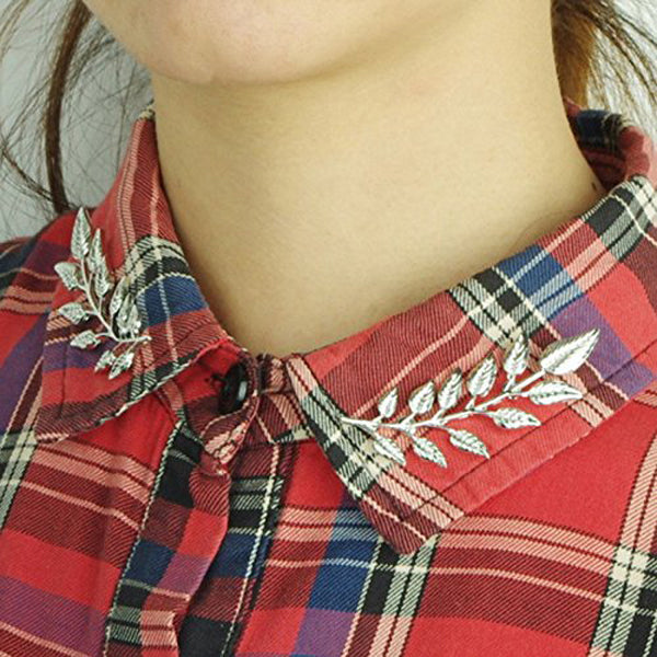 Women's Vintage Punk Style Leaf Collar Lapel Pin Brooch Silver 1 Pair
