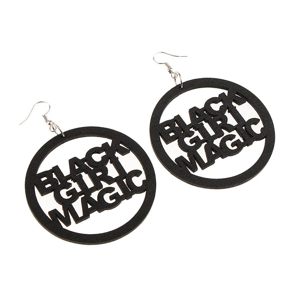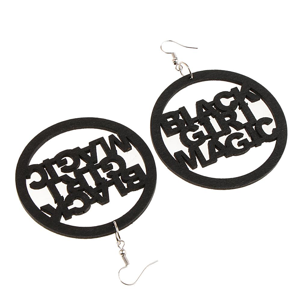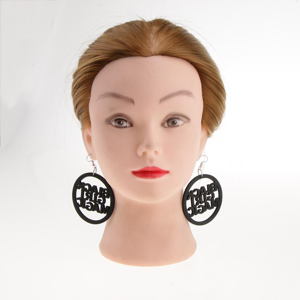 Wood Girl Drop Dangle Earrings Lightweight Natural Ethnic Jewelry Black
