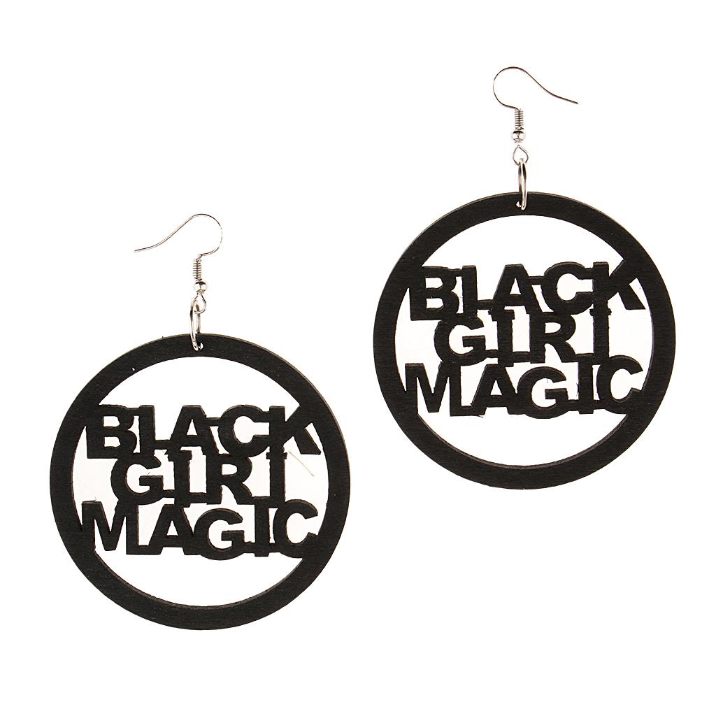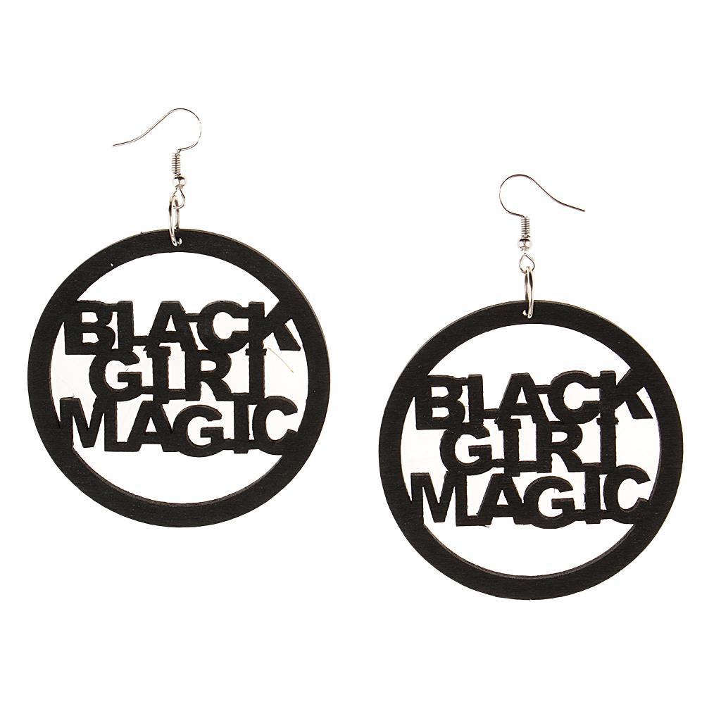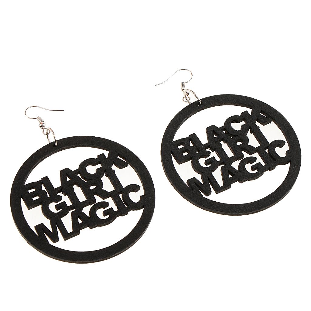 Wood Girl Drop Dangle Earrings Lightweight Natural Ethnic Jewelry Black