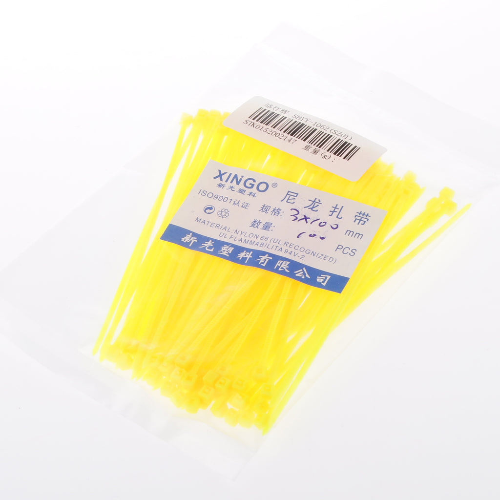 100pcs 1.9x100mm Nylon Wrap Cable Loop Ties Fasten Wire Self-Locking -Yellow