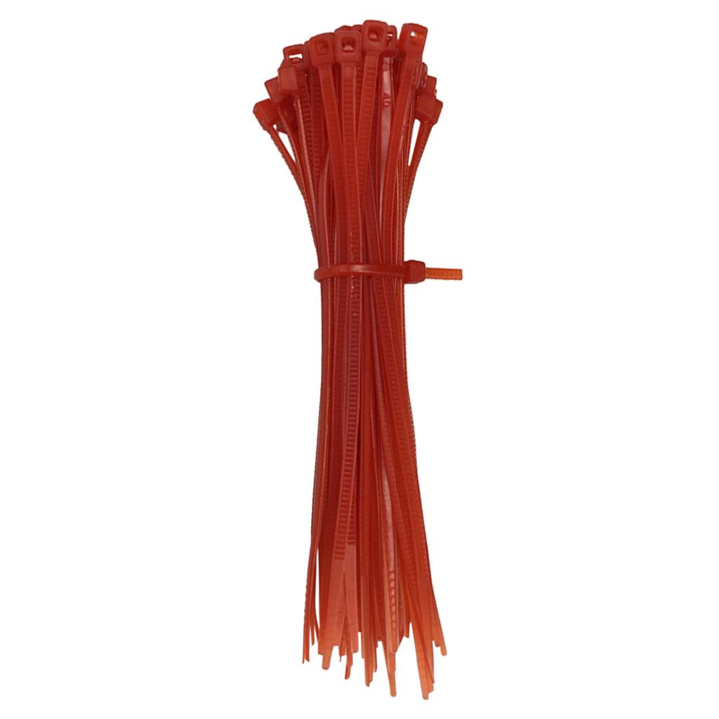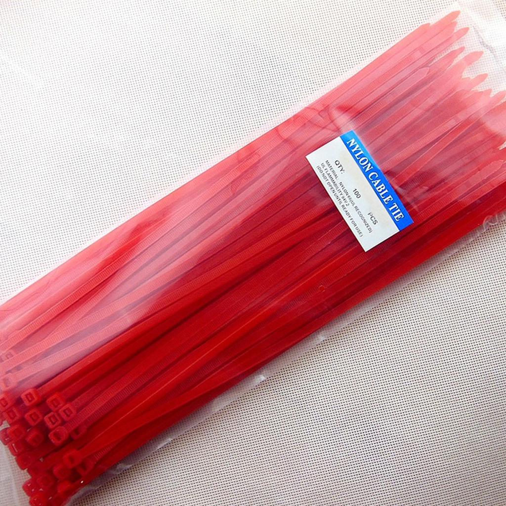 100pcs Self-locking Nylon Cable Tie Plastic Cord Zip Wire Kit 4x200mm Red