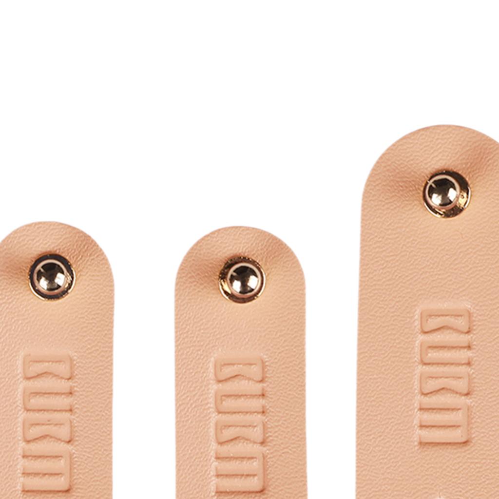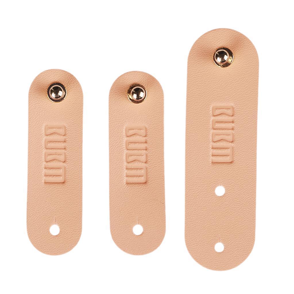 3Pieces PU Leather Data Cable Headphone Cord Organizer Fastening Wraps Beige