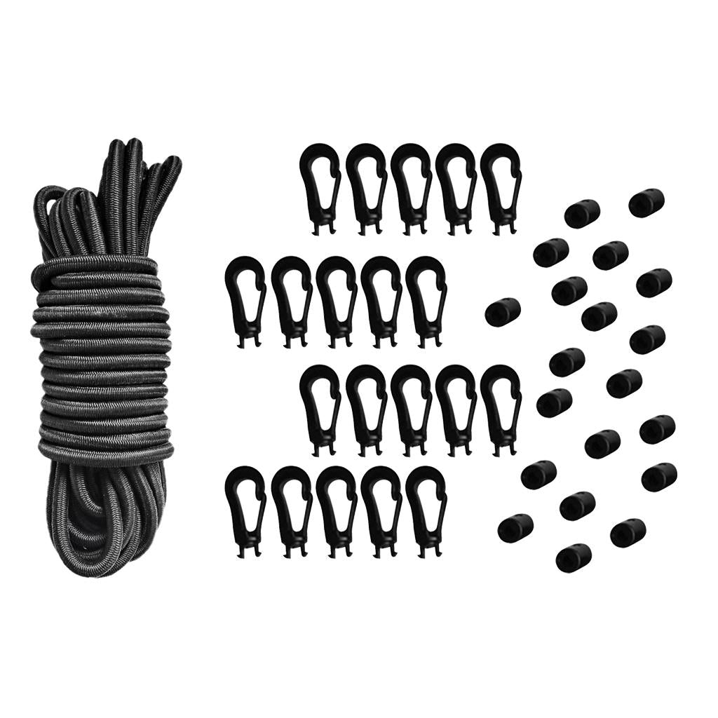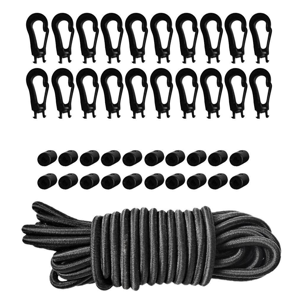 Bungee Elastic Rope + 20 Pieces Shock Bungee Cord Hooks
