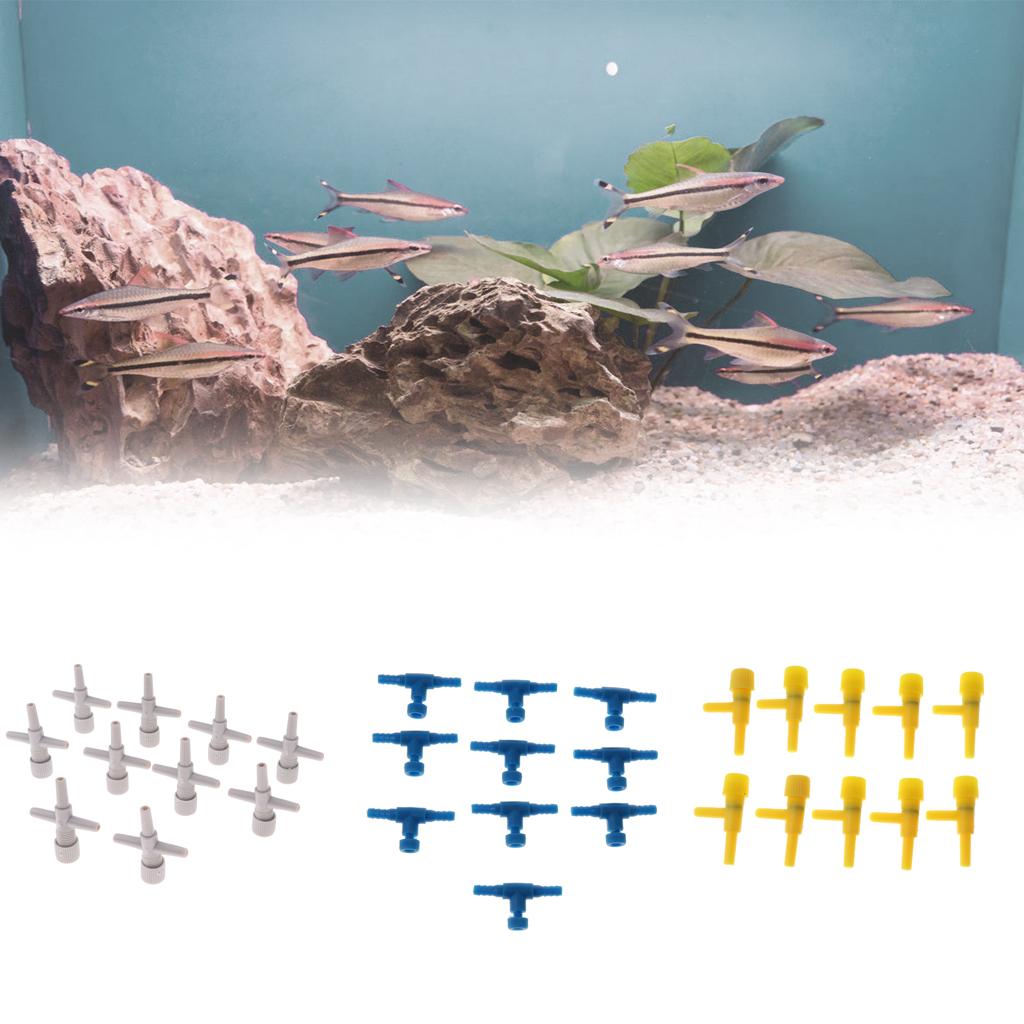 10 pcs Plastic Aquarium Fish Tank 2 Way Air Pump Control Valves Grey