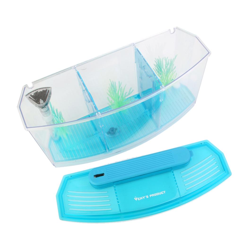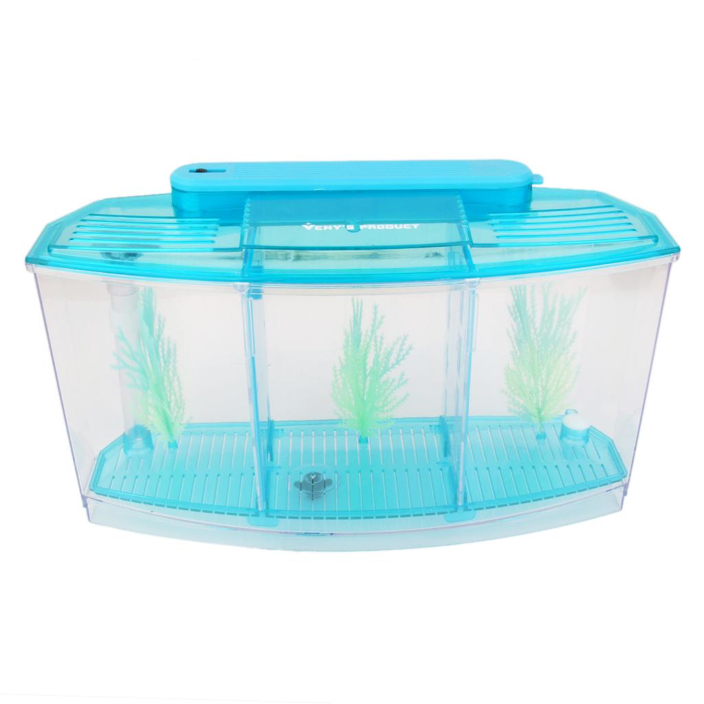 Acrylic LED Aquarium Fish Tank Isolation Box Hatchery Incubator Box Crystal Blue 28x10x15cm