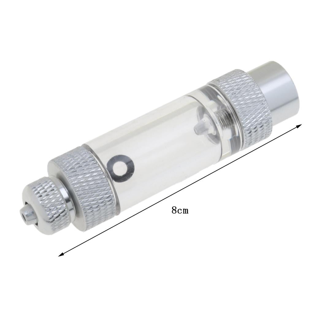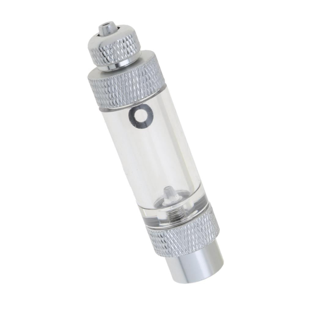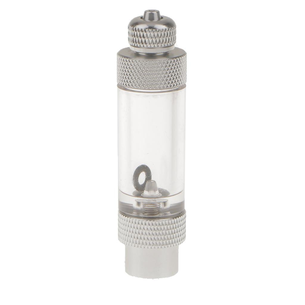 Aluminium Aquarium Inline CO2 Bubble Counter with build in check valve. When the regulator is open, you will be able to calculate your CO2 injection rate by counting how many bubbles pass through the counter per minute, with the piece of mind that your equipment is protected in the event of water siphoning back towards your equipment.